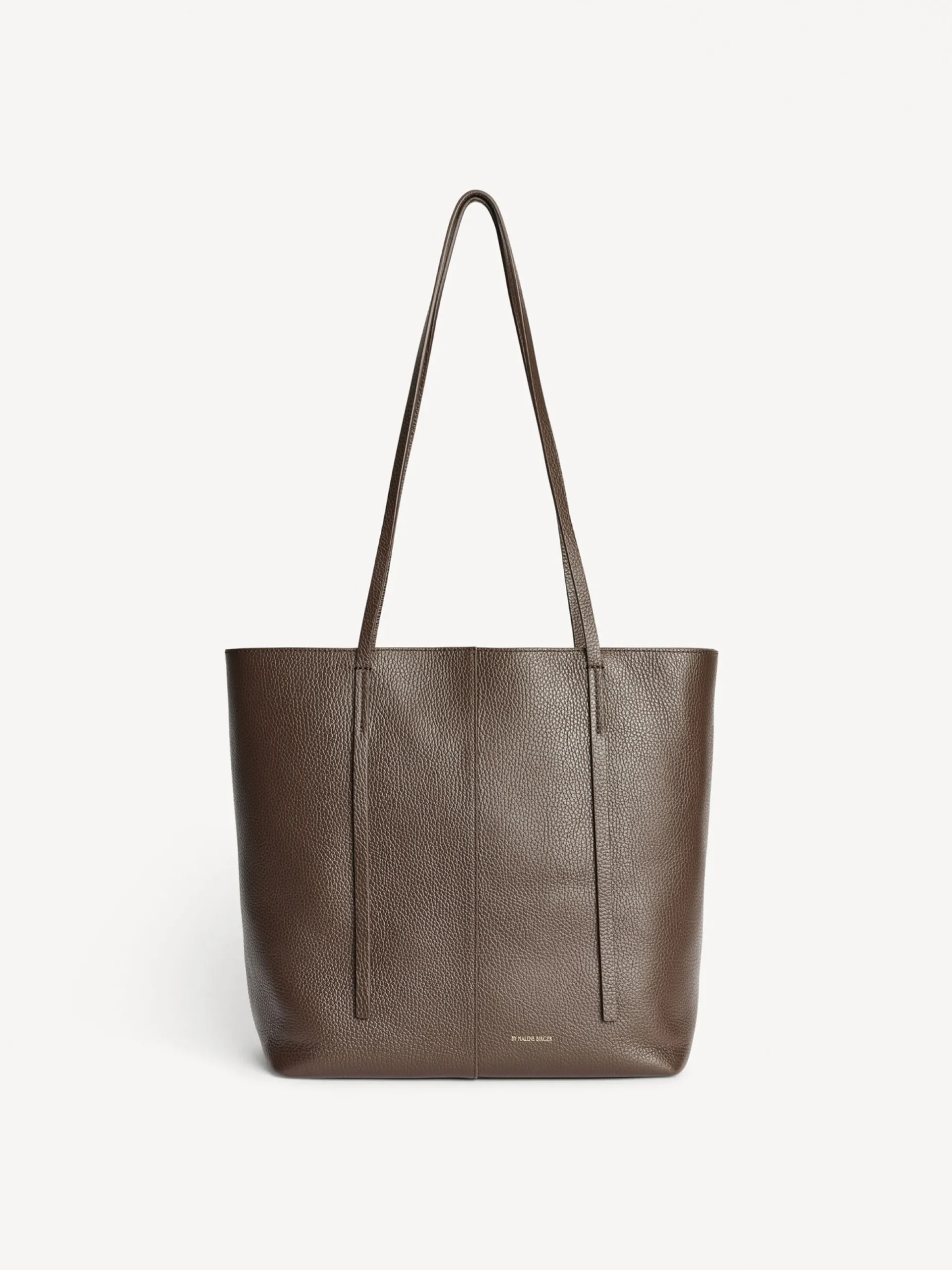 By Malene Birger Abilso bag cut from soft leather to a classic square tote silhouette. The slim tonal top handles and golden lettering accentuate a timeless character. Style it with office and weekend looks.