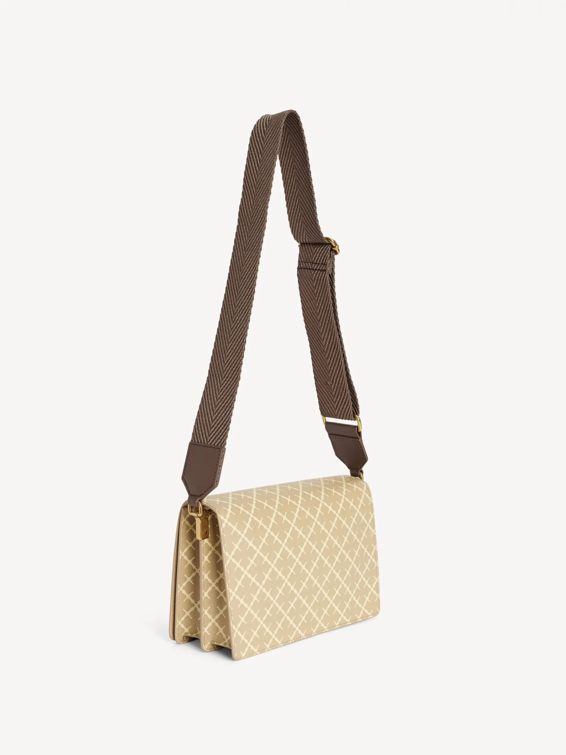 Crafted from durable fabric printed with our Signature Flower motif, this versatile bag is stamped with the house insignia and trimmed with leather. It has an adjustable, detachable strap in cotton webbing to ensure the perfect fit.