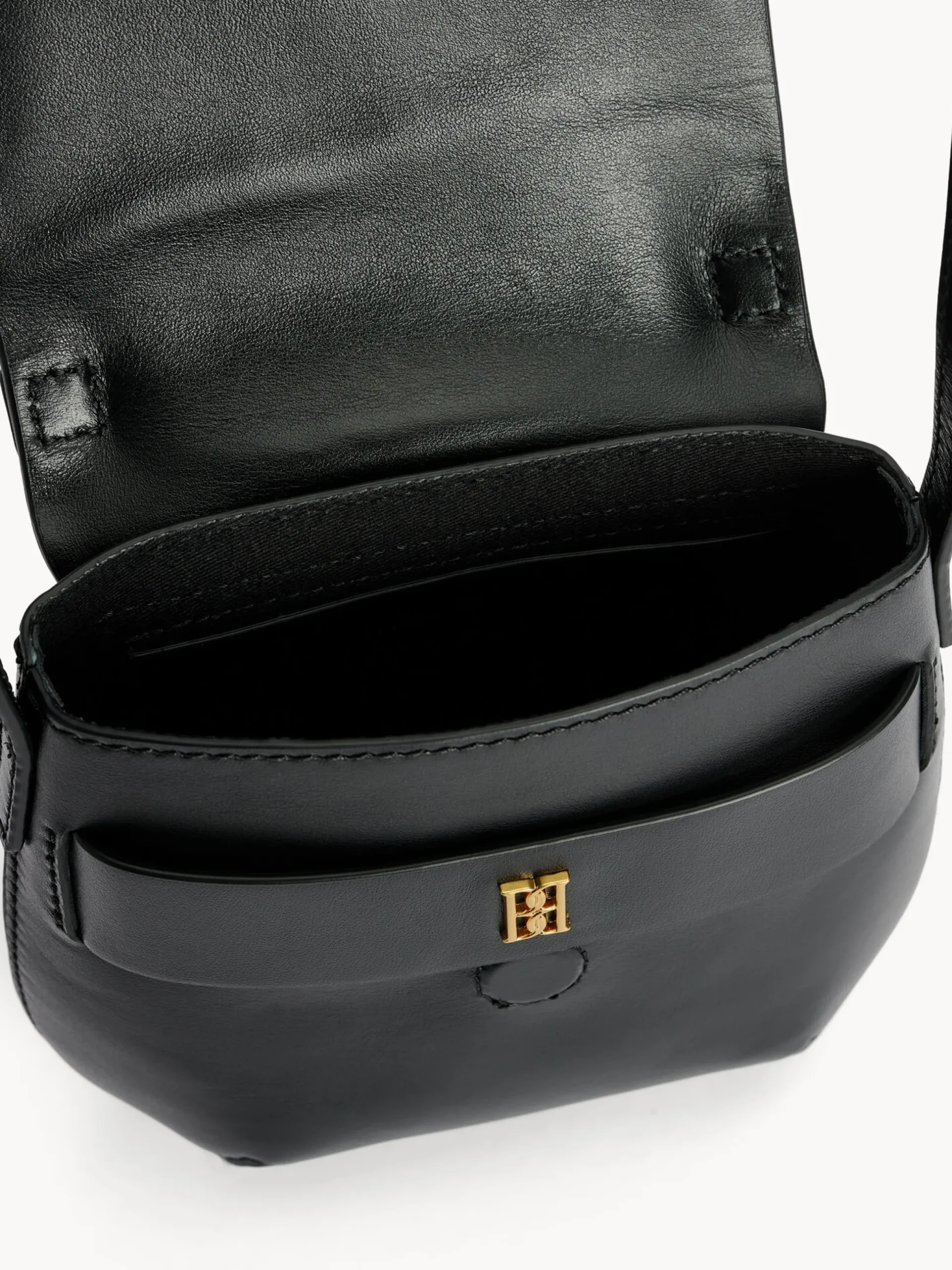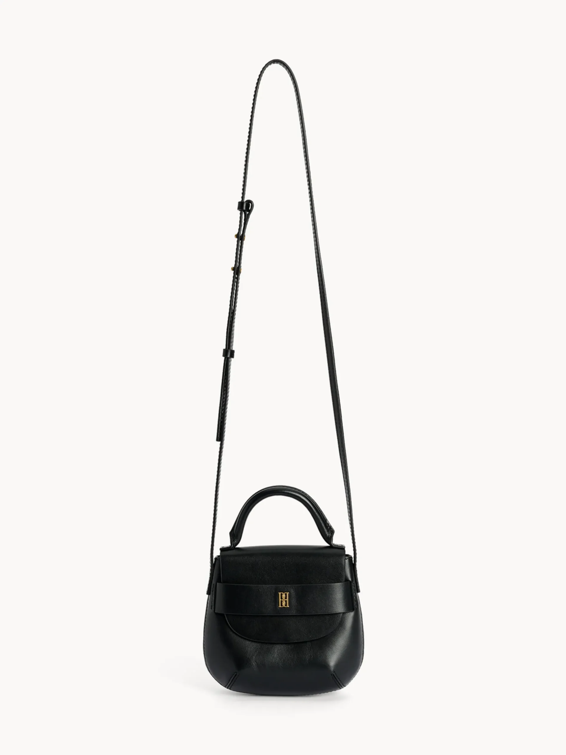 Crafted in smooth leather with a curved silhouette, the sculptural Meela bag features a top handle, a long adjustable strap, magnetic close and a small house monogram. Carry it ladylike by its top handle, wear it cross-body, or tied around the waist for a chic take on a belt-bag.