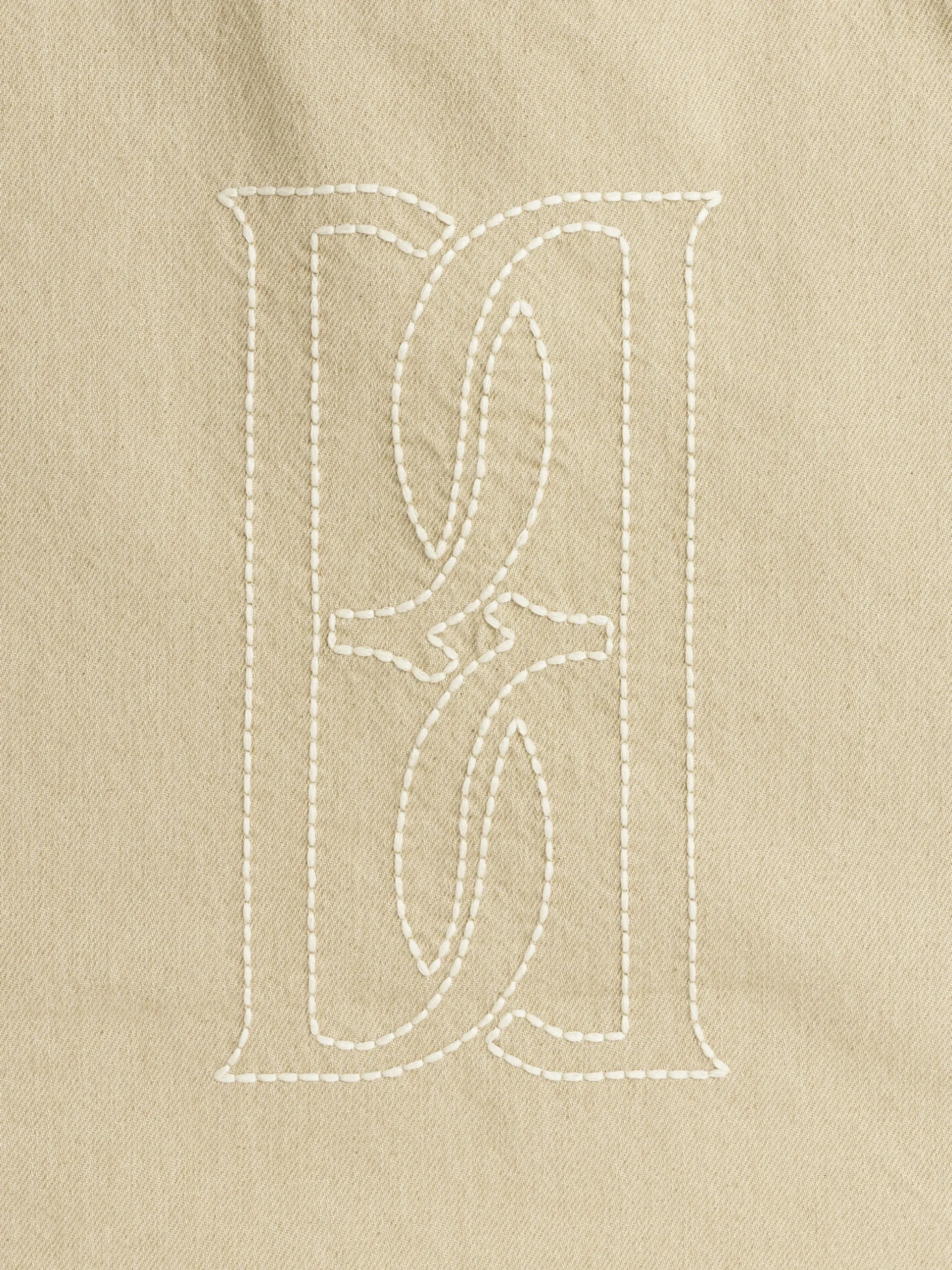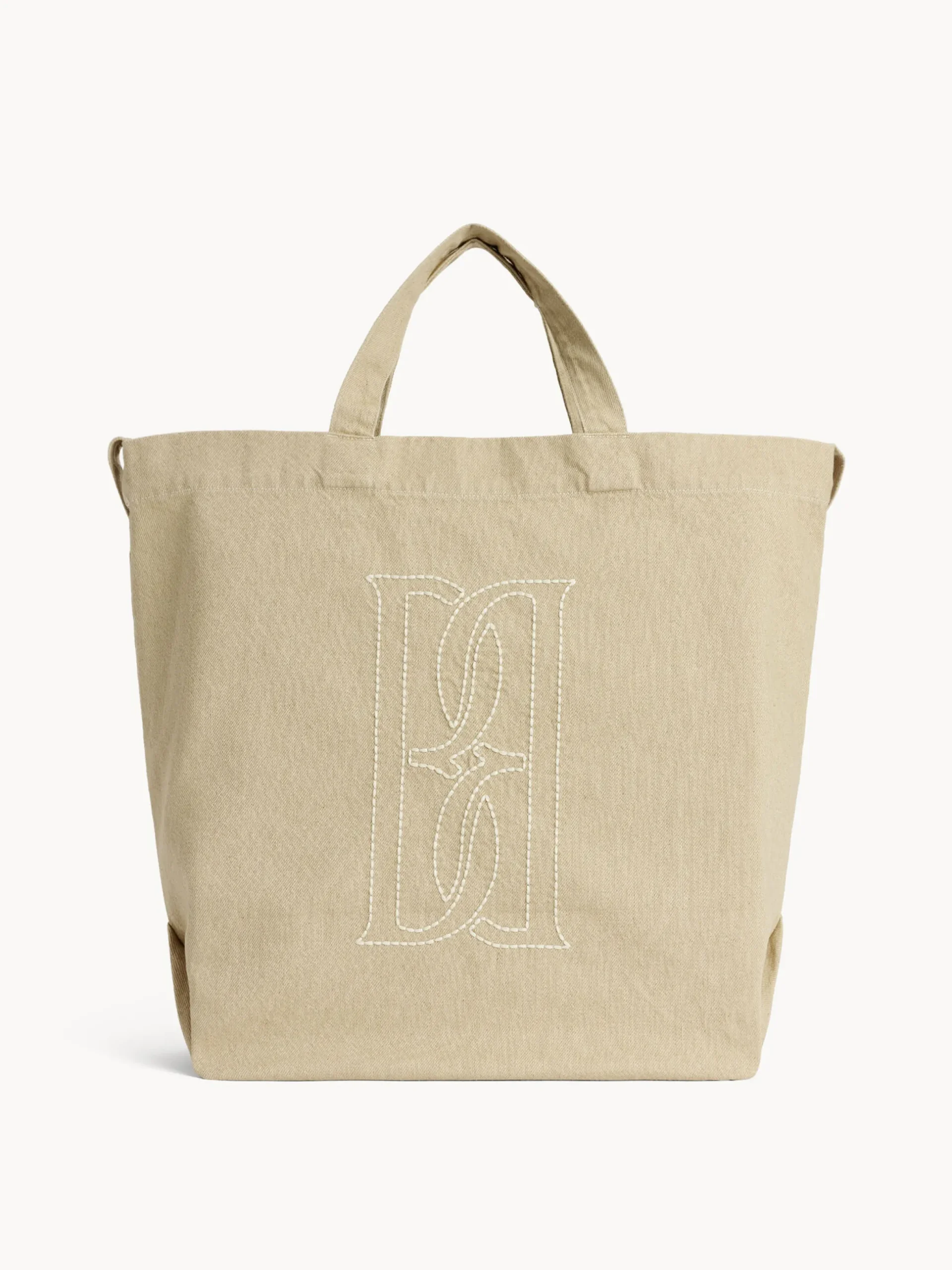 A classic cotton canvas tote, such as the Shayan design, will truly last seasons – and years – to come. Crafted in a durable organic cotton, the tote has a spacious interior, a simple top handle, and a large, embroidered monogram on its front.