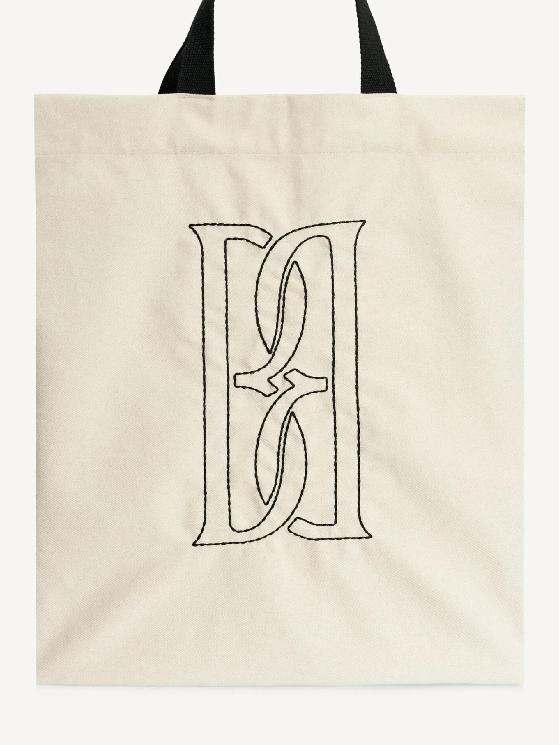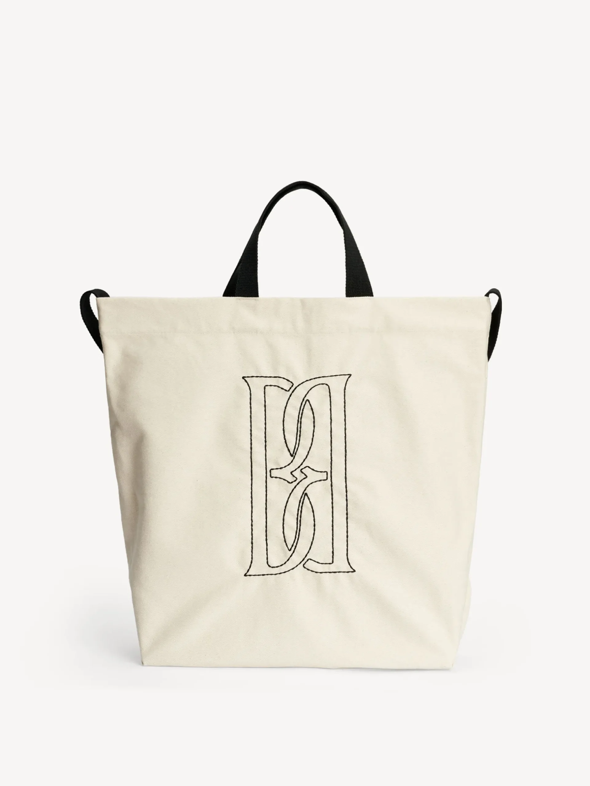 Generous in size and carefully crafted in organic cotton, the Shayan tote makes a statement with its large monogram. The design has straps in two lengths that allow you to wear it however you like.