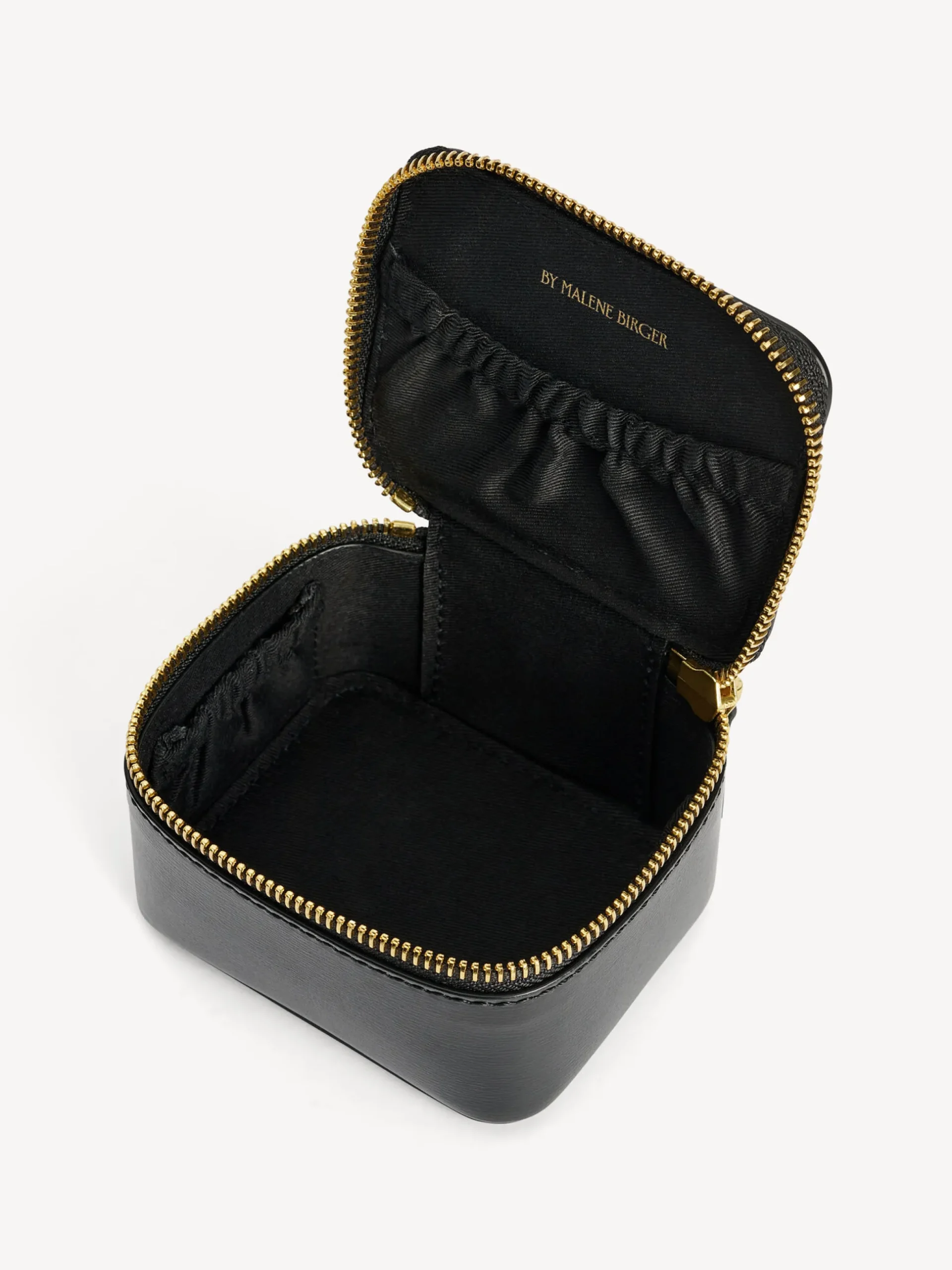 By Malene Birger Aya Bijoux jewellery bag constructed from soft and supple recycled leather. Completed with a golden zipper and an embossed emblem, this timeless design stores necklaces, bracelets, rings, brooches, and other accessories at home and during travel.