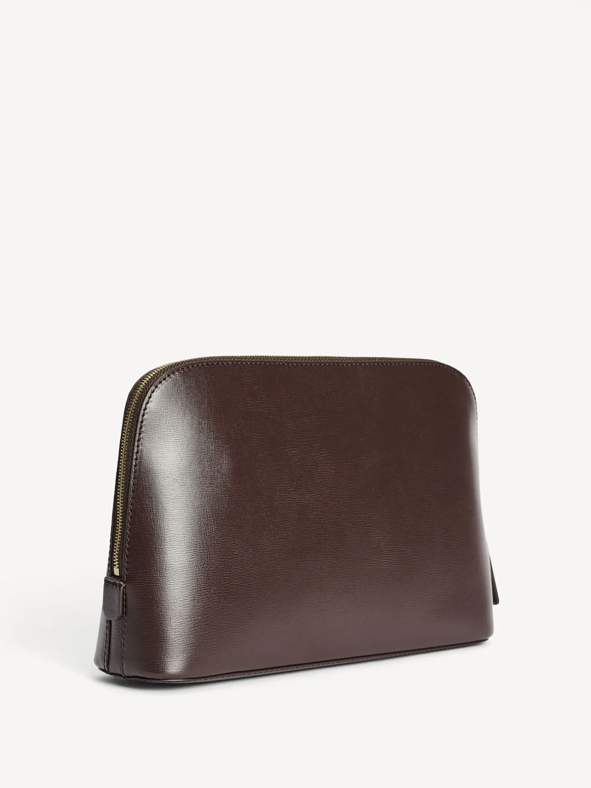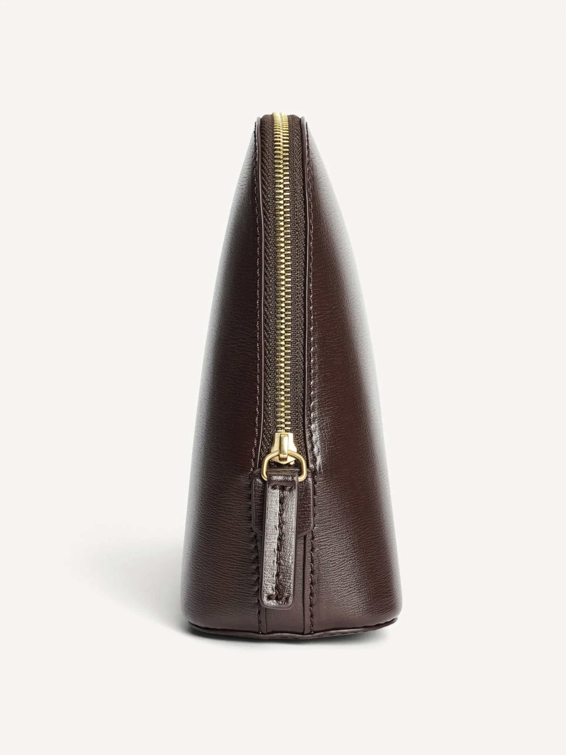 The Aya medium cosmetics bag ensures a luxurious travel experience. Made from soft and supple leather, the rounded design offers plenty of space for skincare, make-up, and everyday necessities. Add it to your suitcase or carry-on to have essentials within reach.