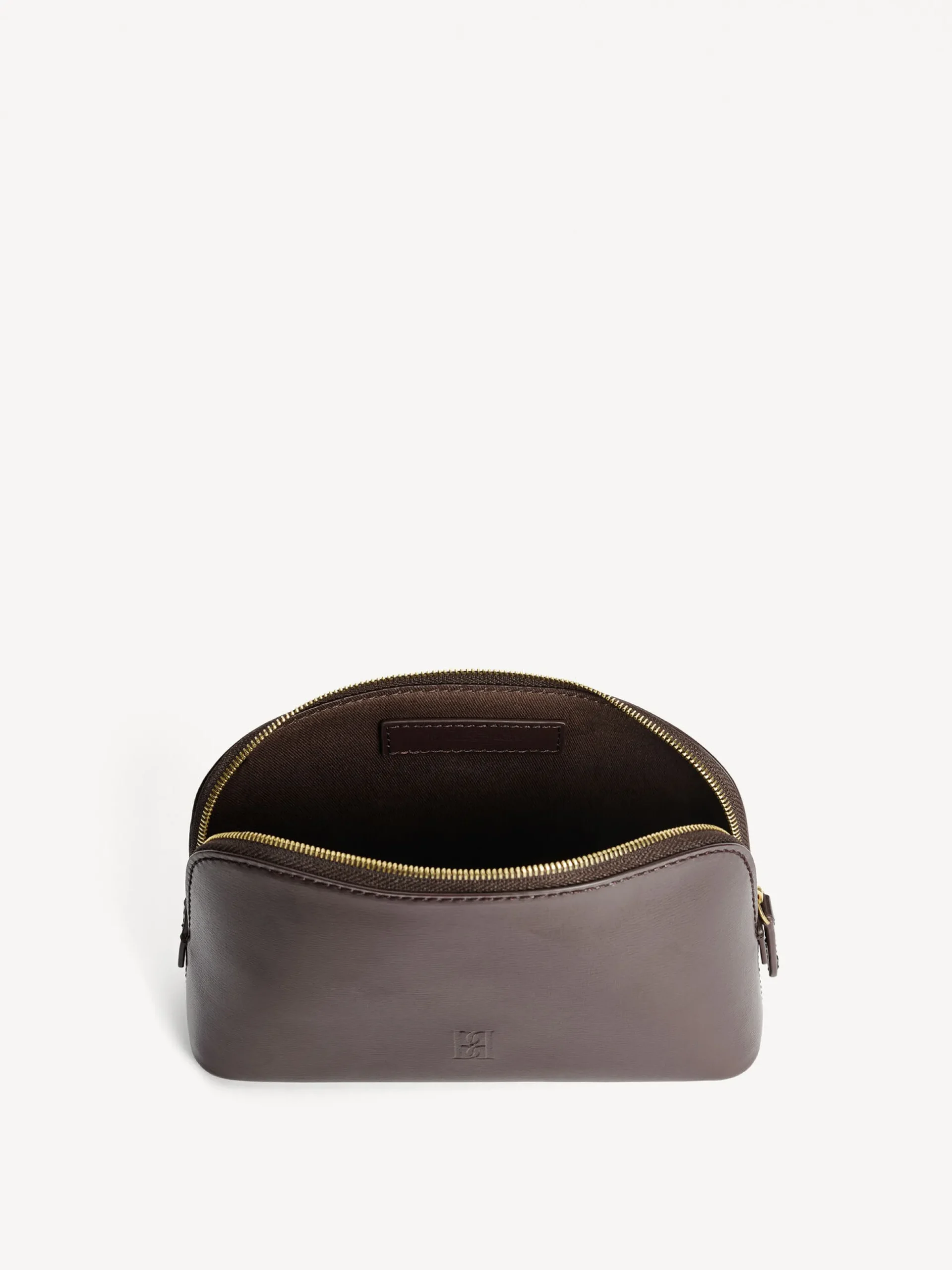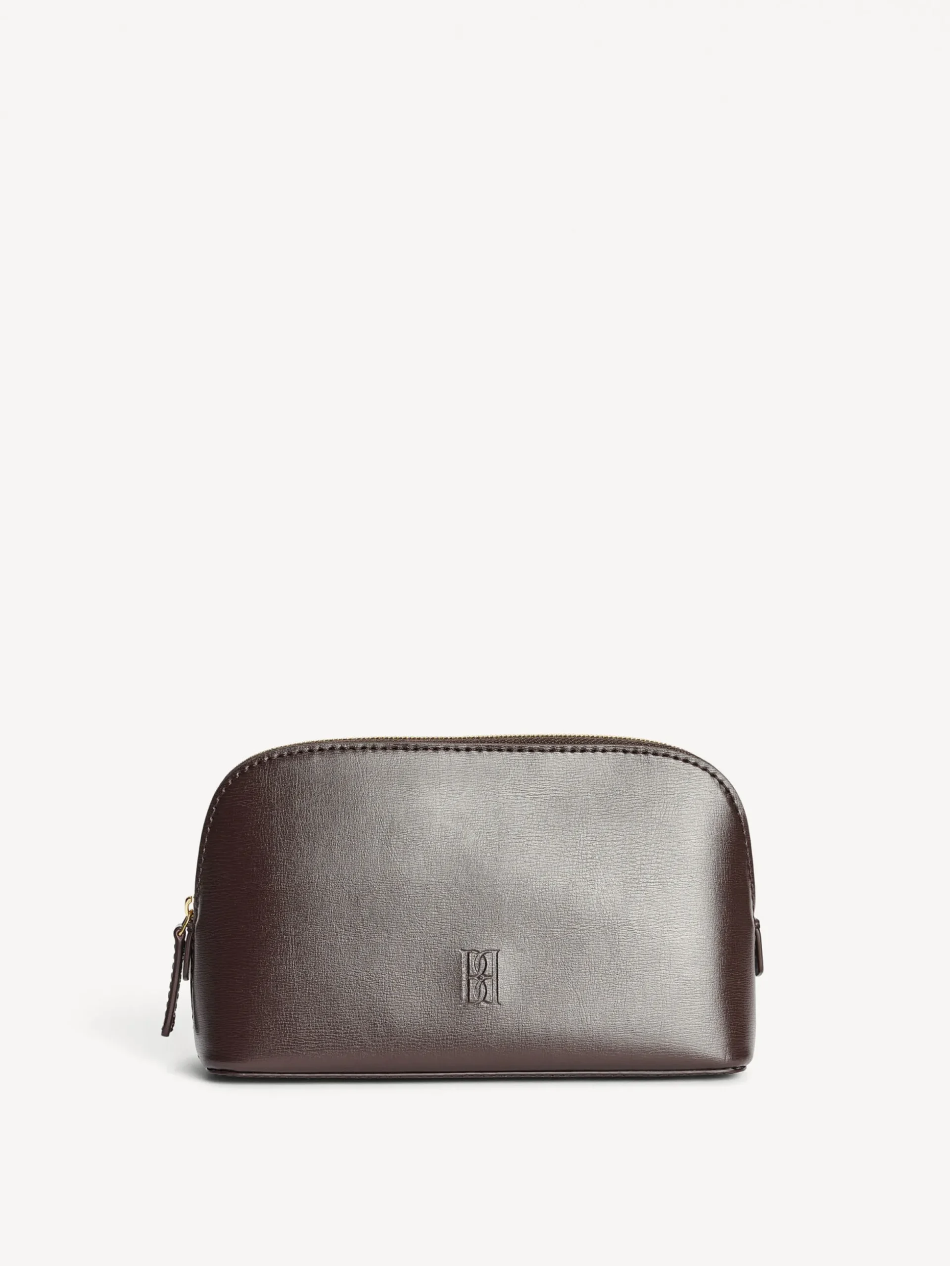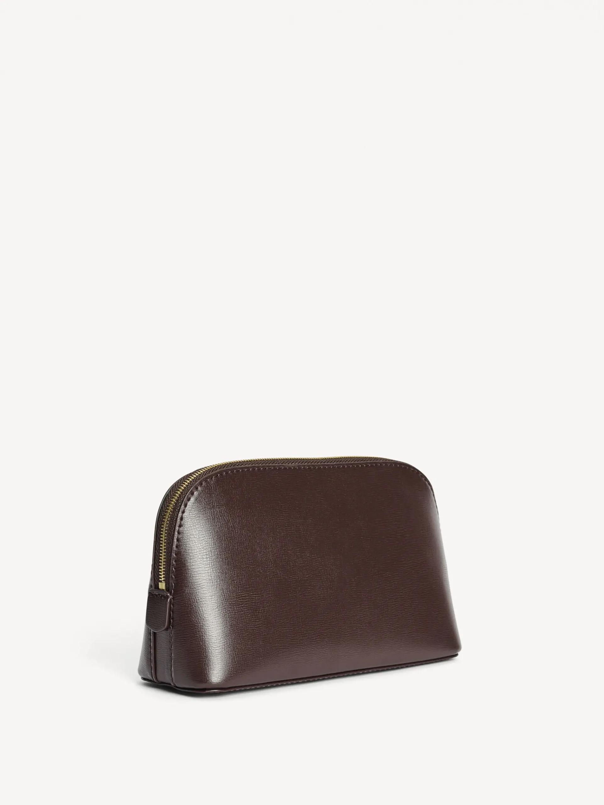 Aya small cosmetics case embossed with the signature By Malene Birger emblem. Made from smooth leather with a zip fastening, the timeless design stores skincare, makeup, and toiletries for daily touch-ups or during travel.