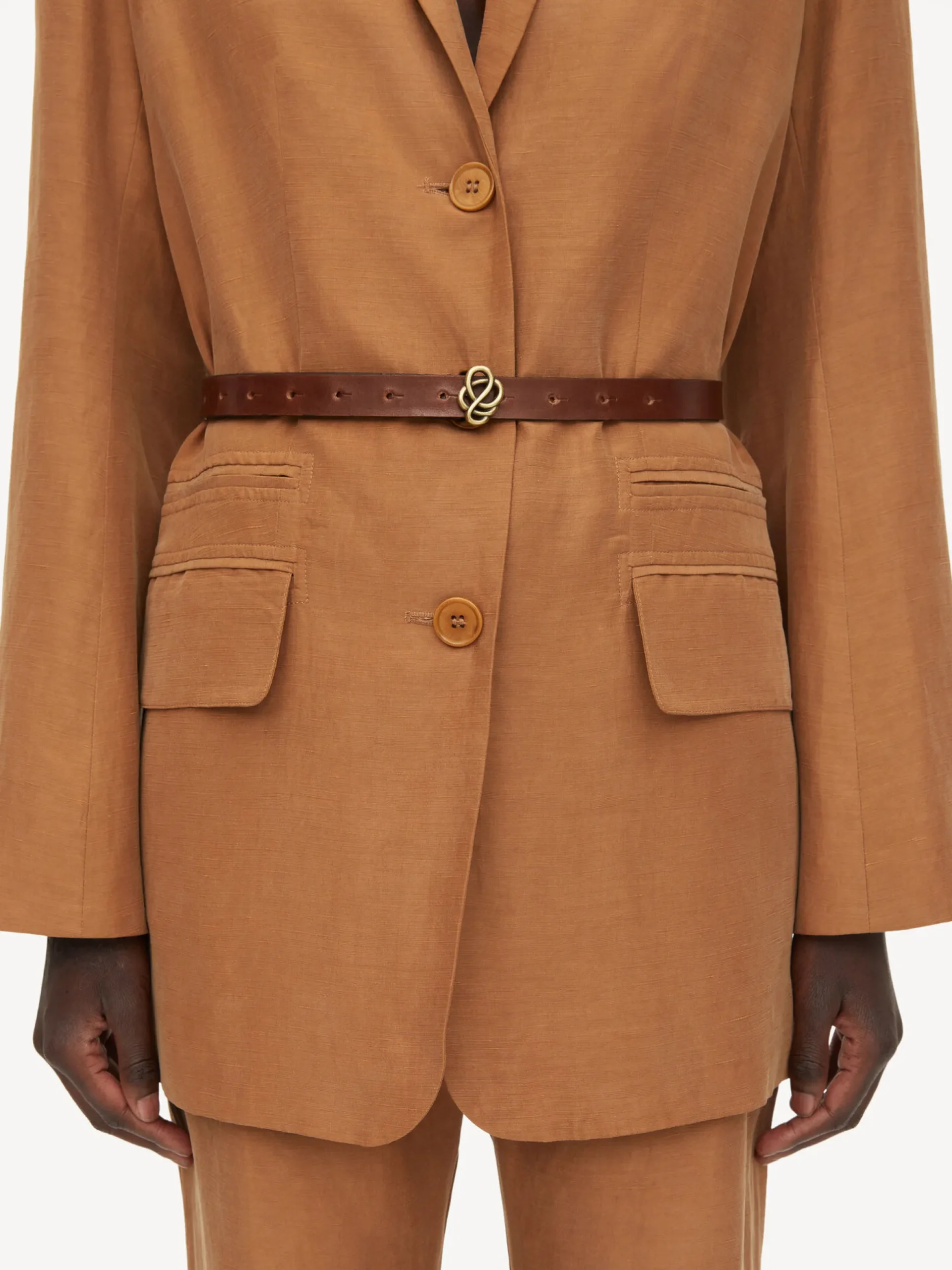 Tipped with a burnished gold-tone buckle, the Ouma belt is made from supple leather to sit comfortably around the waist….
