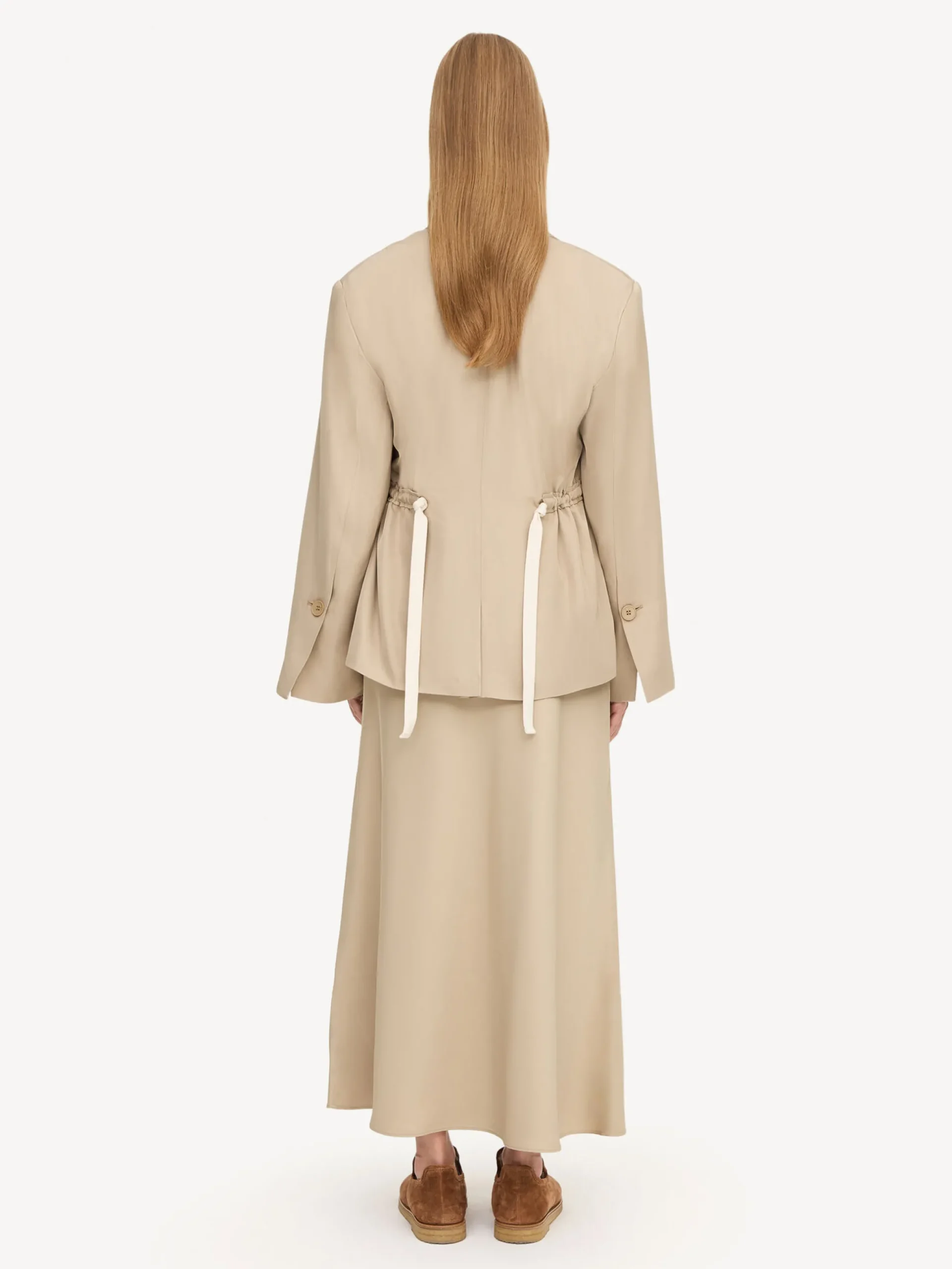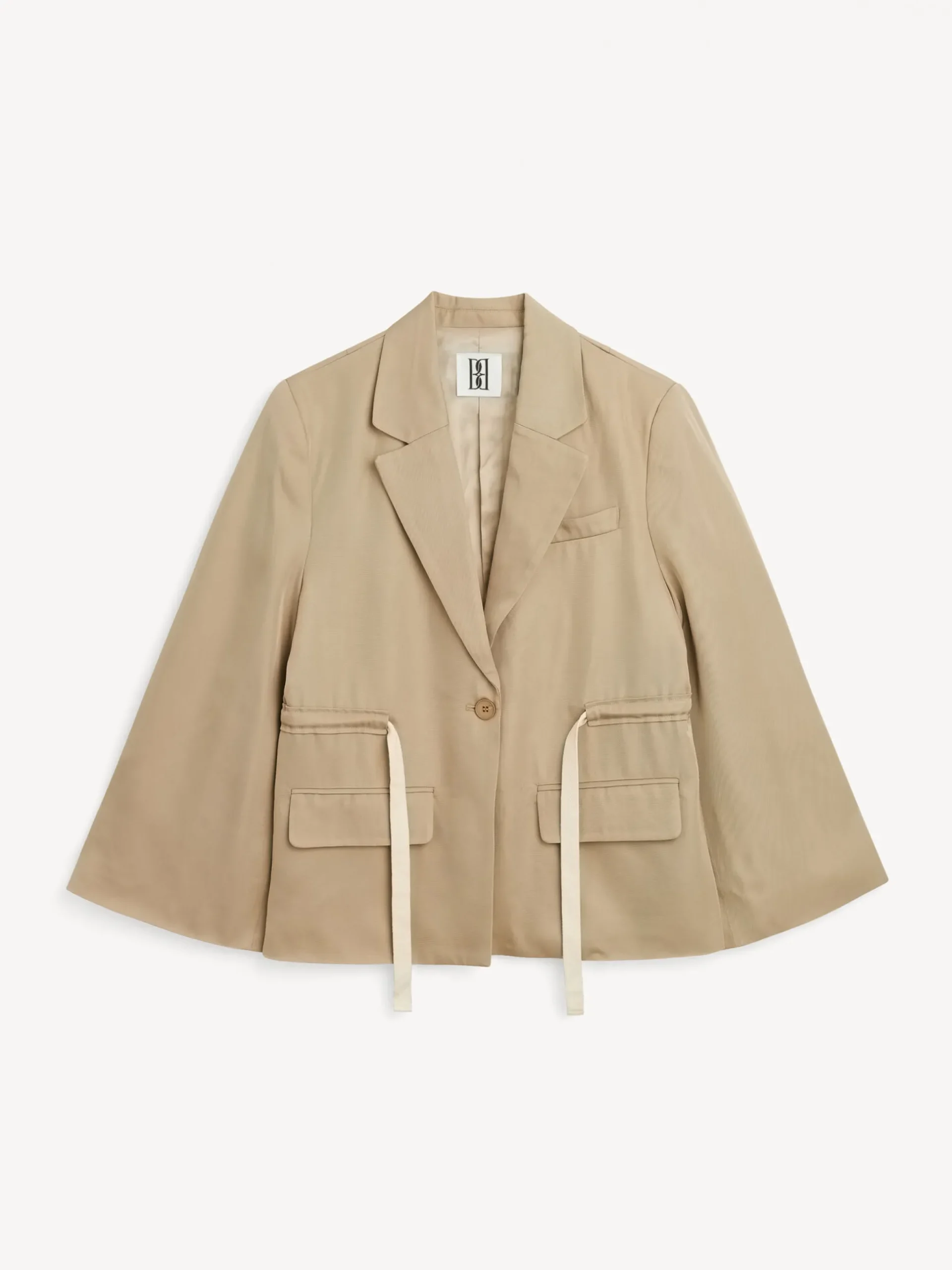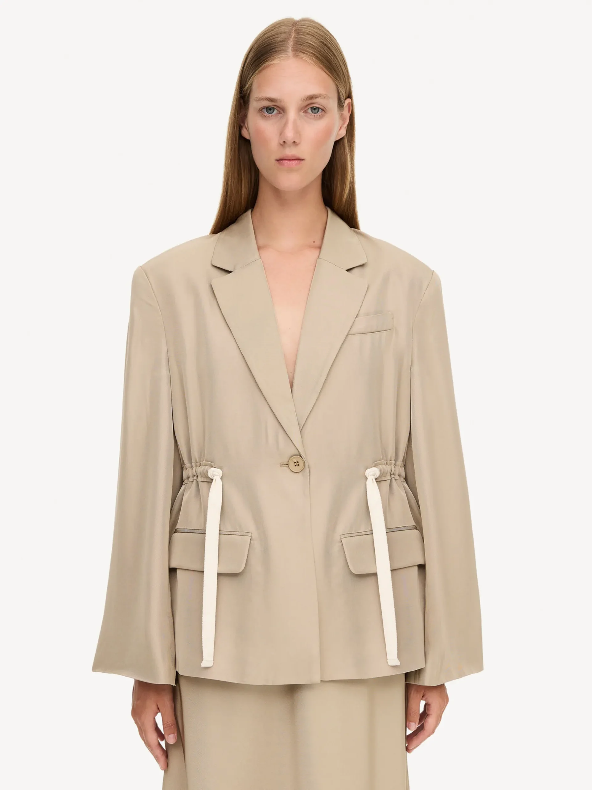 Oversized Biento blazer constructed to a single-breasted silhouette with notched lapels, flap pockets, and wide sleeves. A drawstring belt at the waist adds a sporty touch, allowing for more tailored looks. Coordinate with the Amores trousers for a modern take on suiting.