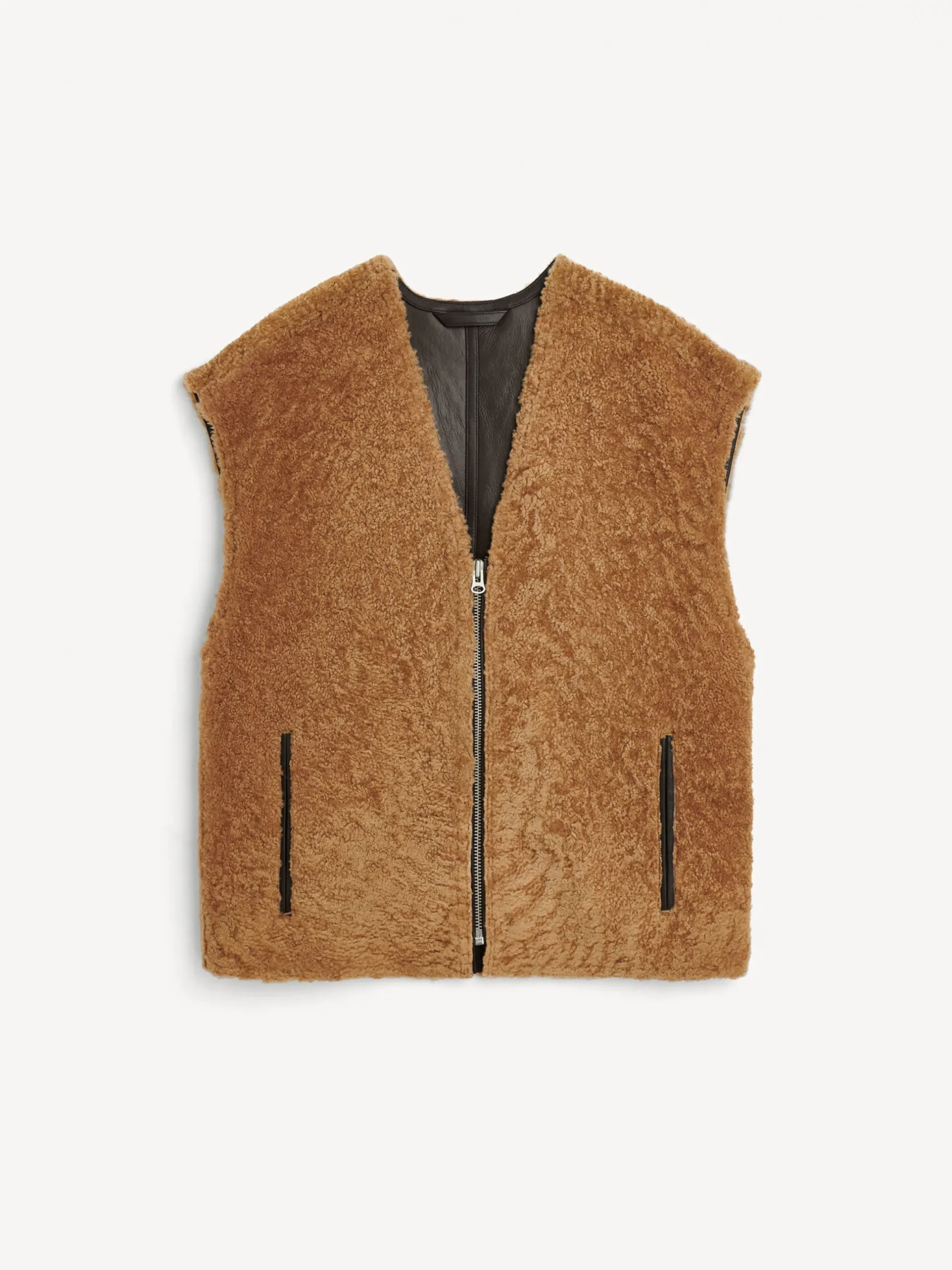 By Malene Birger Veronicas shearling vest made from responsibly sourced lamb leather. The fully reversible design with dark brown leather on one side and honey shearling on the other is accented by a zipper and a deep V-neck. Complete a modern look by adding a slim turtleneck and tailored trousers.