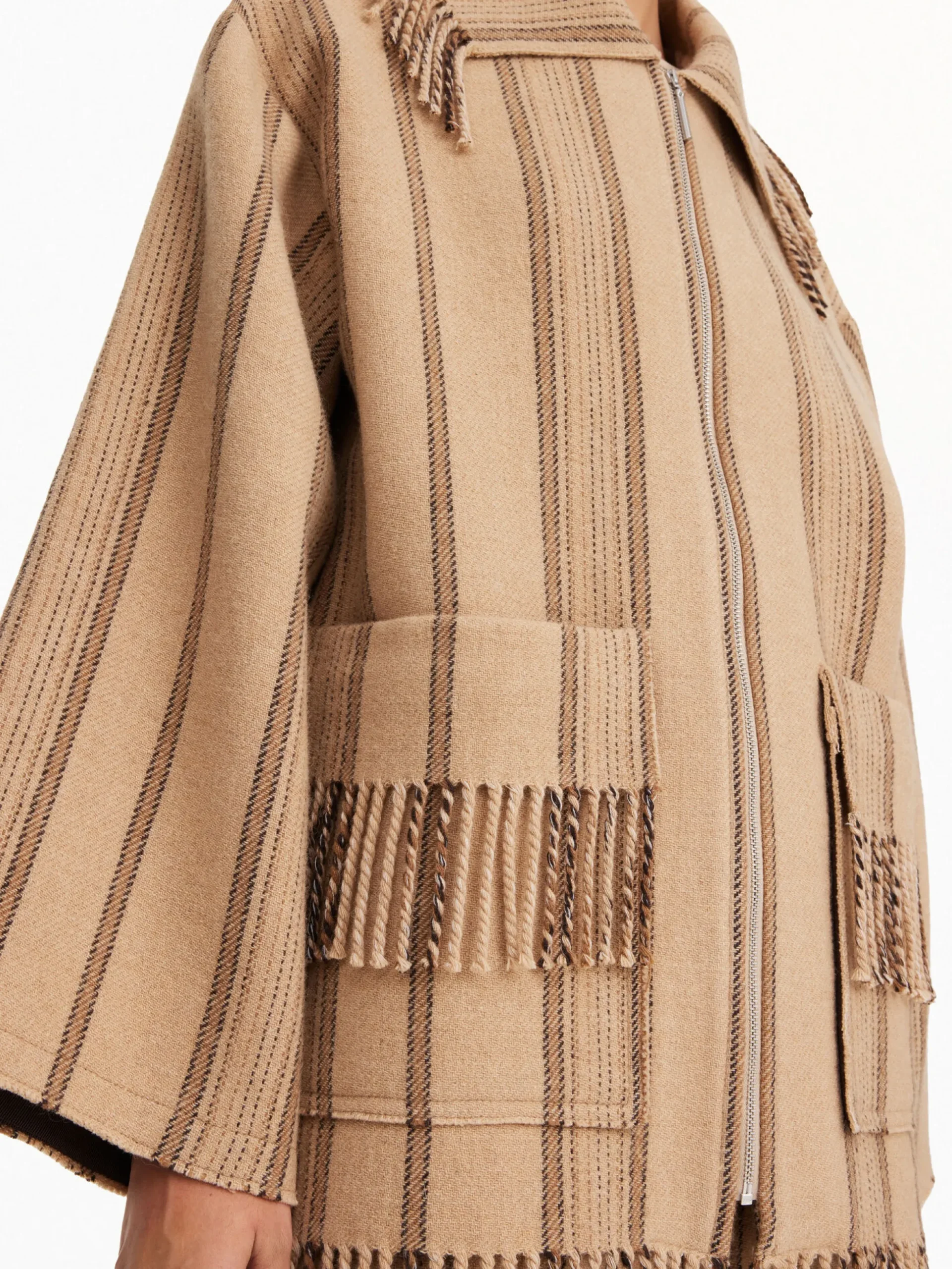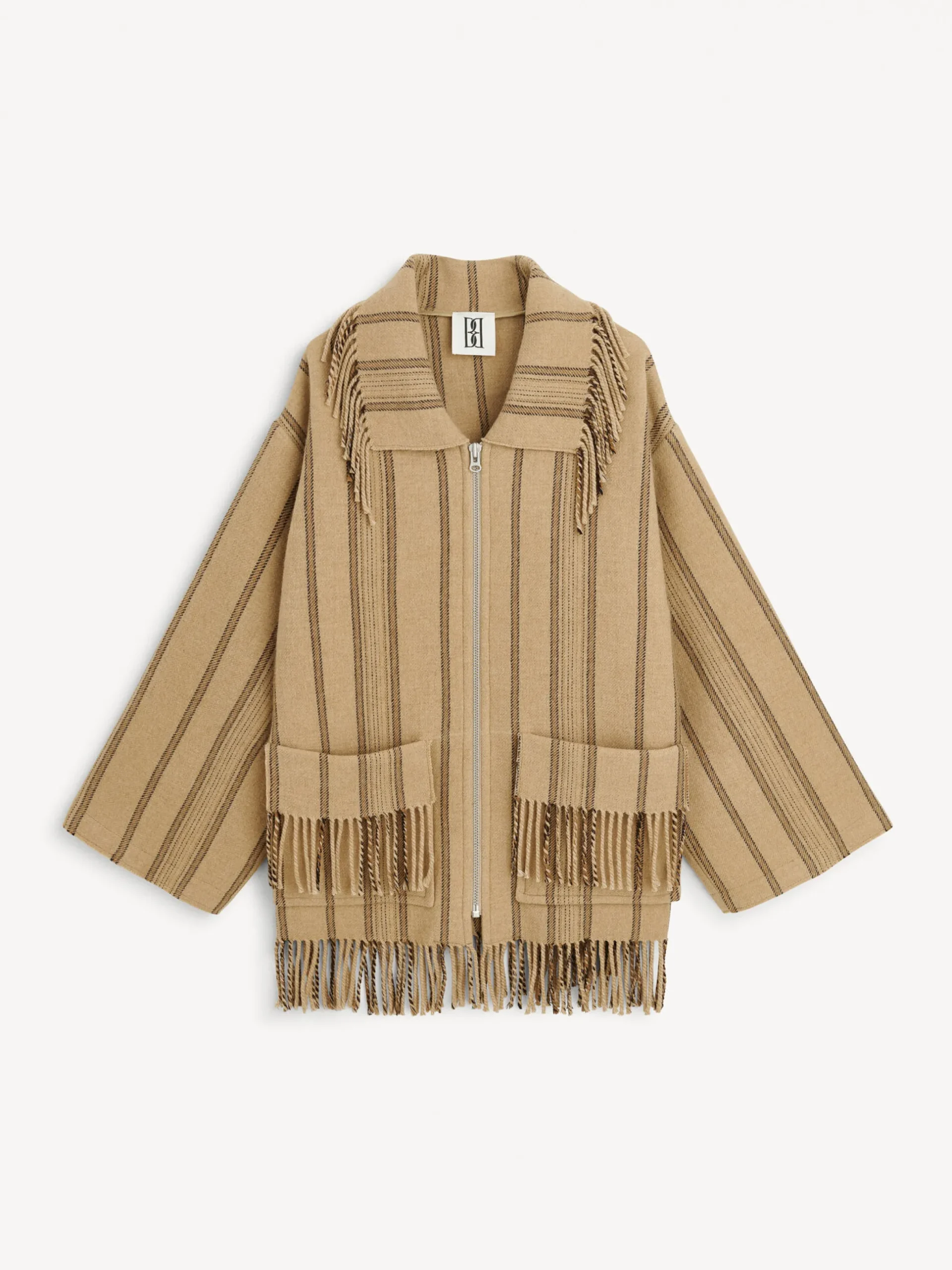 The Bolou jacket translates a classic into a bohemian vision. Crafted from a rich wool blend, it is cut to a single-breasted design with zip fastening and fringes that flow down the collar, hem and front pockets. Layer it over a pair of wide leg trousers or maxi dress to achieve the By Malene Birger signature look.