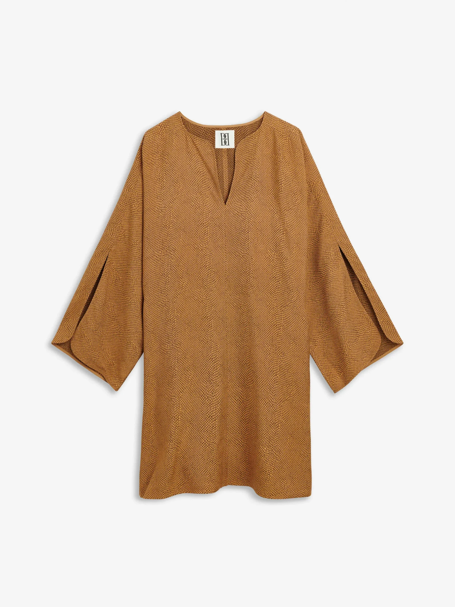 Crafted from a featherlight blend of materials, the Cerese dress exudes understated charm. The design has wide slit sleeves, a deep V neckline, and clean lines that sweep down to a midi hemline. Layer it over a turtleneck or suit trousers to ease into the new season.