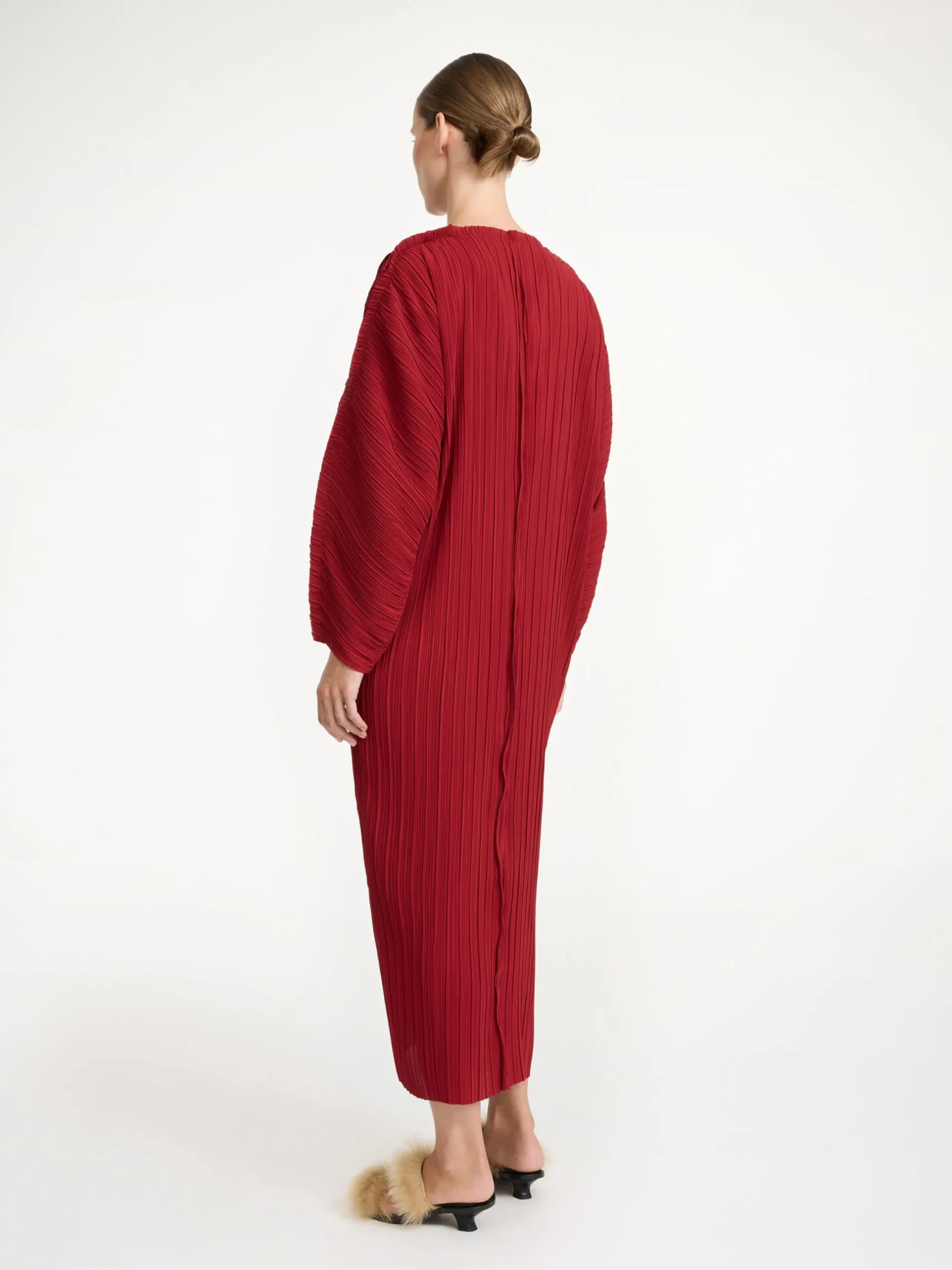 By Malene Birger Dalya maxi dress constructed from a tactile blend with a pleated effect. It is detailed with a deep V-neckline, curved sleeves, and a loose silhouette. Add jewellery and a clutch when going out on a date.