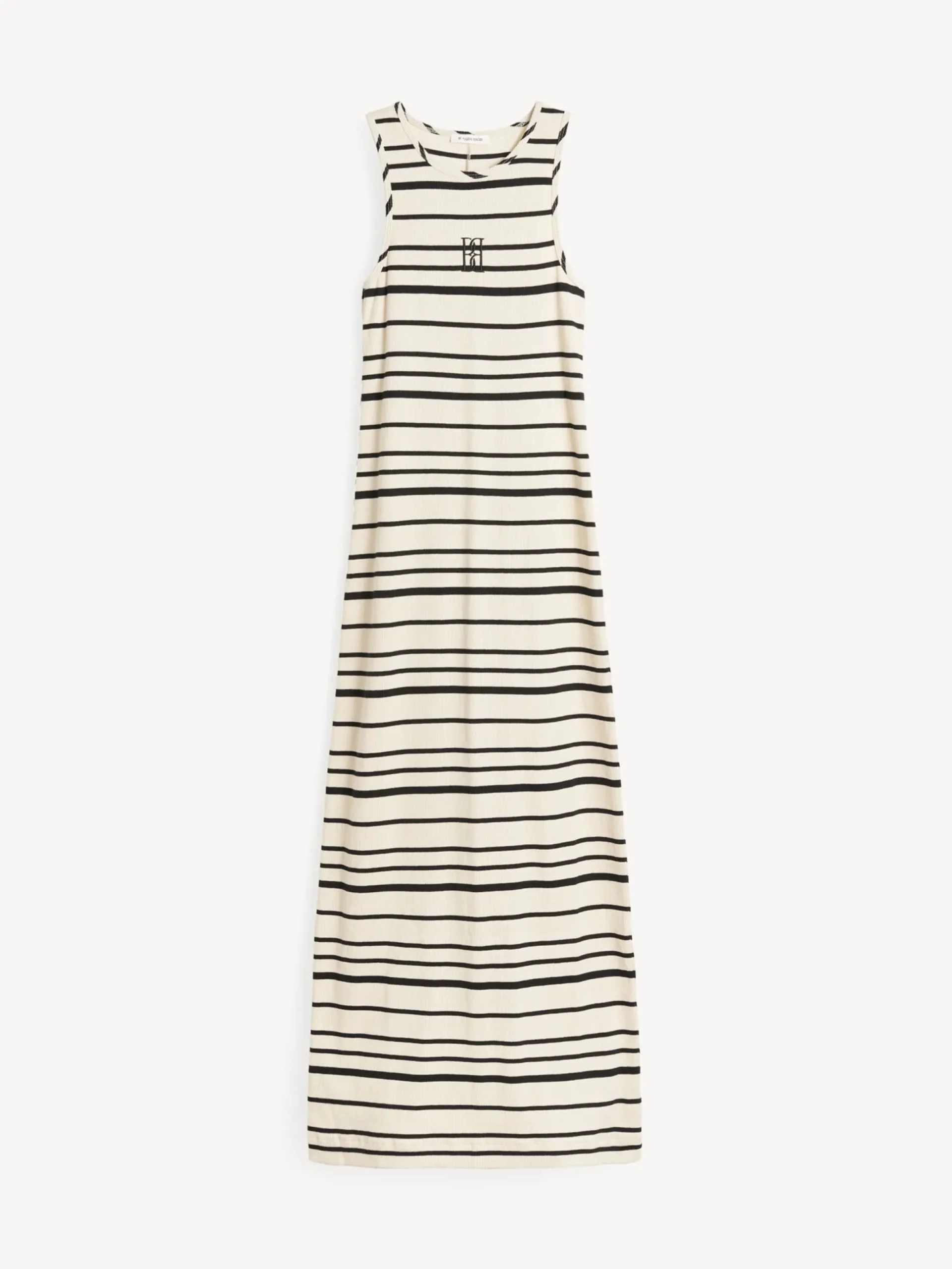 The Lovelo maxi dress is a wardrobe staple for the modern minimalist. Endlessly wearable, this striped design is crafted from a blend of organic cotton with a ribbed finish that frames the figure. Its key feature? The embroidered monogram on its front.