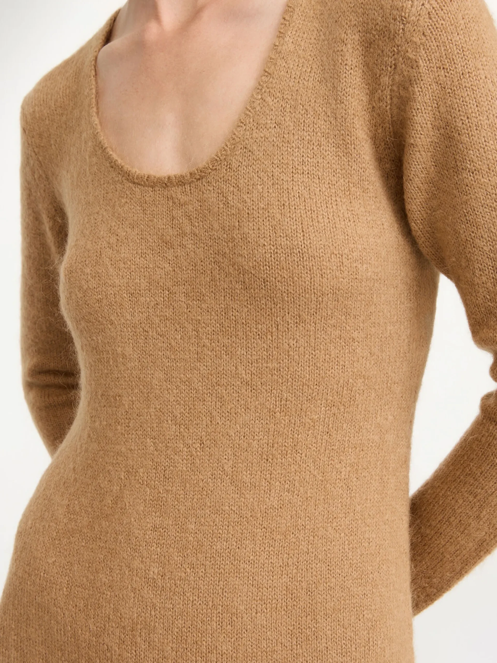 By Malene Birger Brinah dress knitted from a stretchy wool and mohair blend. It has a fitted waist and falls to an ankle-grazing A-line silhouette completed with flared sleeves and a round neck. Add heeled boots and a belt to dress for day and night.