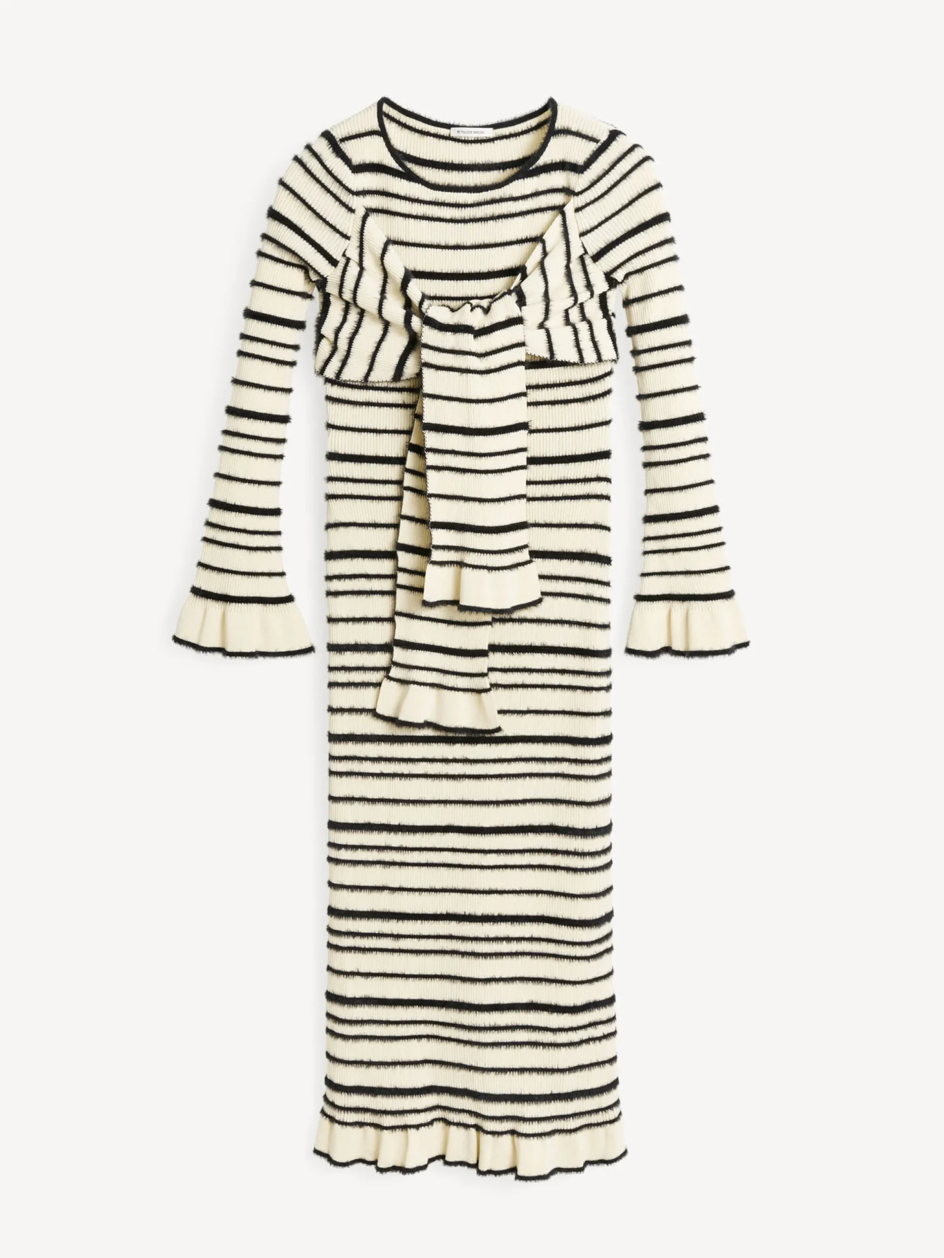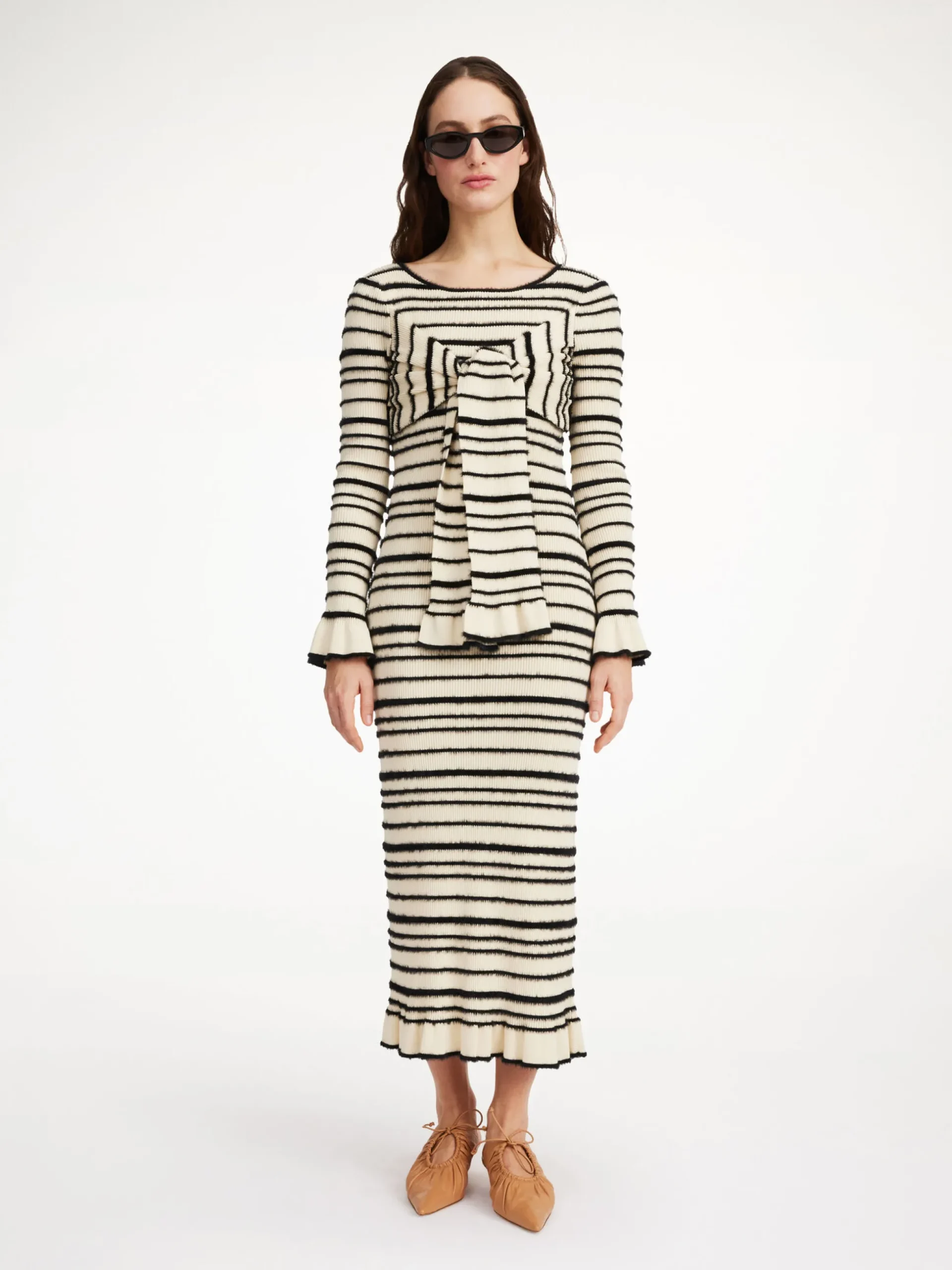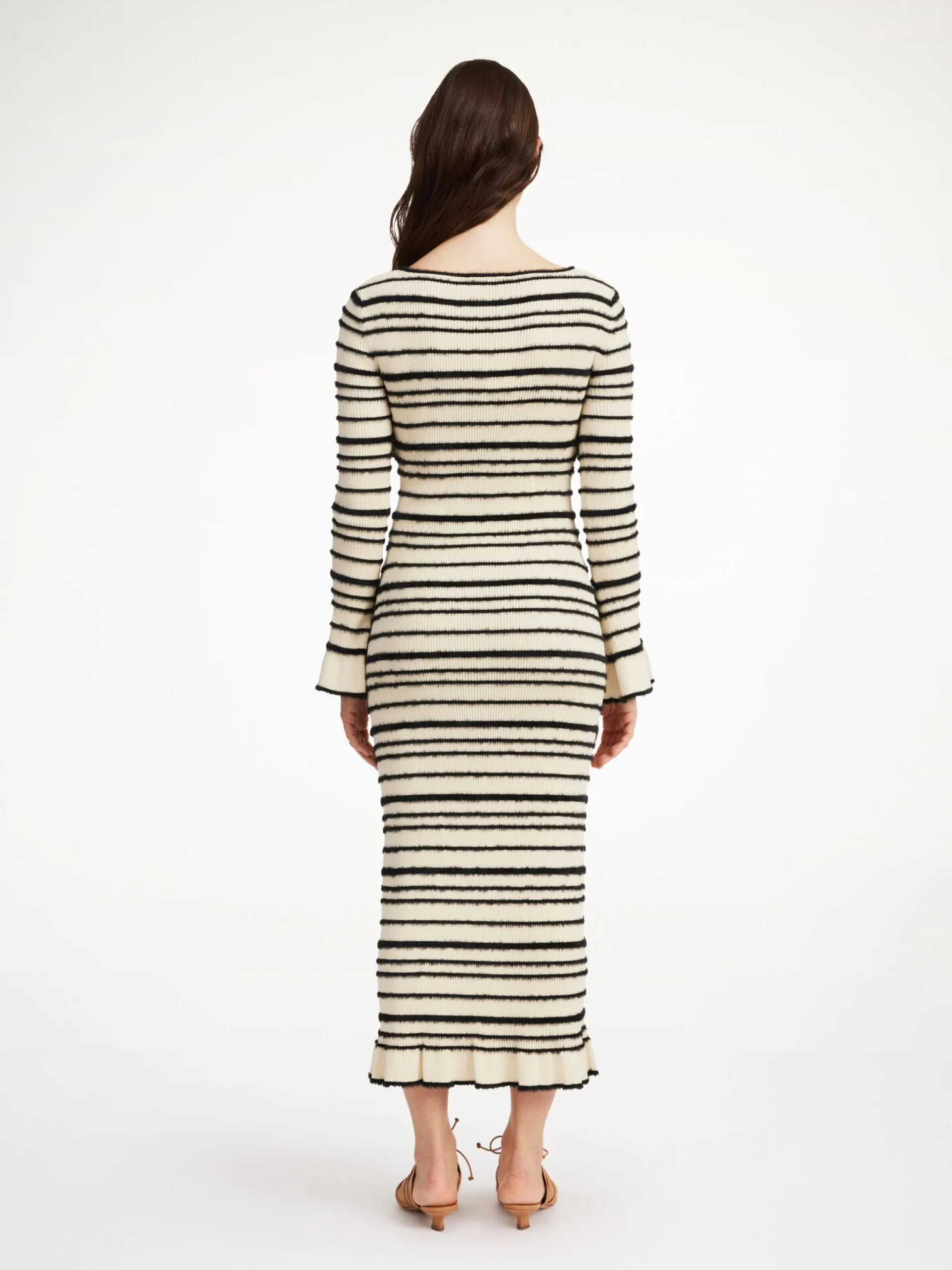 A celebration of form and texture, the Damira maxi dress has a relaxed yet maximalist mood. The knitted design features a front wrap, which falls down the figure to a maxi length, and ruffled trims. Wear yours with the Marisol leather sandals.