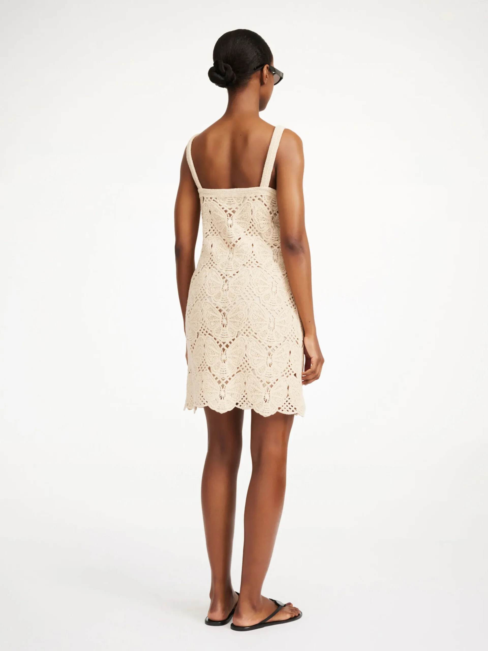 A playful piece for this season and beyond, the Falla mini dress is carefully crafted with a distinctive butterfly crochet. Made to slip on as the temperatures rise, the design is fully lined and closes with a zipper in the back.