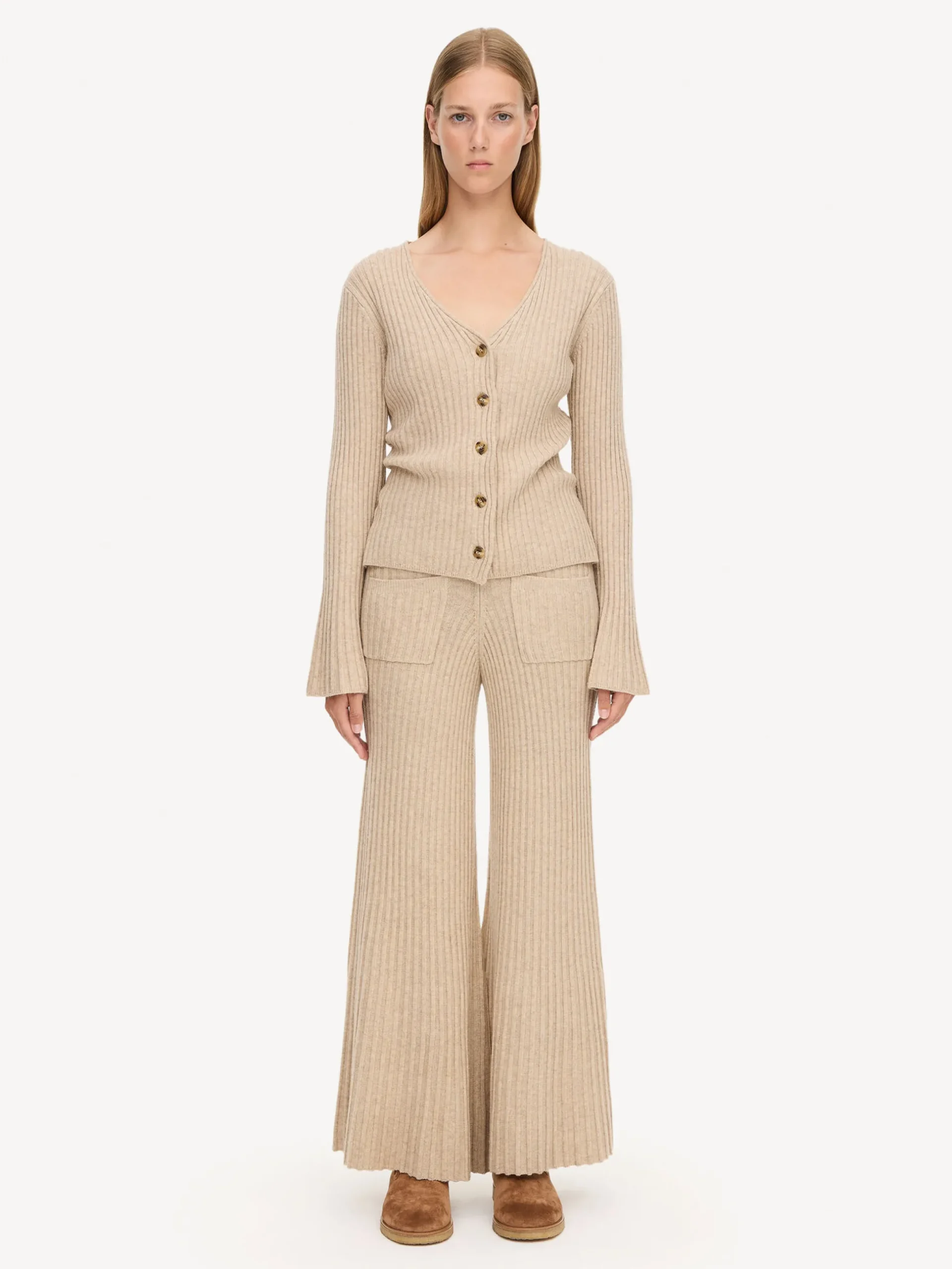 By Malene Birger Crissy trousers made from soft responsible wool with patch pockets at the front. The mid-waisted design features a regular fit and flares below the knee. Pair it with a sweater and cotton layers as winter draws closer.