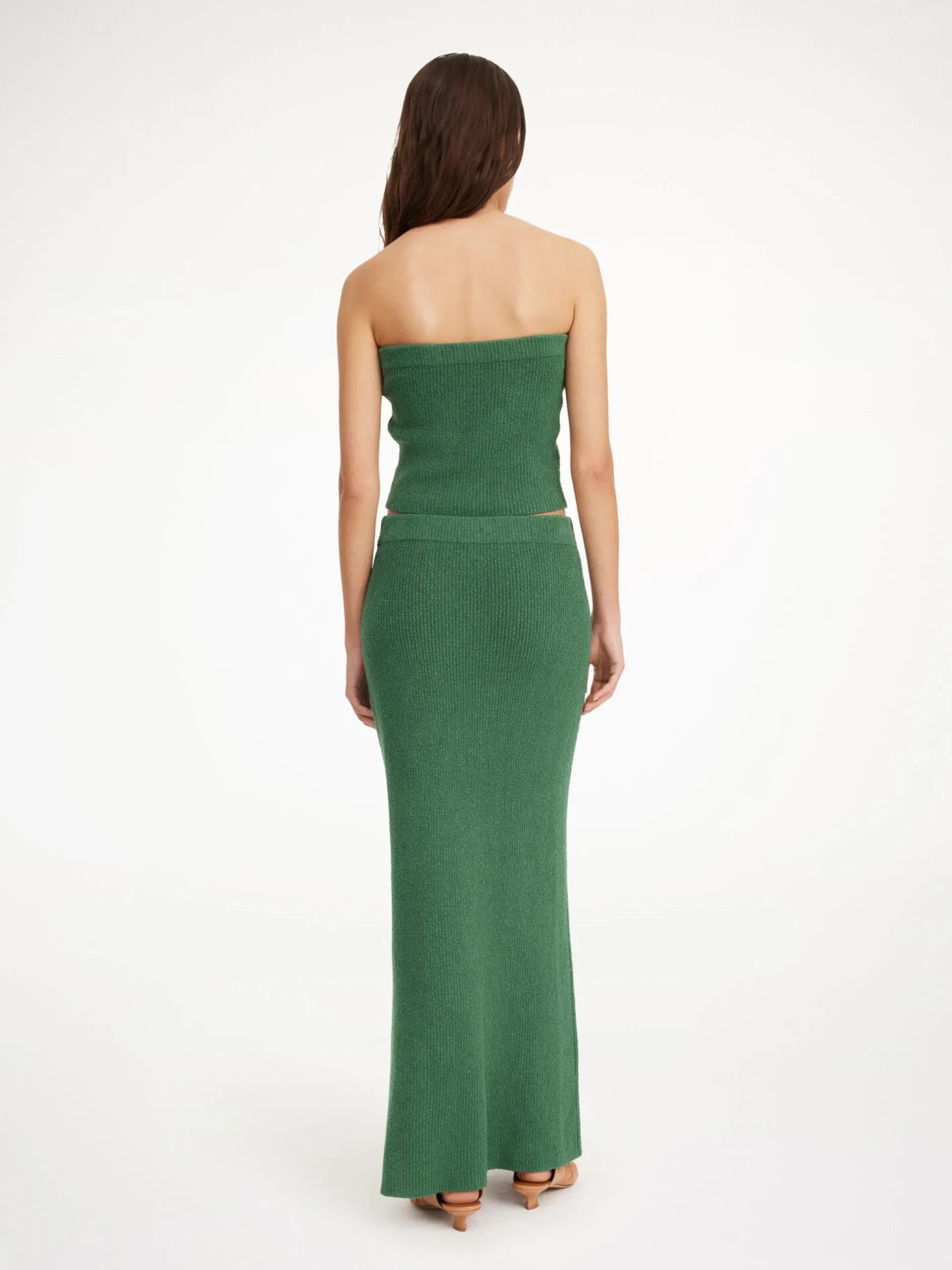 The effortless mood of the Giovania top makes it ideal to use as the temperatures rise. Crafted in a rib knitted fabrication, the bandeau top has an elastic band for easy wearing. Pair with the matching Kyara skirt for both city strolls and cocktail hour.