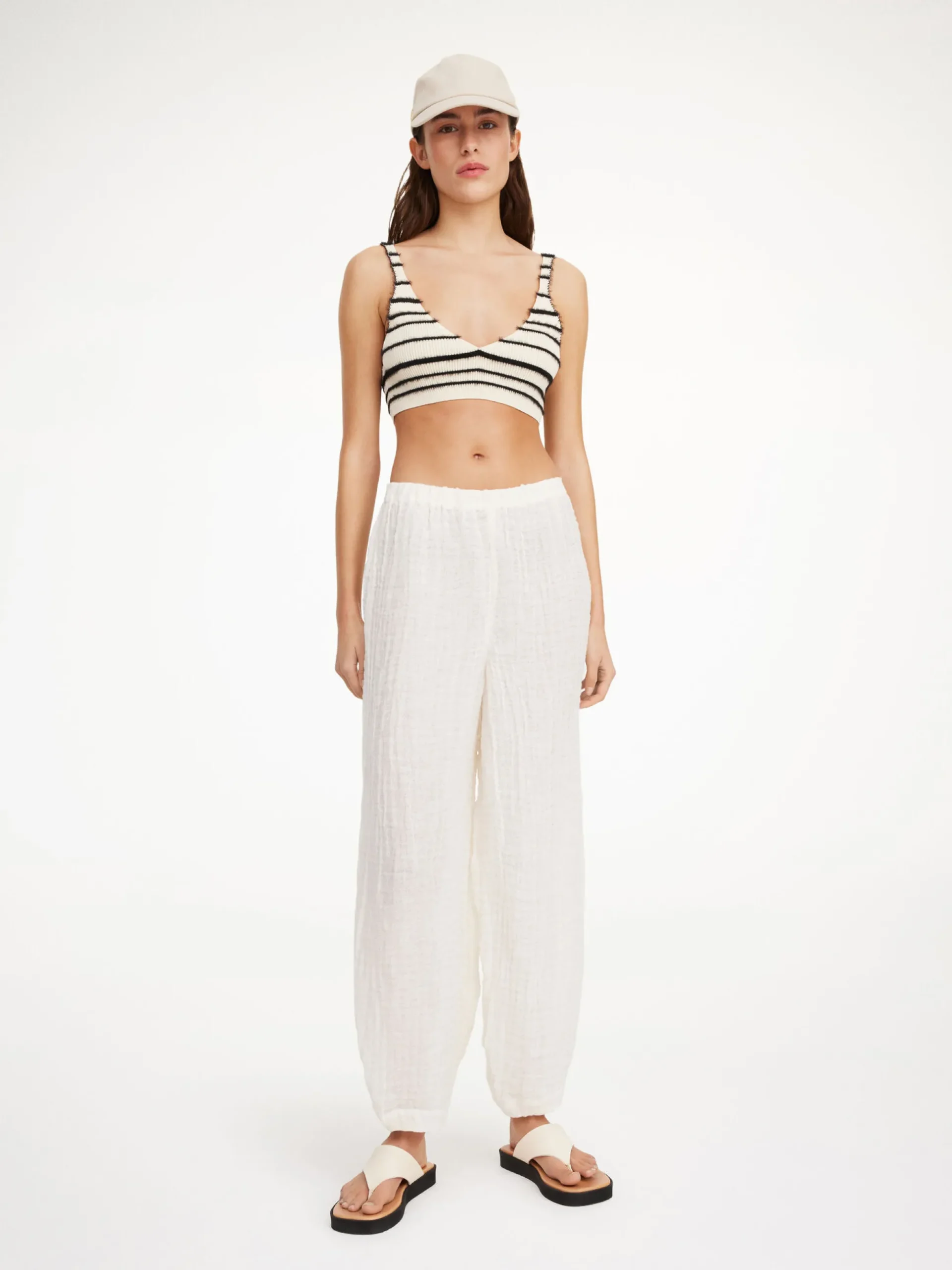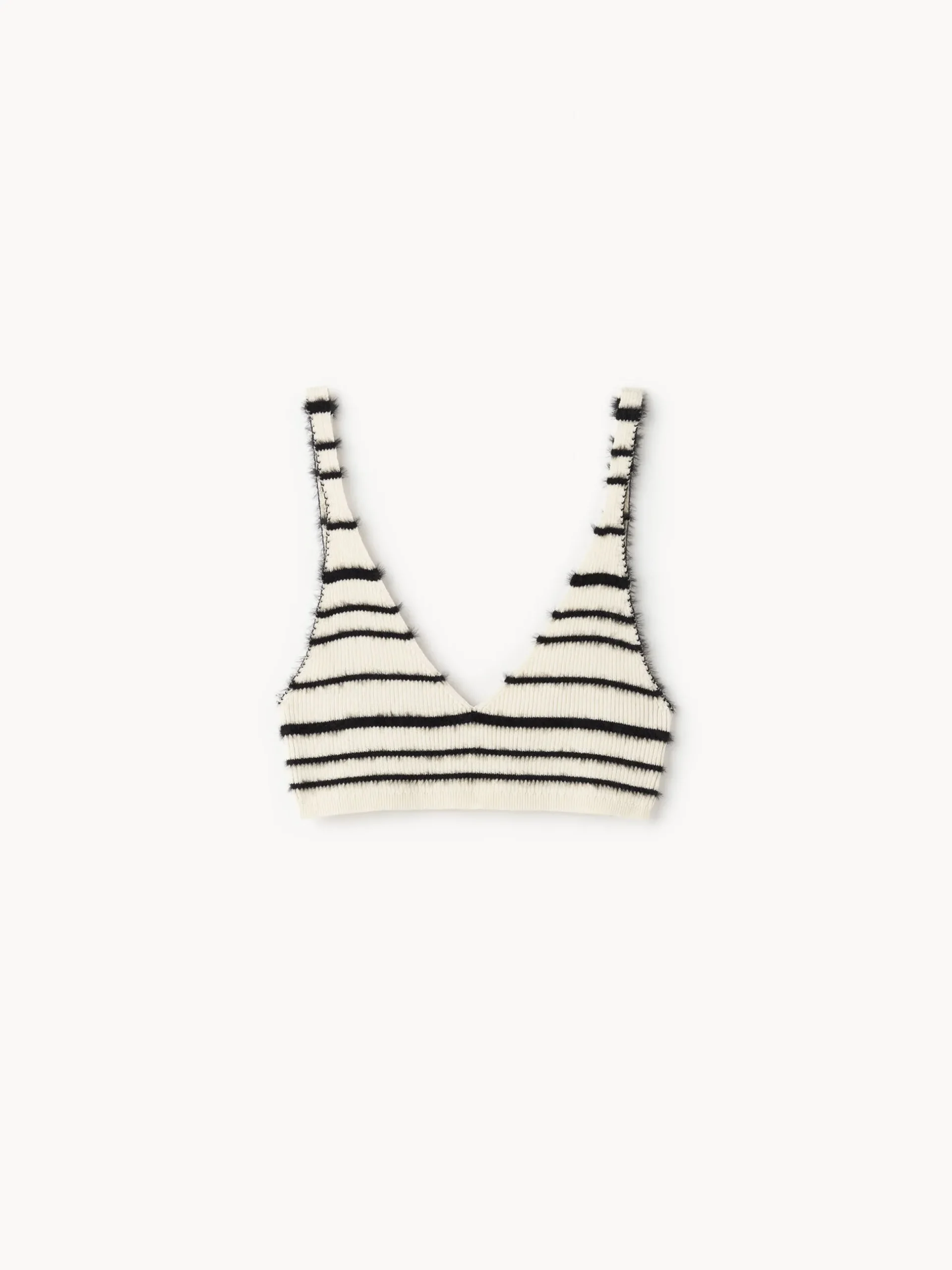 The graphic motif and tactile fabrication of the Reggie bralette will add a statement to your spring and summer edit. Use as a layering piece on top of voluminous shirts.
