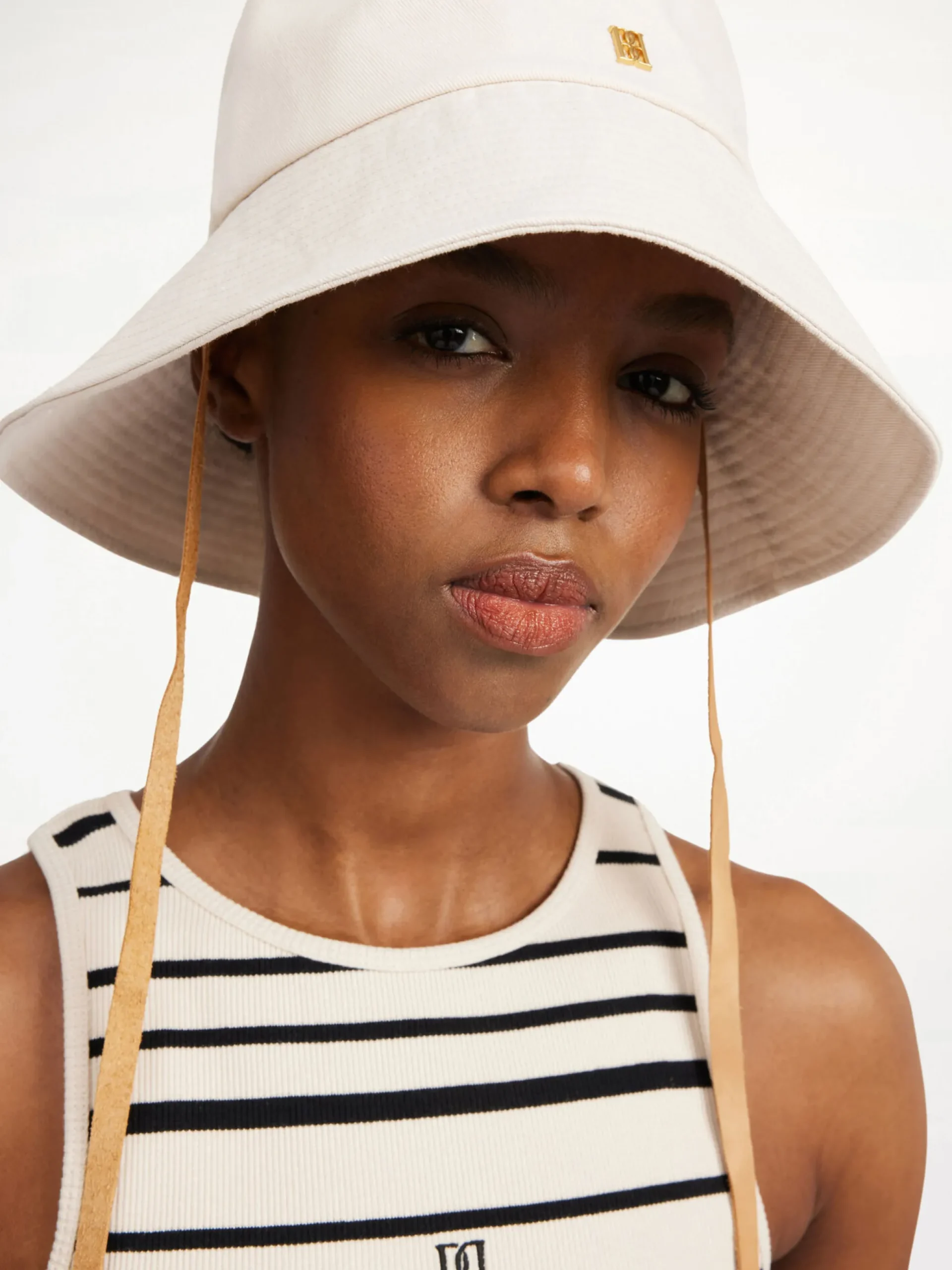 Add dimension to your vacation edit with the Piovas hat. Crafted in durable cotton, the design has a large shade, ties, and our monogram on its front.