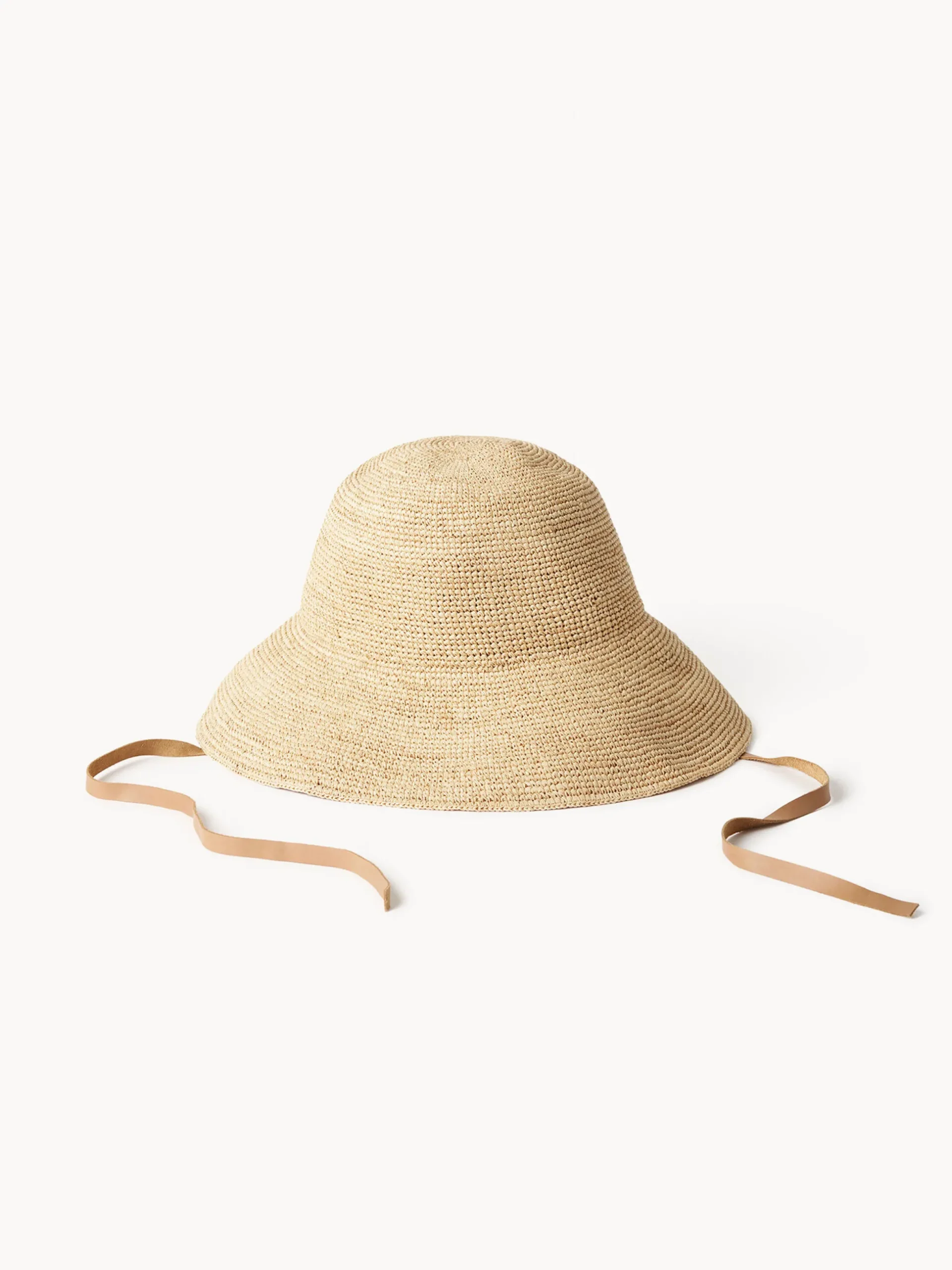 Crafted in raffia straw, the Rafiah hat will bring you shade from the sun while adding dimension to your daily edit. The design features a wide shade and tie closure.