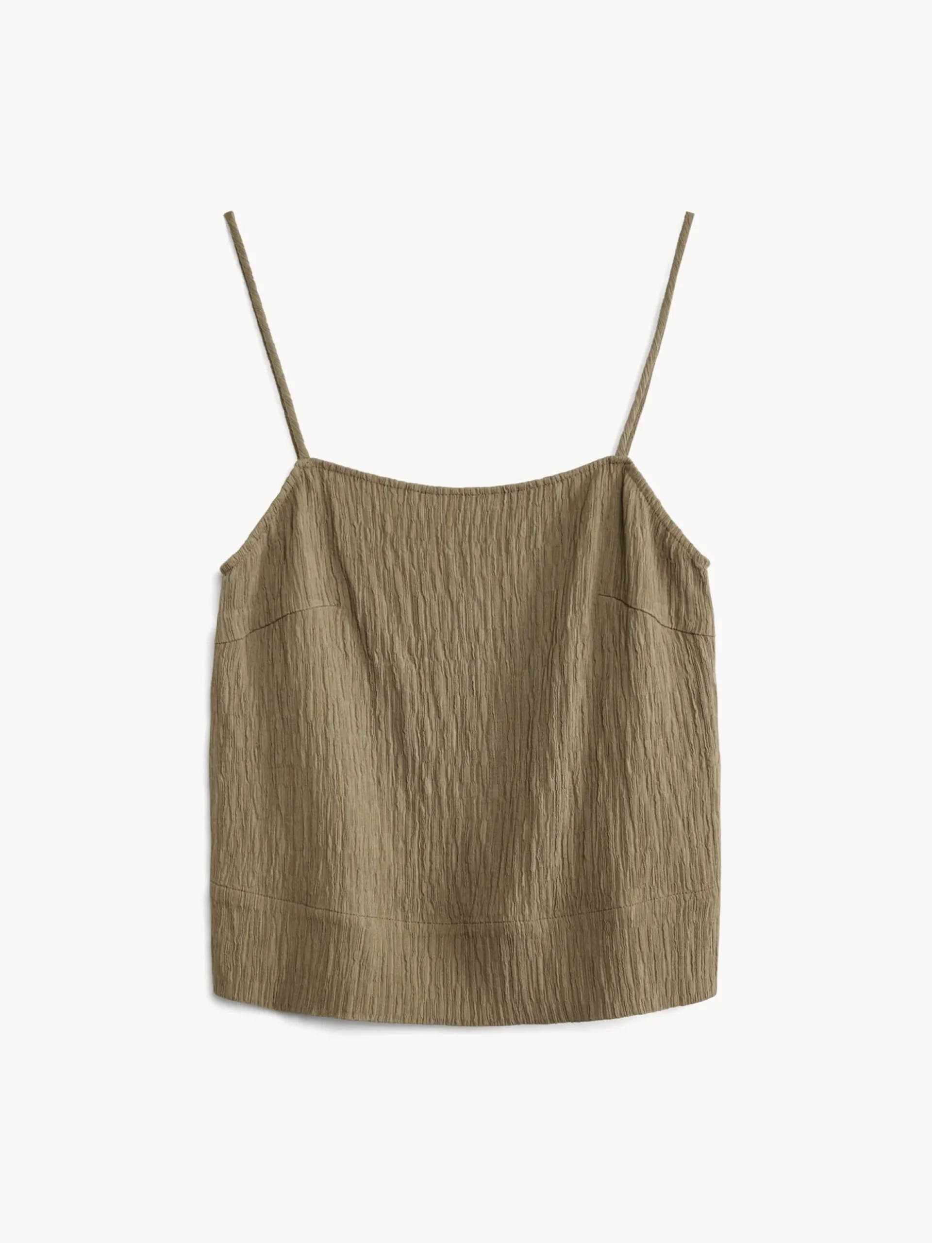 Neutral in hue and timeless in silhouette, the tactile Alviola top dangles from slender straps to a loose silhouette. You will find yourself reaching for it all season long.