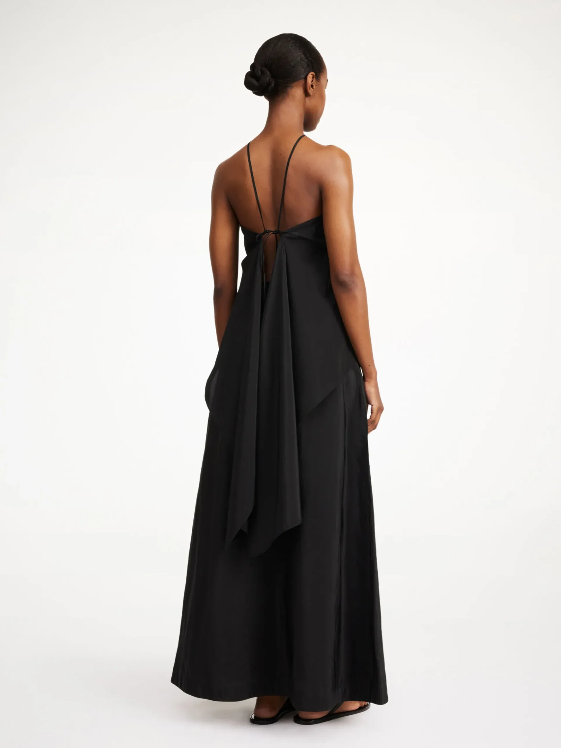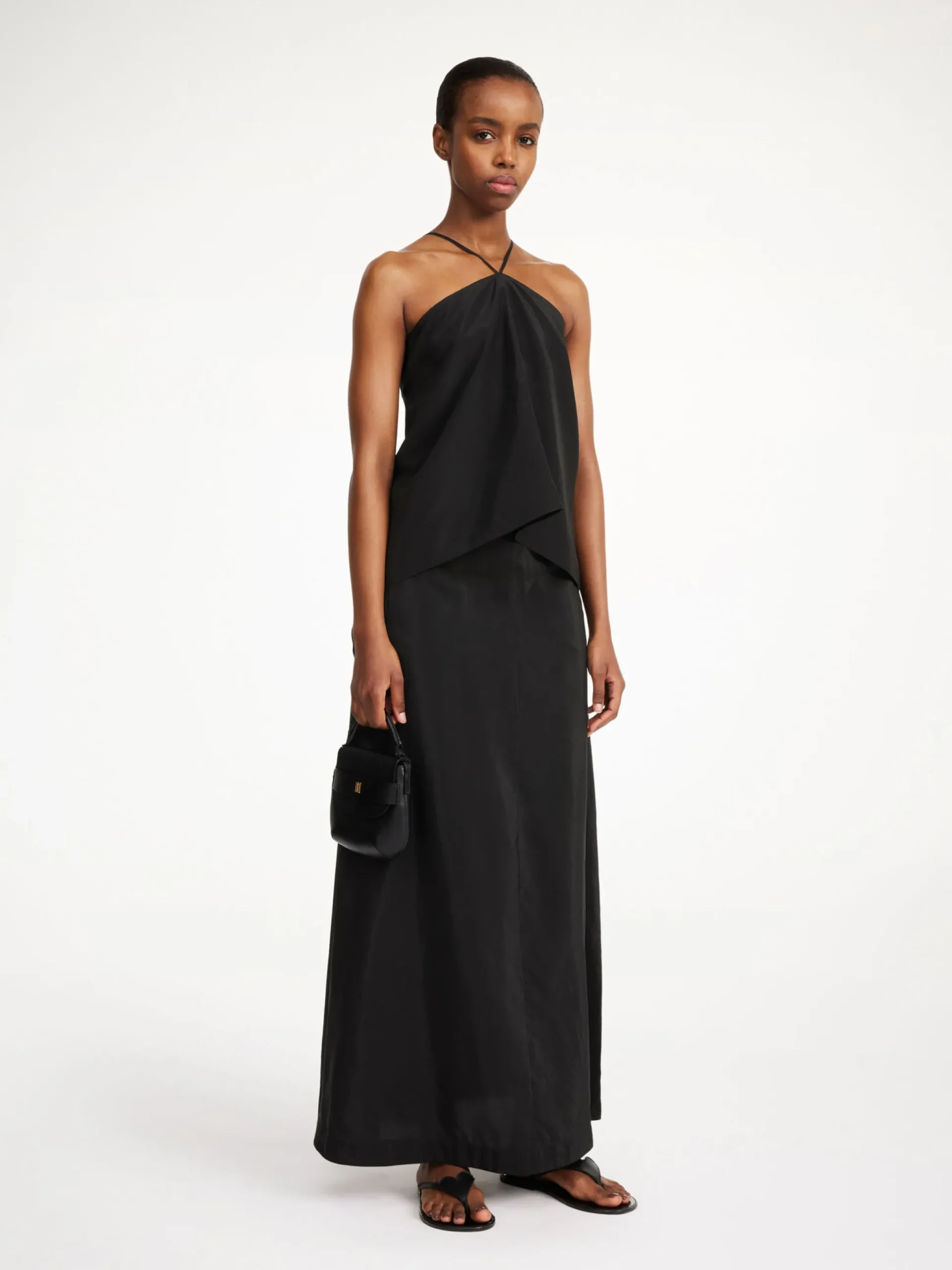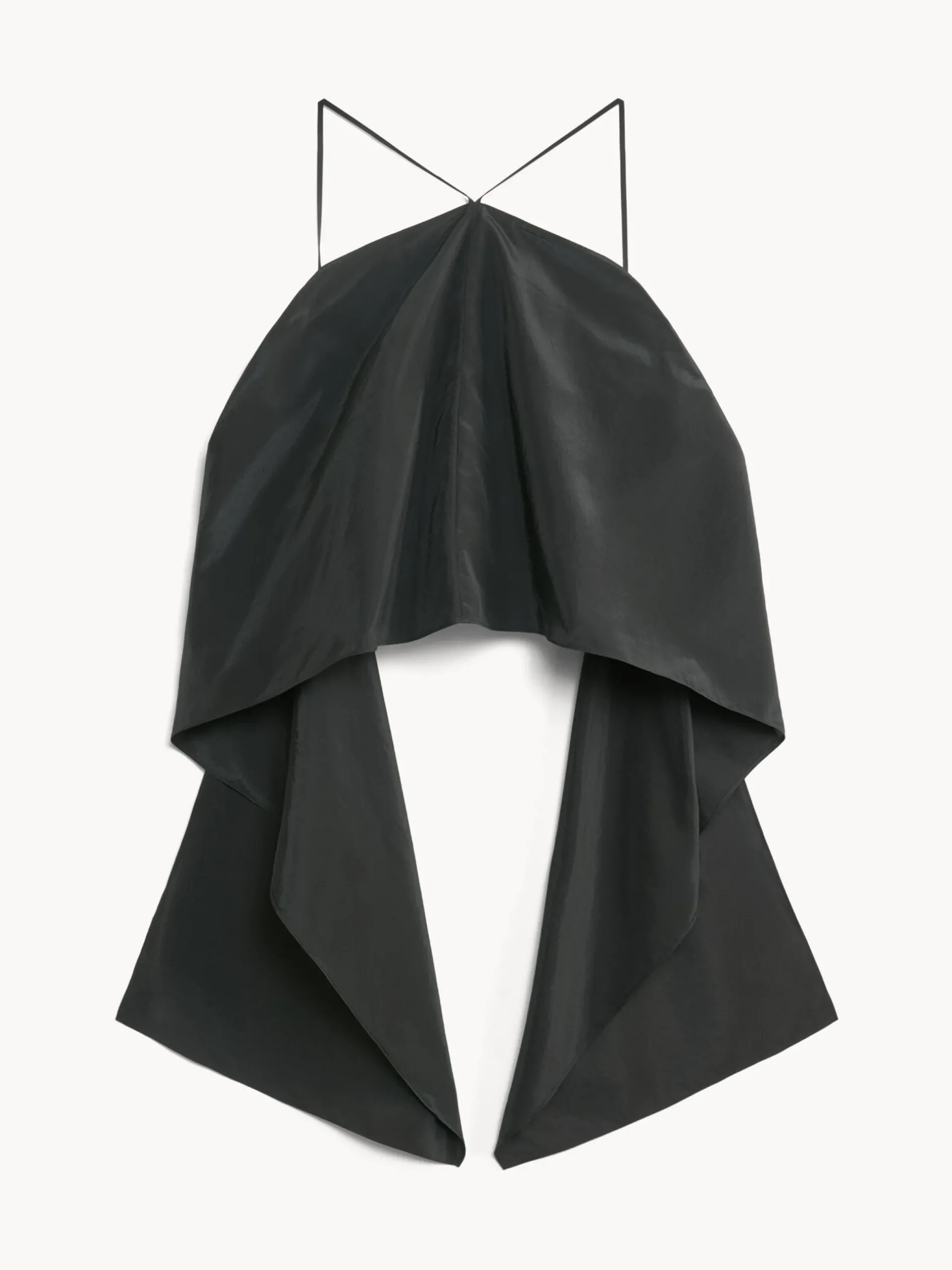 A fitted upper contrasted with flowing elements that fall gently down the back lend a refined expression to the Brinola top. Suspending from slender adjustable straps, the artistic design is ideal for after-hours.