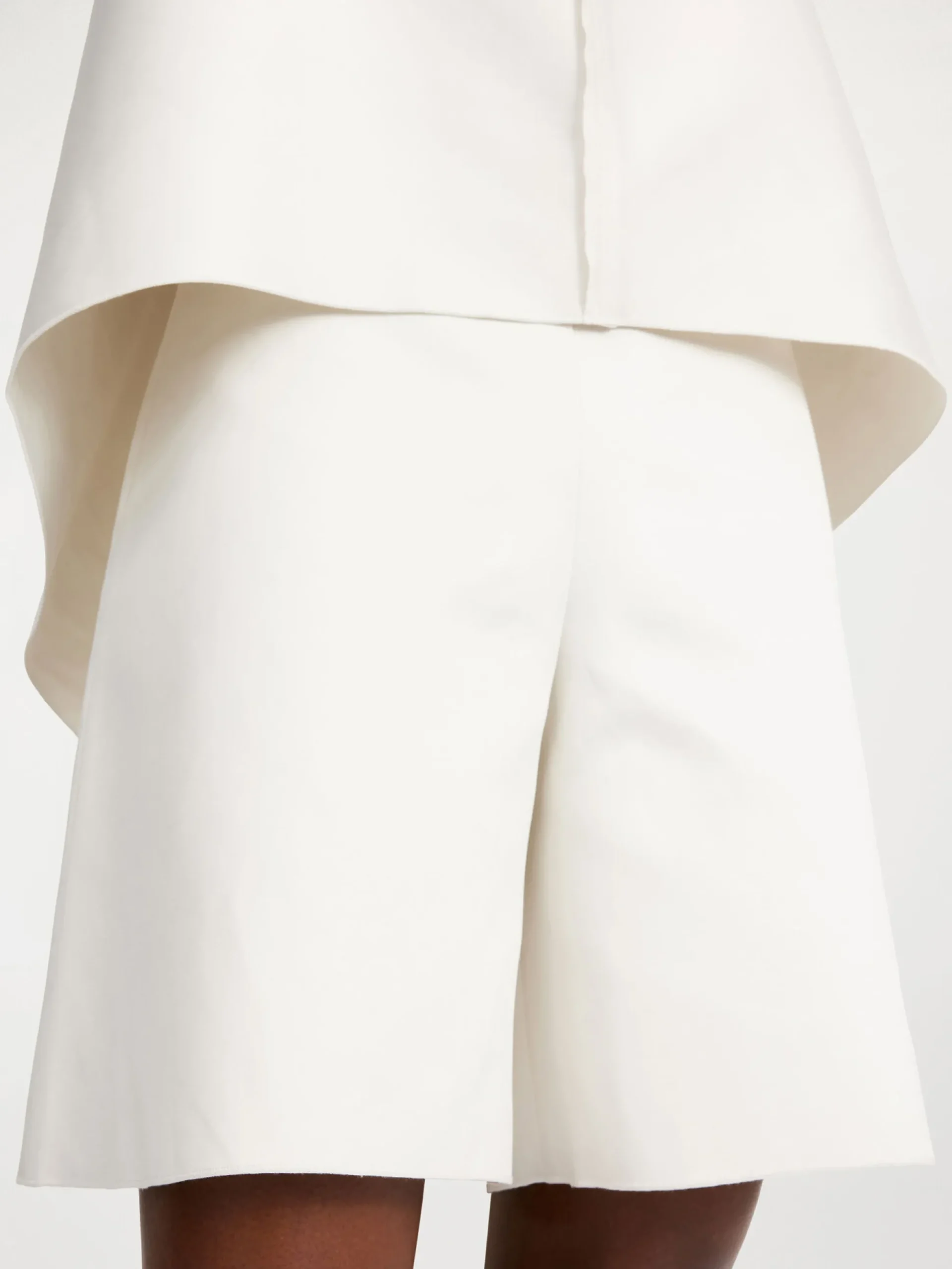 The Marrian shorts will carry you through the season with a sense of elegance. The high-waisted design that closes with a zipper on the side has a fitted upper and wide legs that cut just above the knee.
