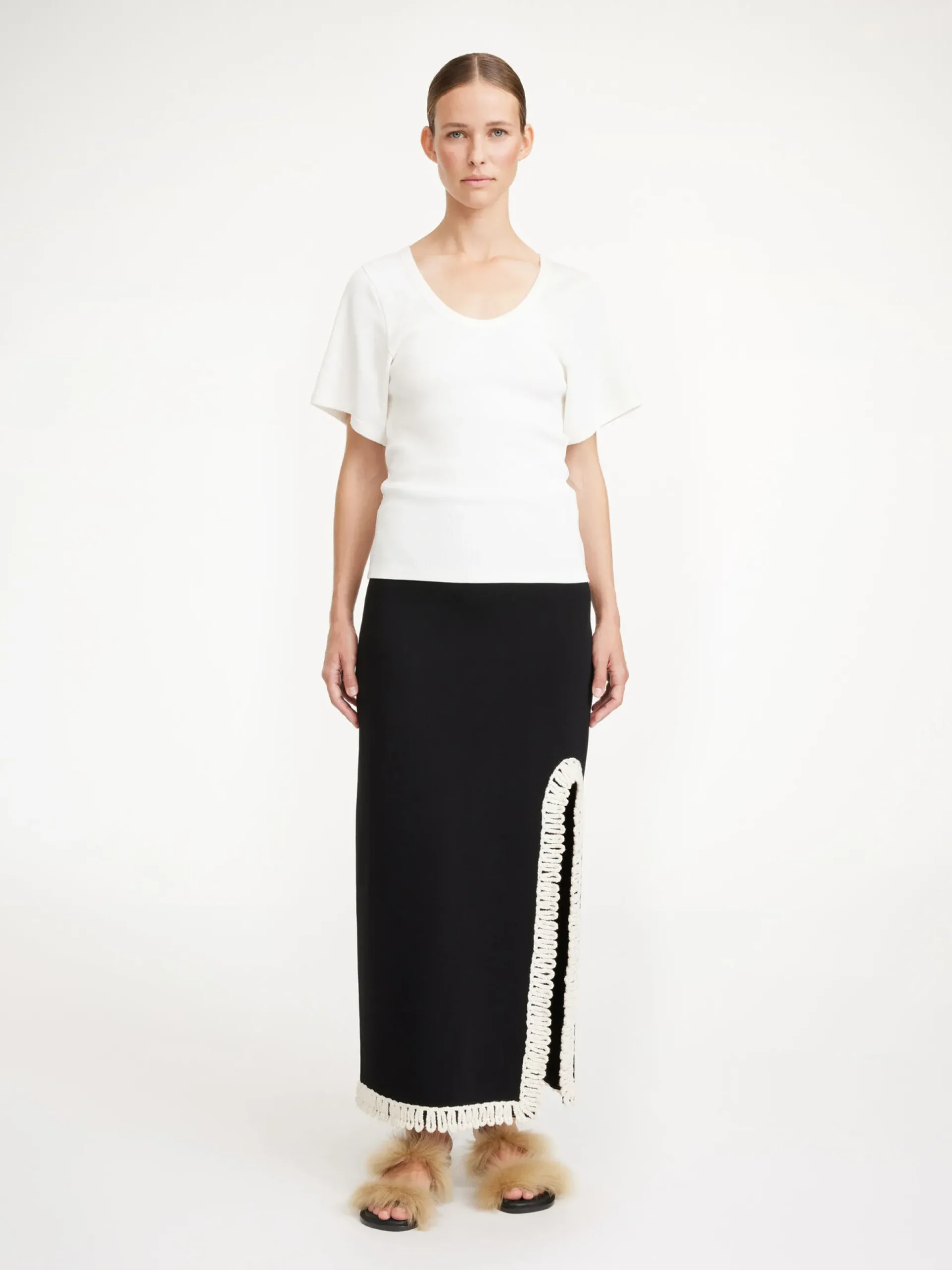 The Gabie maxi skirt captures the bohemian minimalism of By Malene Birger. It is made from a heavyweight blend and features a hidden elastic waistband and decorative stitching along a curved maxi hemline. Complete the look with the matching top to wear out.