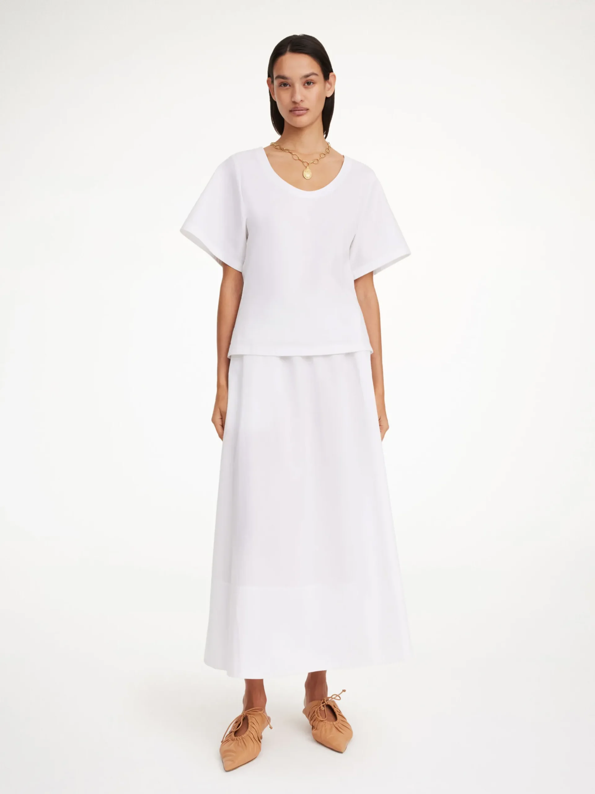 The Pheobes maxi skirt is an essential in your spring edit. The organic cotton design has an elastic band that sits high on the waist and a loose silhouette. Pair it with the Orilla scarf worn as a top on sunny days.