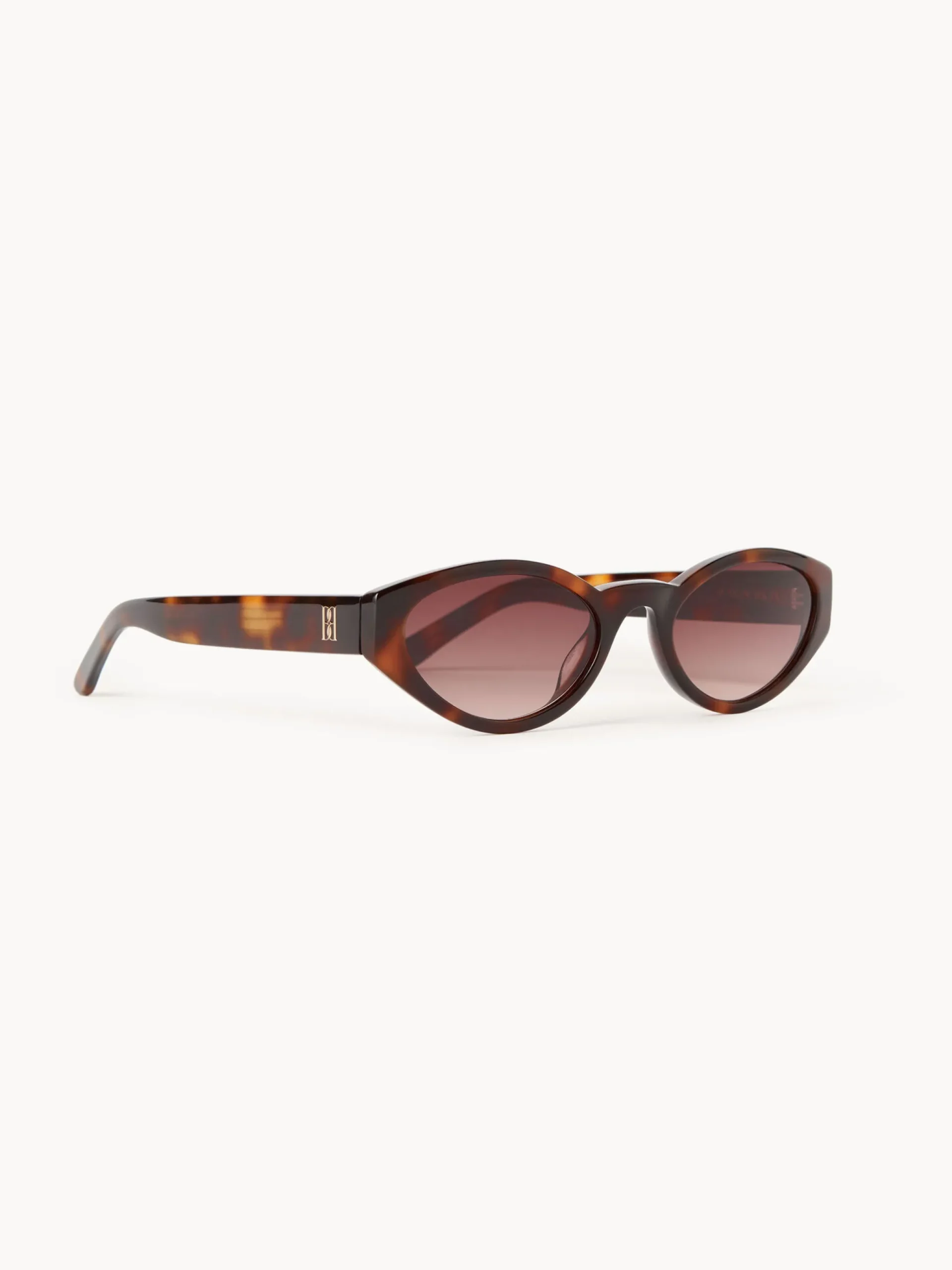 By Malene Birger Myla sunglasses made from shiny acetate. They feature a slender oval frame with broad arms and dark lenses for UV protection. Make them the finishing touch to your summer looks.