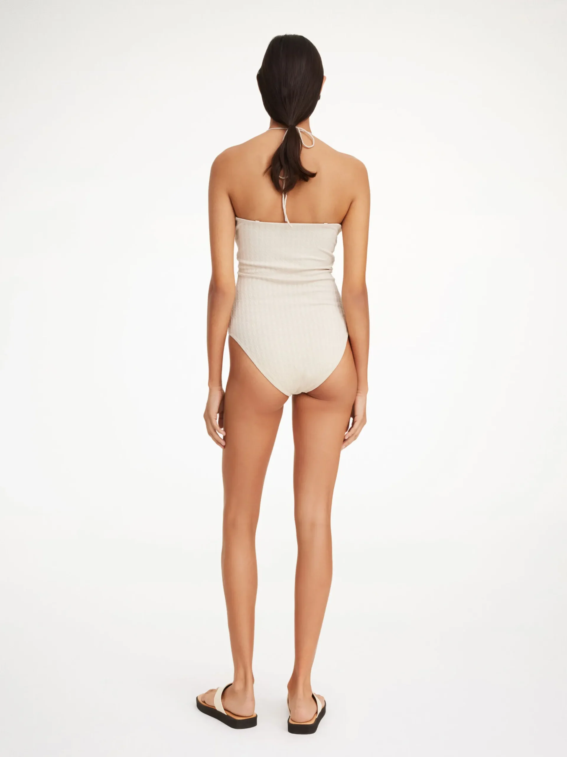 The Giabra swimsuit is an essential for any warm-weather edit. Decorated with our monogram, the one-piece design has an adjustable strap and a tight fit that ensure comfortable wearing. Transform from beach to the after-hours by pairing with jeans