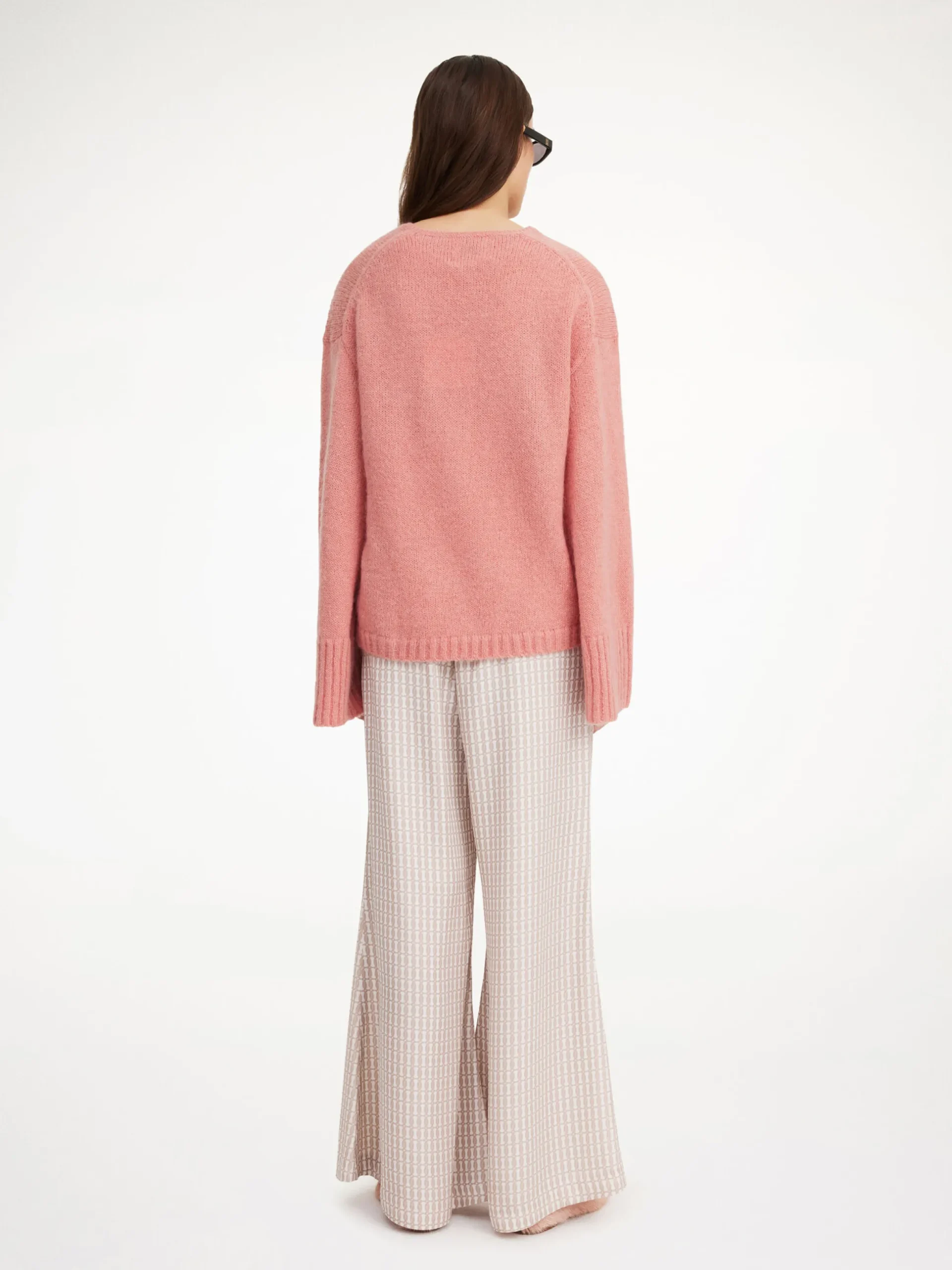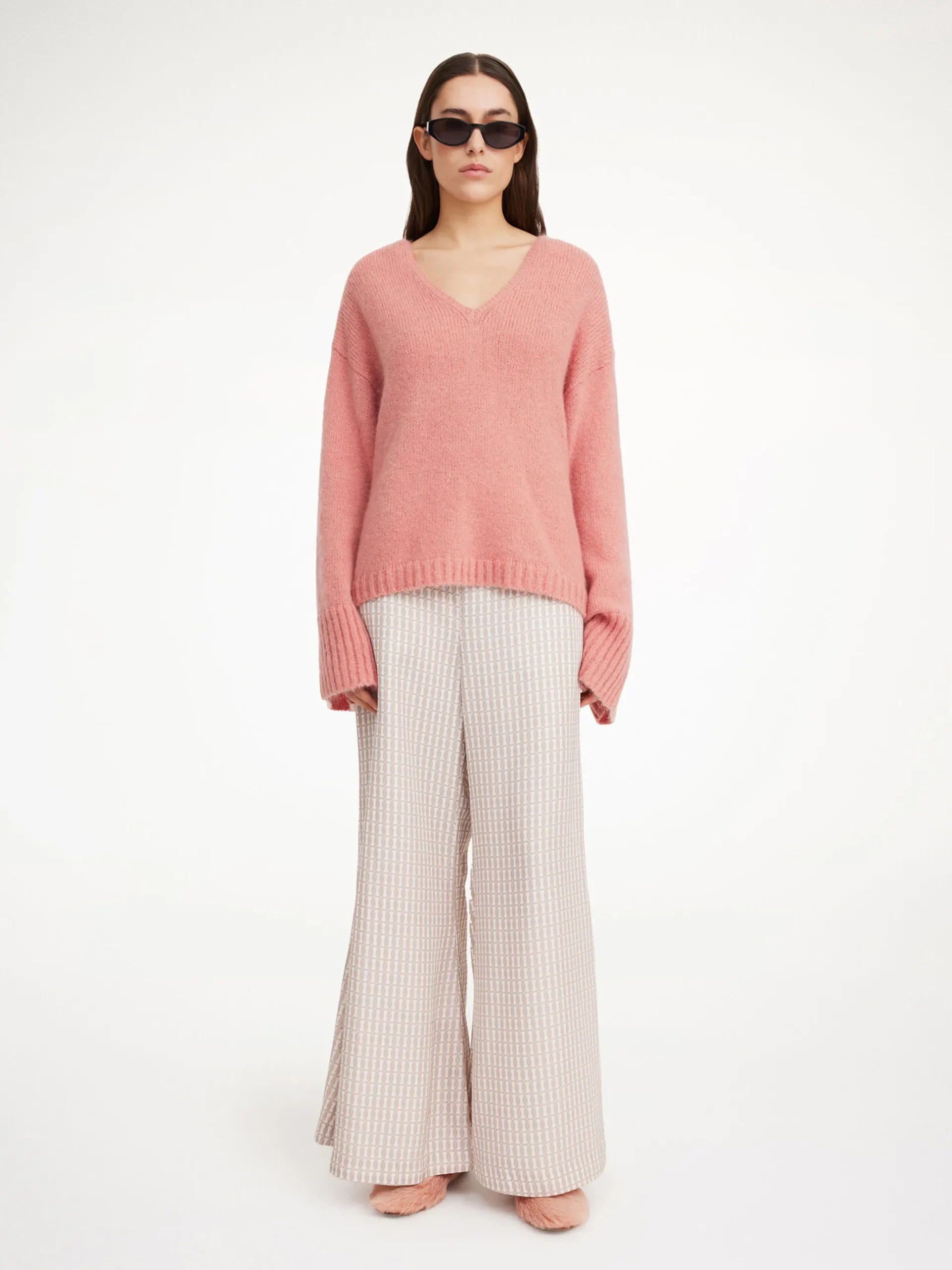 Crafted in the distinctive monogram print, By Malene Birger’s Lucee trousers feature wide flared legs and a high waist. Take them from desk to dinner paired with an oversize blazer.