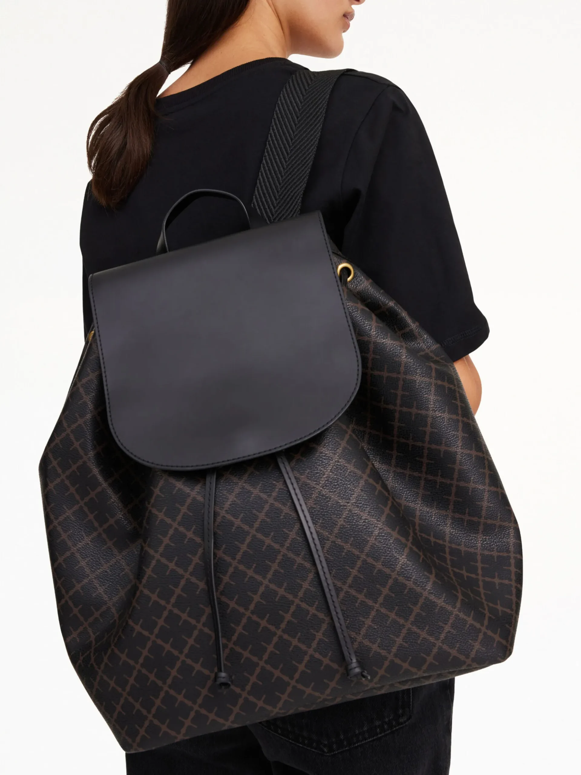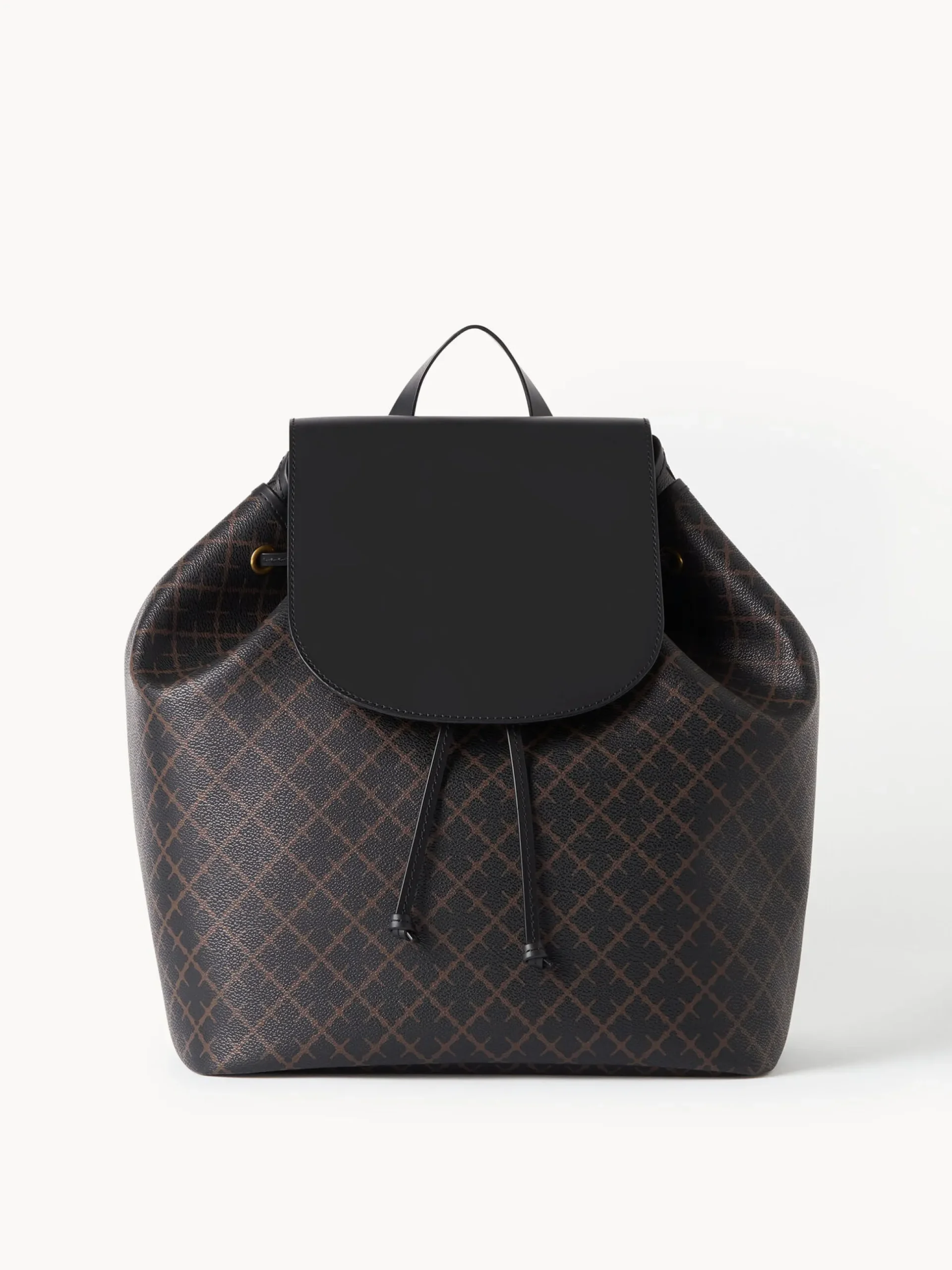 By Malene Birger Loenlo backpack constructed from durable material for everyday use. This mid-sized design features a drawstring closure, adjustable straps, and a large flap, and is completed with the By Malene Birger Signature Flower pattern. Carry it over one shoulder for a casual look.