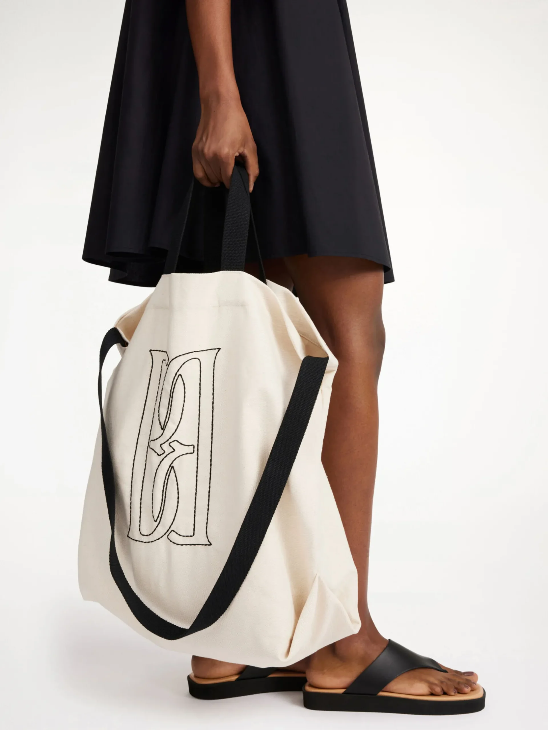 Generous in size and carefully crafted in organic cotton, the Shayan tote makes a statement with its large monogram. The design has straps in two lengths that allow you to wear it however you like.