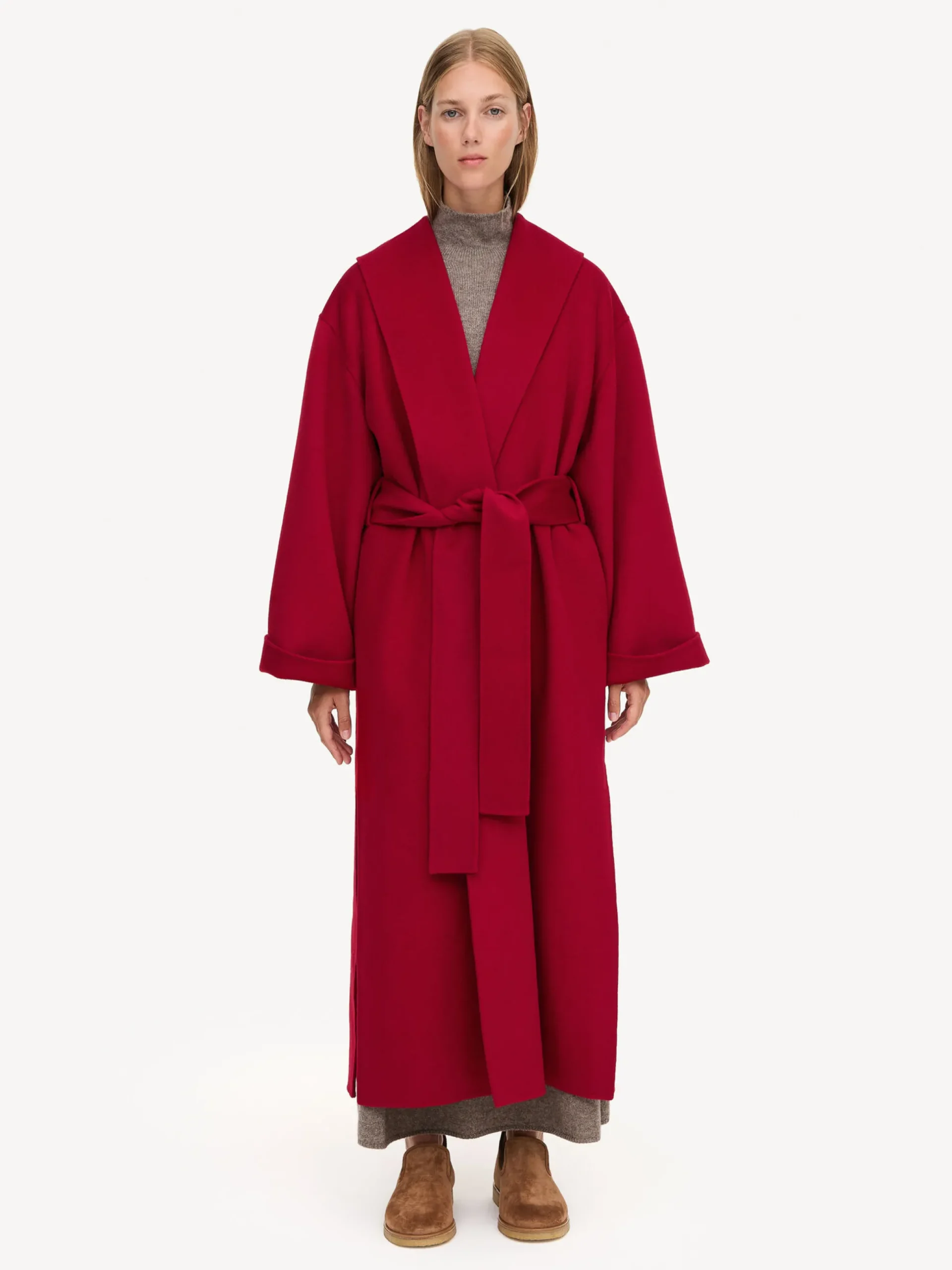 Simple in shape and supremely soft, the Trullem coat makes seasonal layering a truly luxurious affair. Crafted from wool, the design is shaped to a wrap silhouette with dropped shoulders. Cinch yours with the detachable belt, or leave unfastened to showcase a satin dresses and plush knitwear.