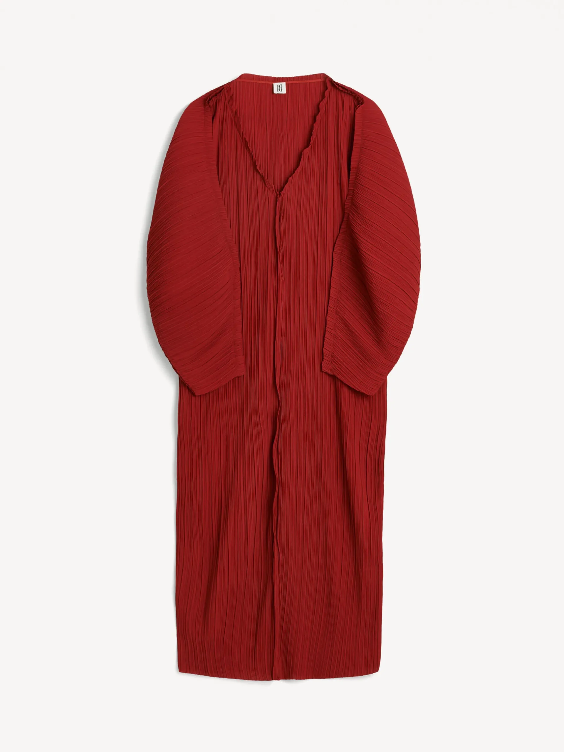 By Malene Birger Dalya maxi dress constructed from a tactile blend with a pleated effect. It is detailed with a deep V-neckline, curved sleeves, and a loose silhouette. Add jewellery and a clutch when going out on a date.