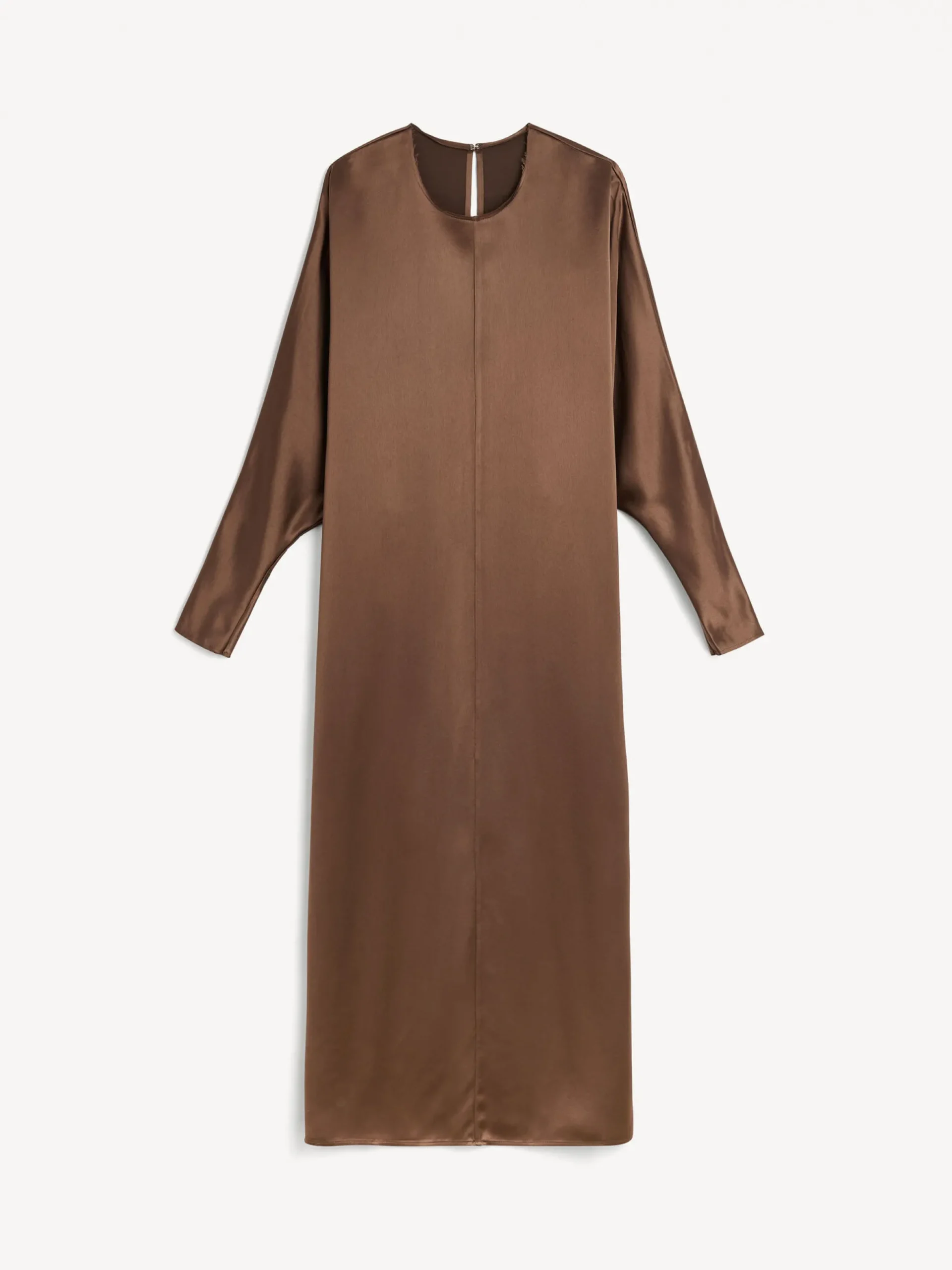 By Malene Birger Odelle maxi dress made from a silky mid-weight blend that falls to a long silhouette. The design features a front panel, wide sleeves that narrow towards the wrist, and a single back button. Complete an effortless evening look with ankle boots.