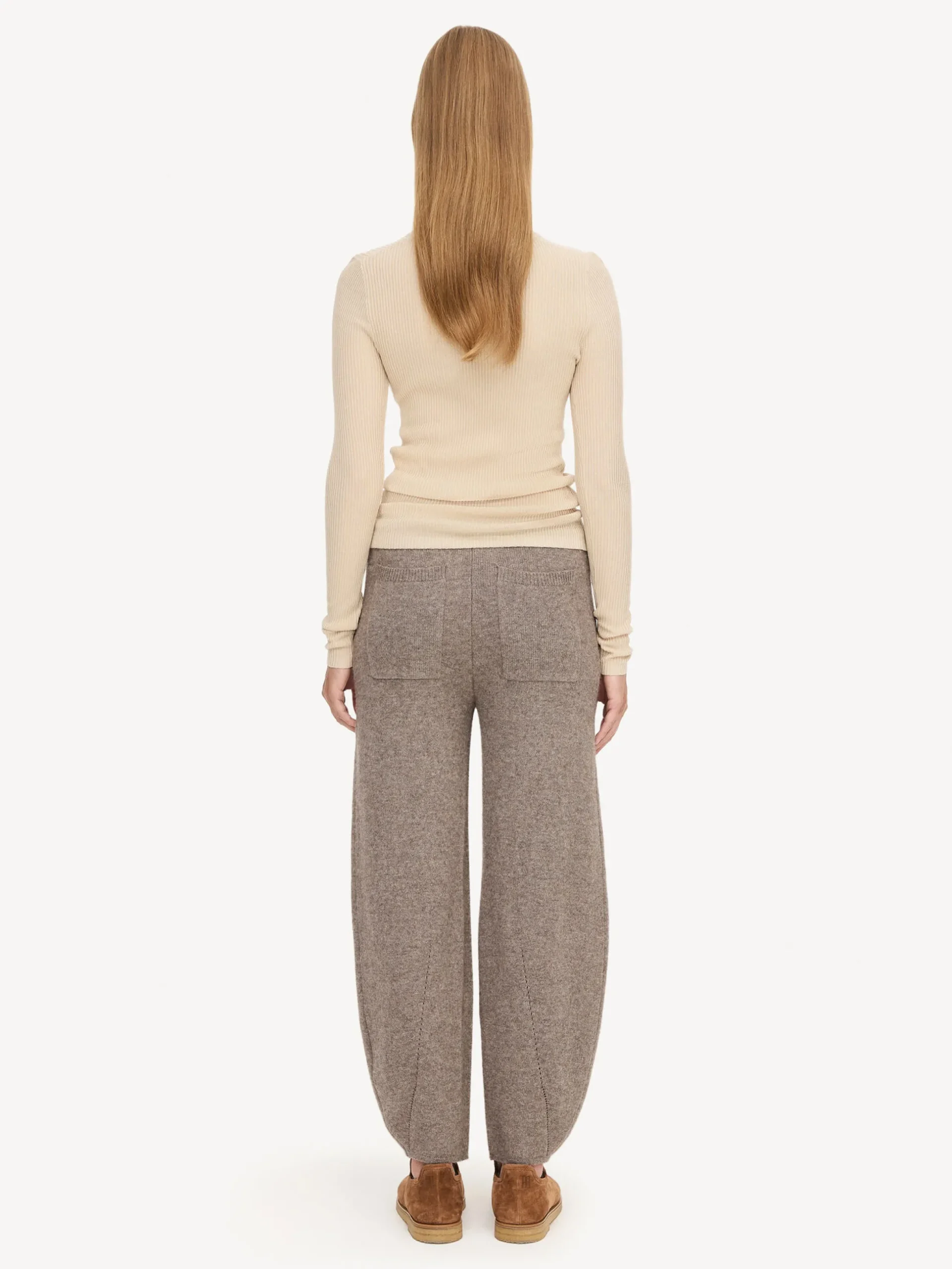 By Malene Birger Tevah trousers knitted from a responsibly sourced blend of yak and wool. They feature a ribbed high waist and tapered legs. Complete a coordinated look with new-season knitwear for a relaxed weekend.