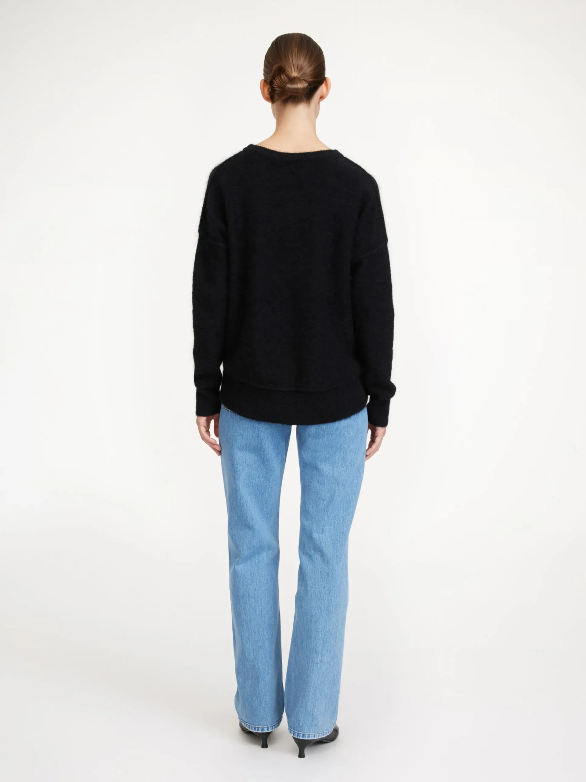 Crafted from a lightweight blend of wool and mohair, with a touch of stretch for comfort, this knitted sweater is cut fo…