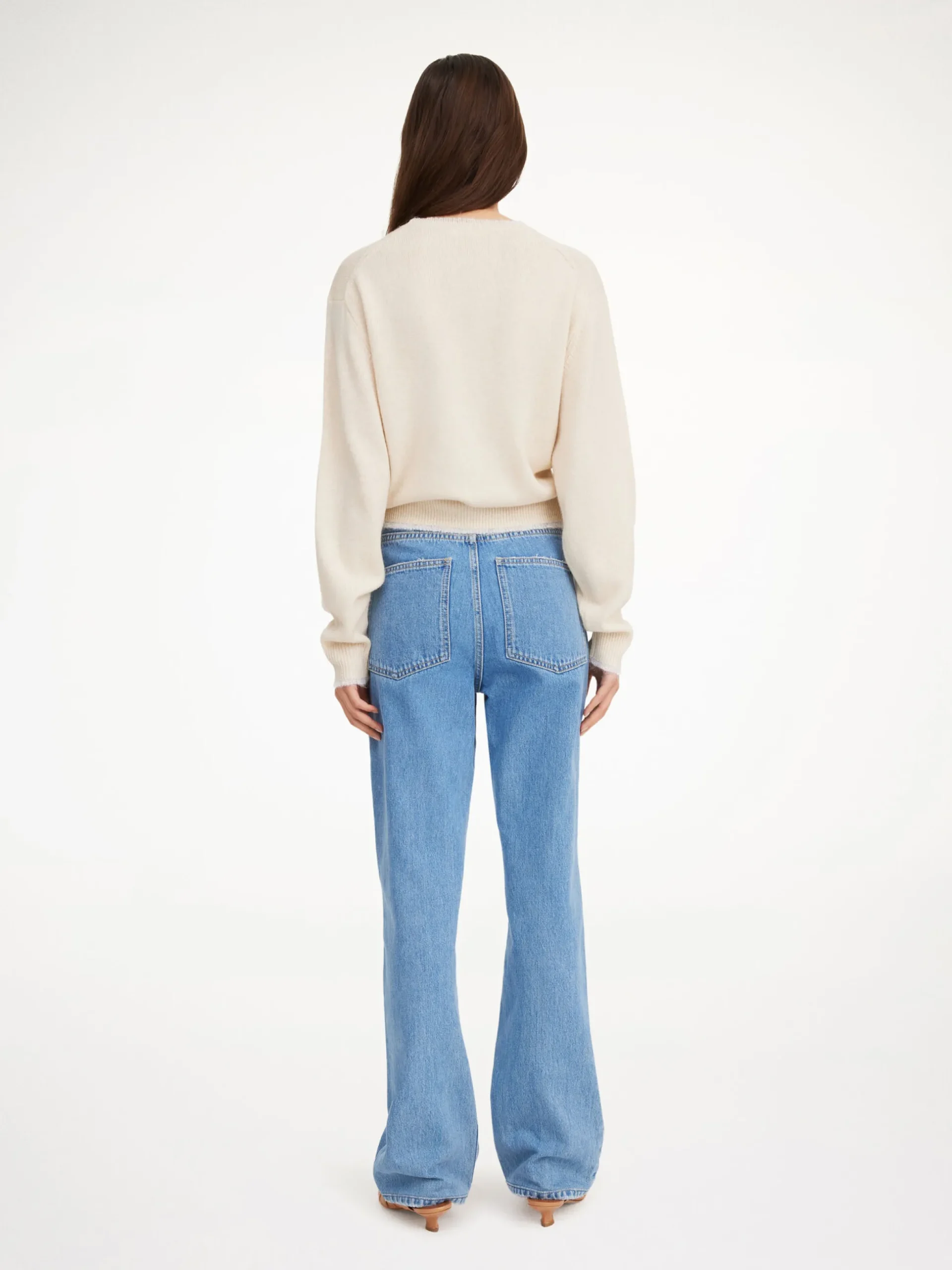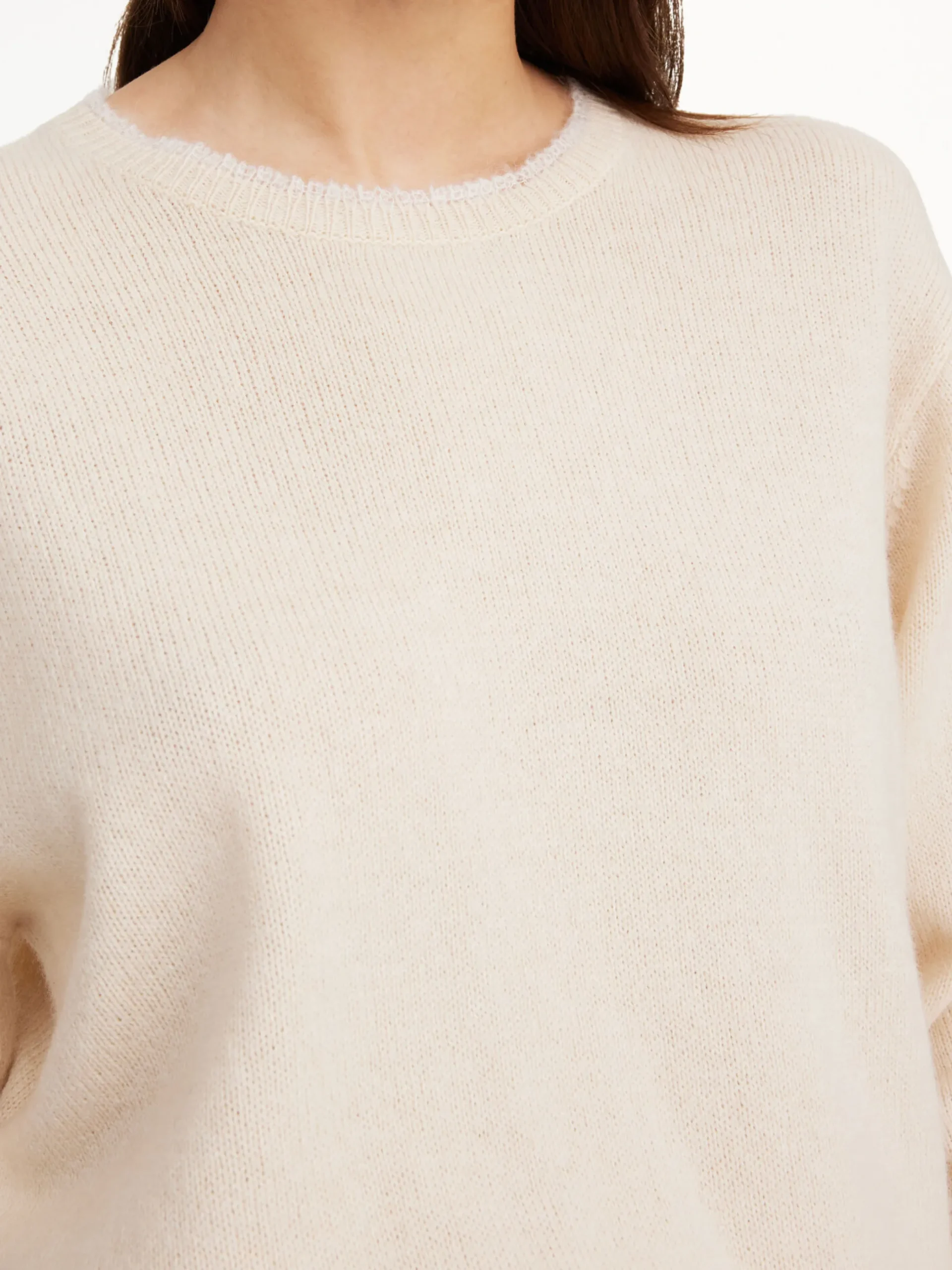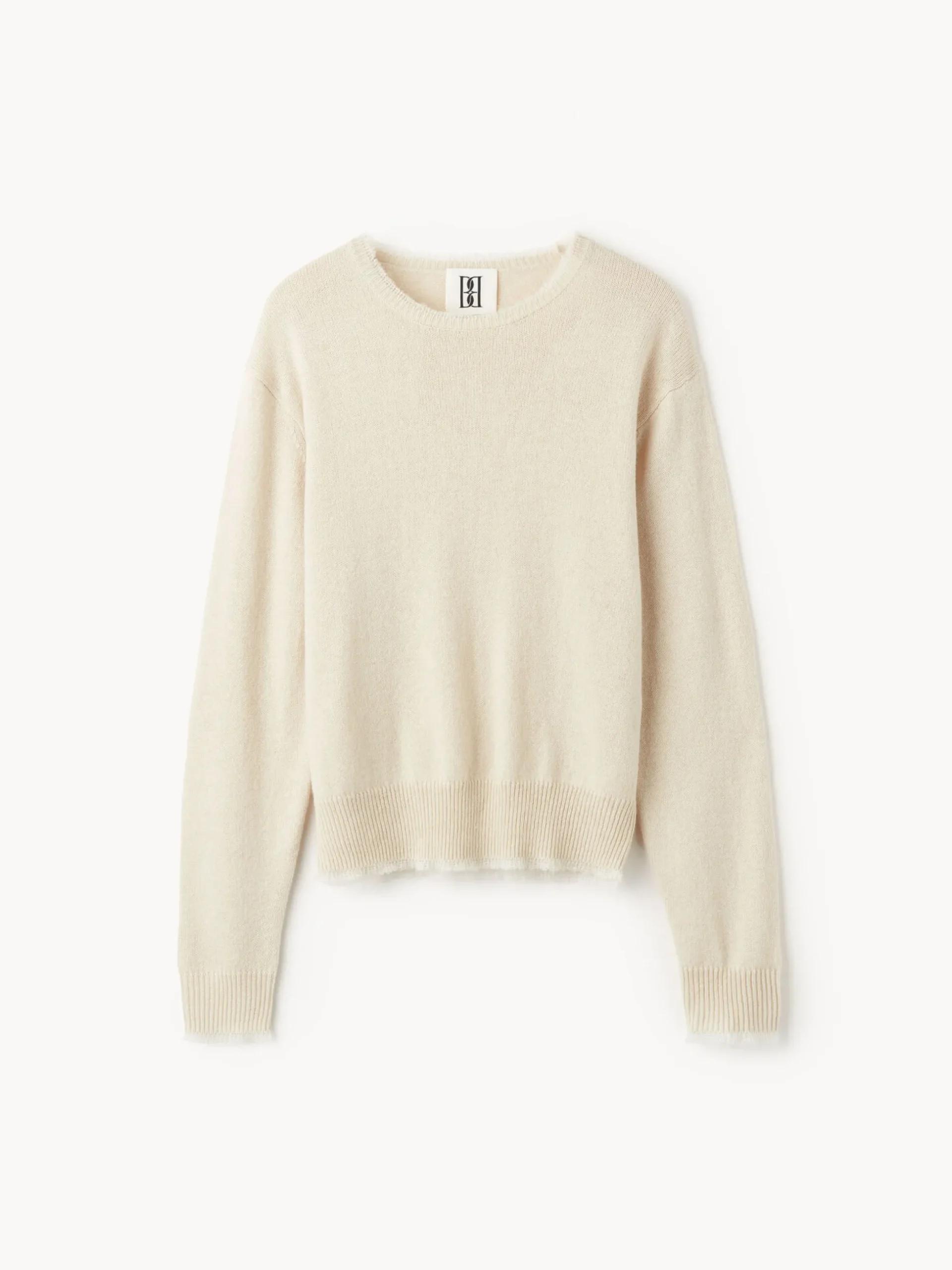 An effortless layering piece, the Mantea sweater is knitted from a soft merino blend. The design is shaped with rib trims, ruffled edges, and dropped shoulders. Ideal for the ever-changing weather.