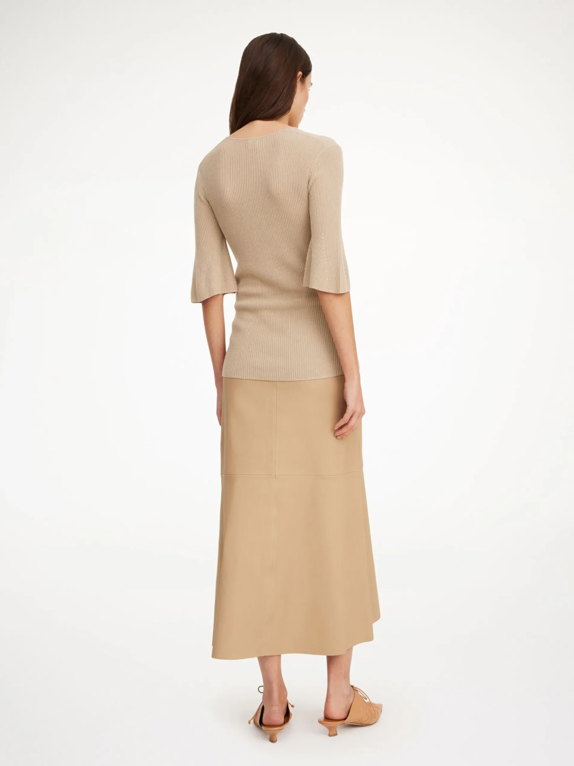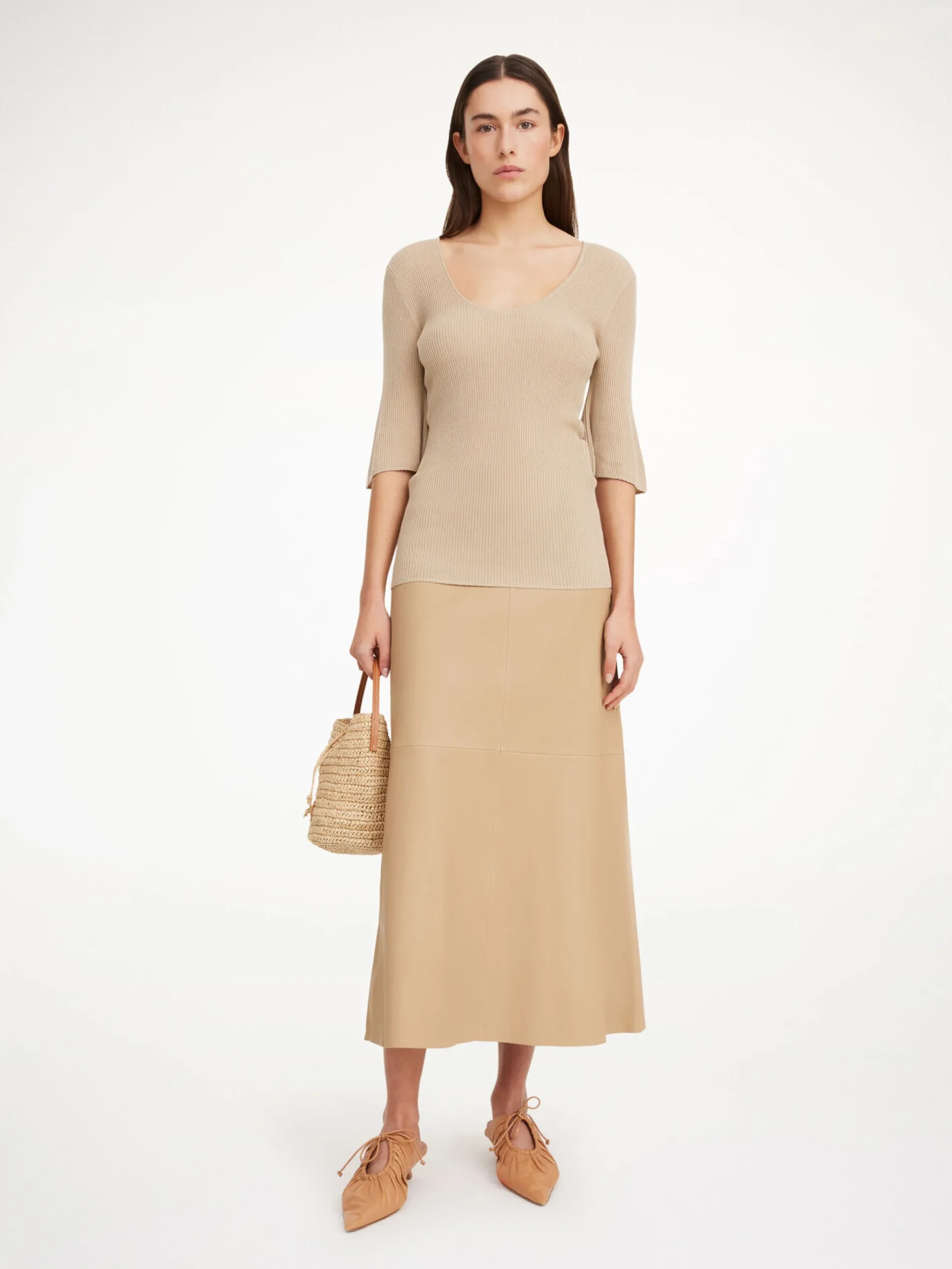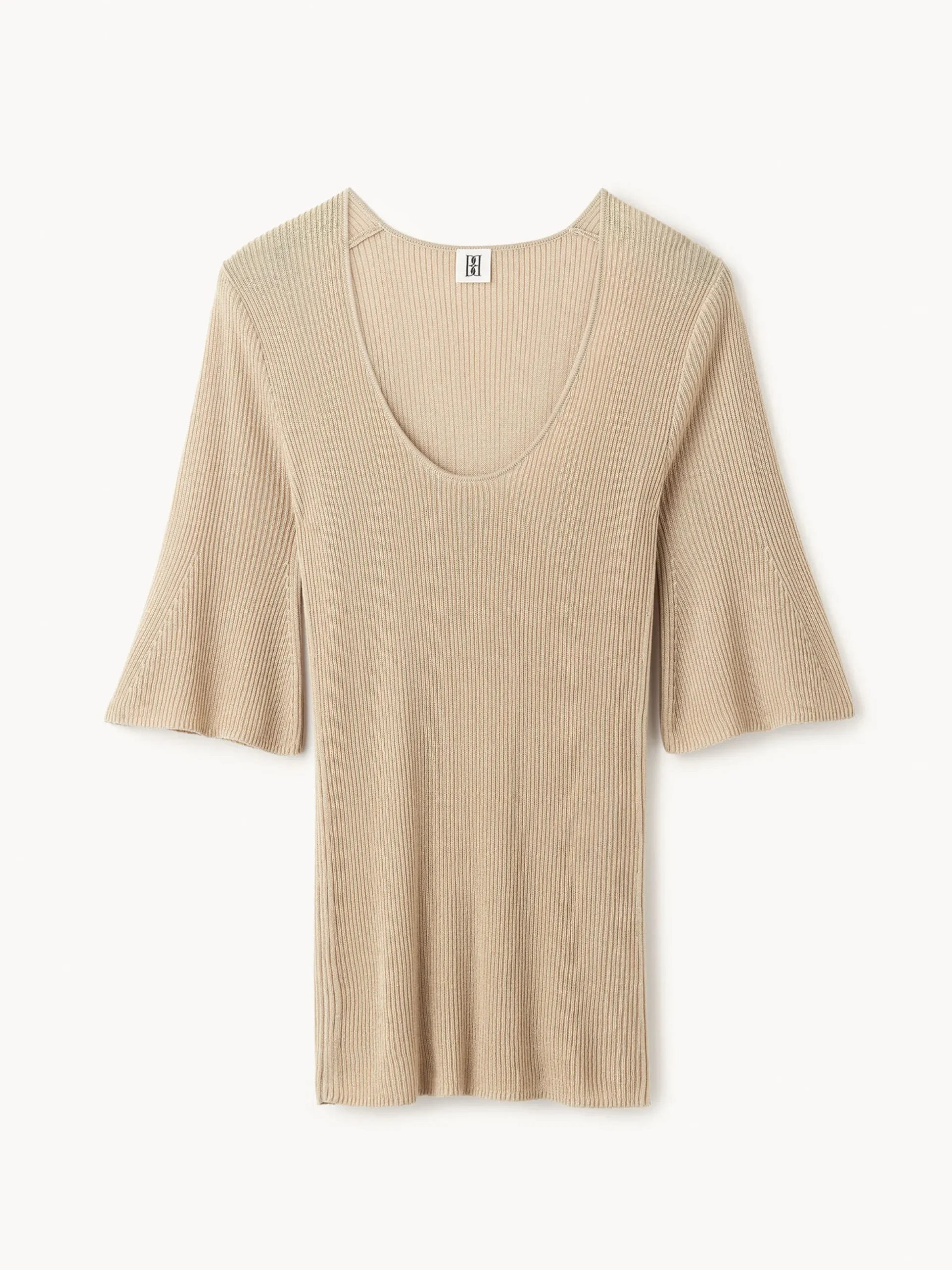 A versatile staple, this ribbed-knit top is minimally detailed with cropped sleeves and a wide neckline. Layer yours under a blazer or tuck into jeans.