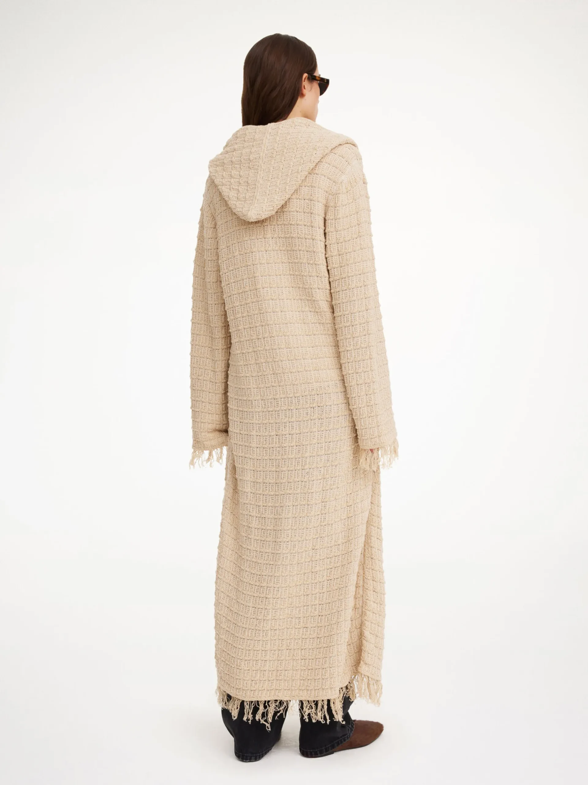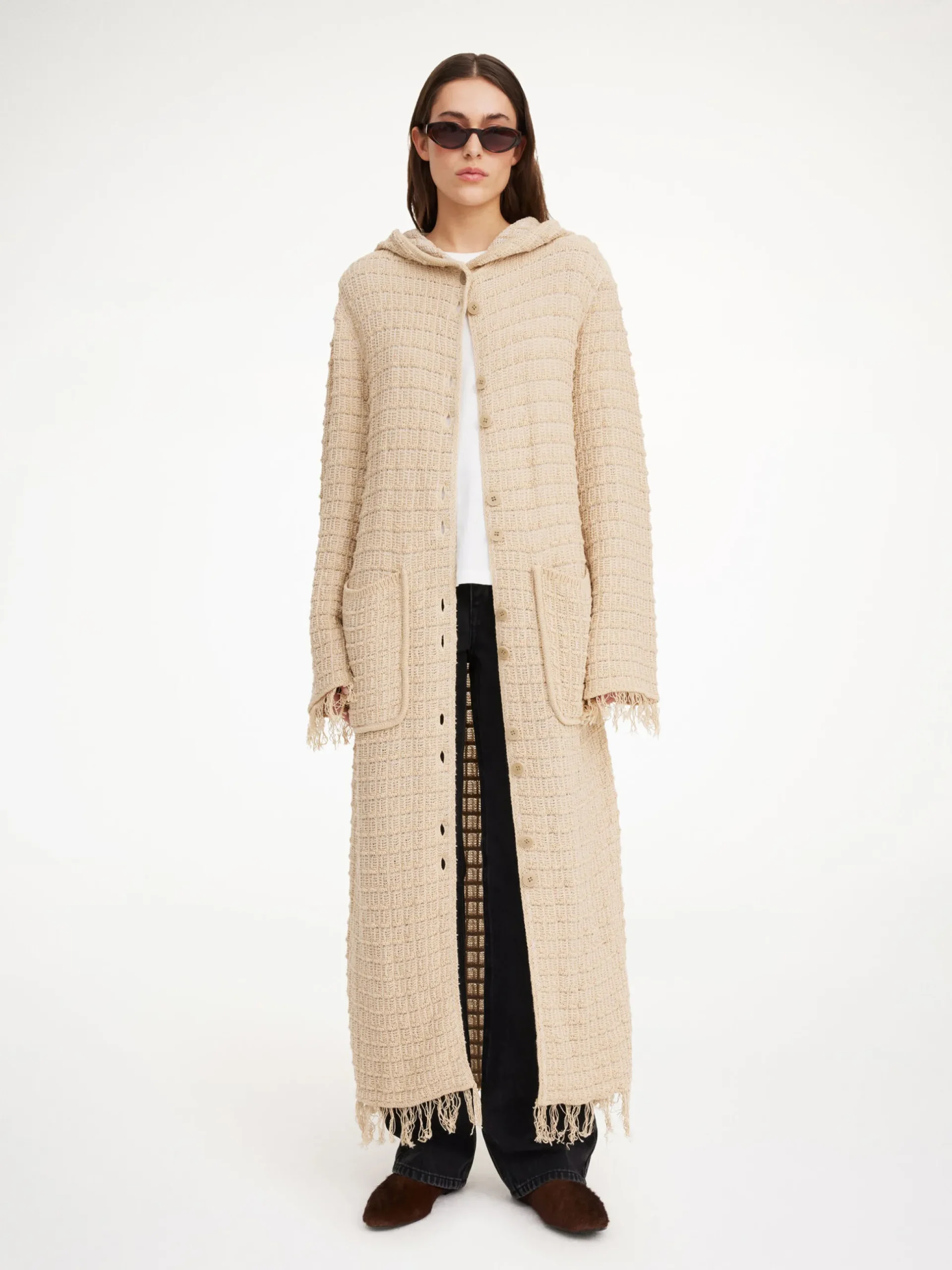 Crafted in a tactile cotton knit to a maxi silhouette, the Tallula coat has a bohemian appeal. The hooded design is detailed with fringes, front pockets, and buttons down the front. Layer over your daily edit as the transitional season starts.