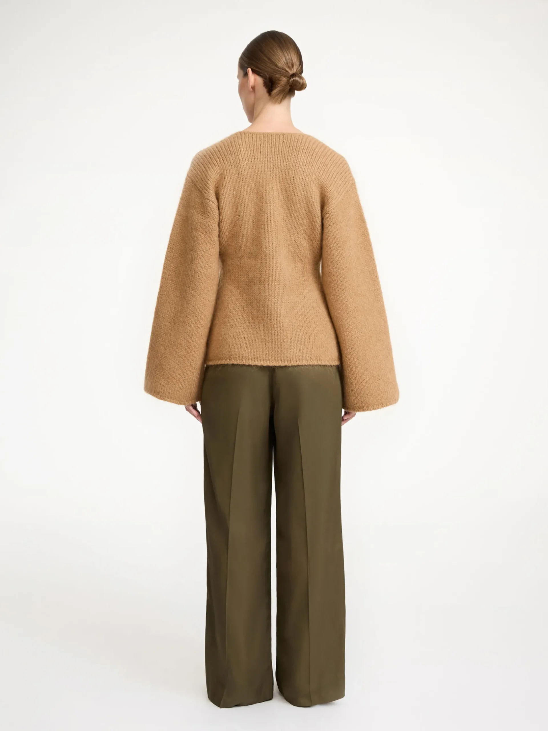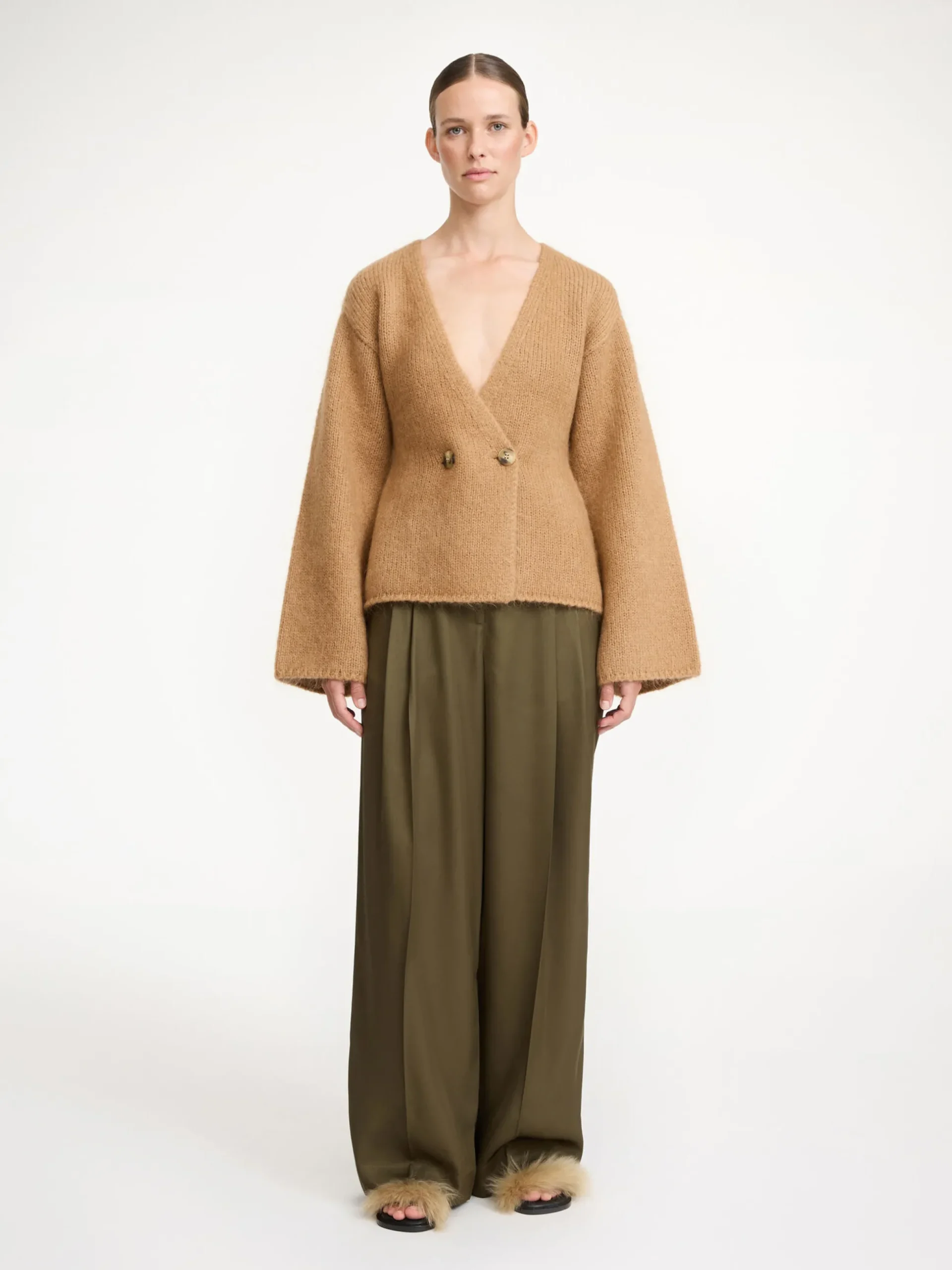 Nipped in at the waist and defined with double-breasted button fastenings to frame your curves, the Tinley cardigan is spun from a blend wool and mohair with a hint of stretch for comfort and flexibility. Generous sleeves and a deep V neckline underpin its relaxed feel. Wear yours over the season’s wide-leg trousers.