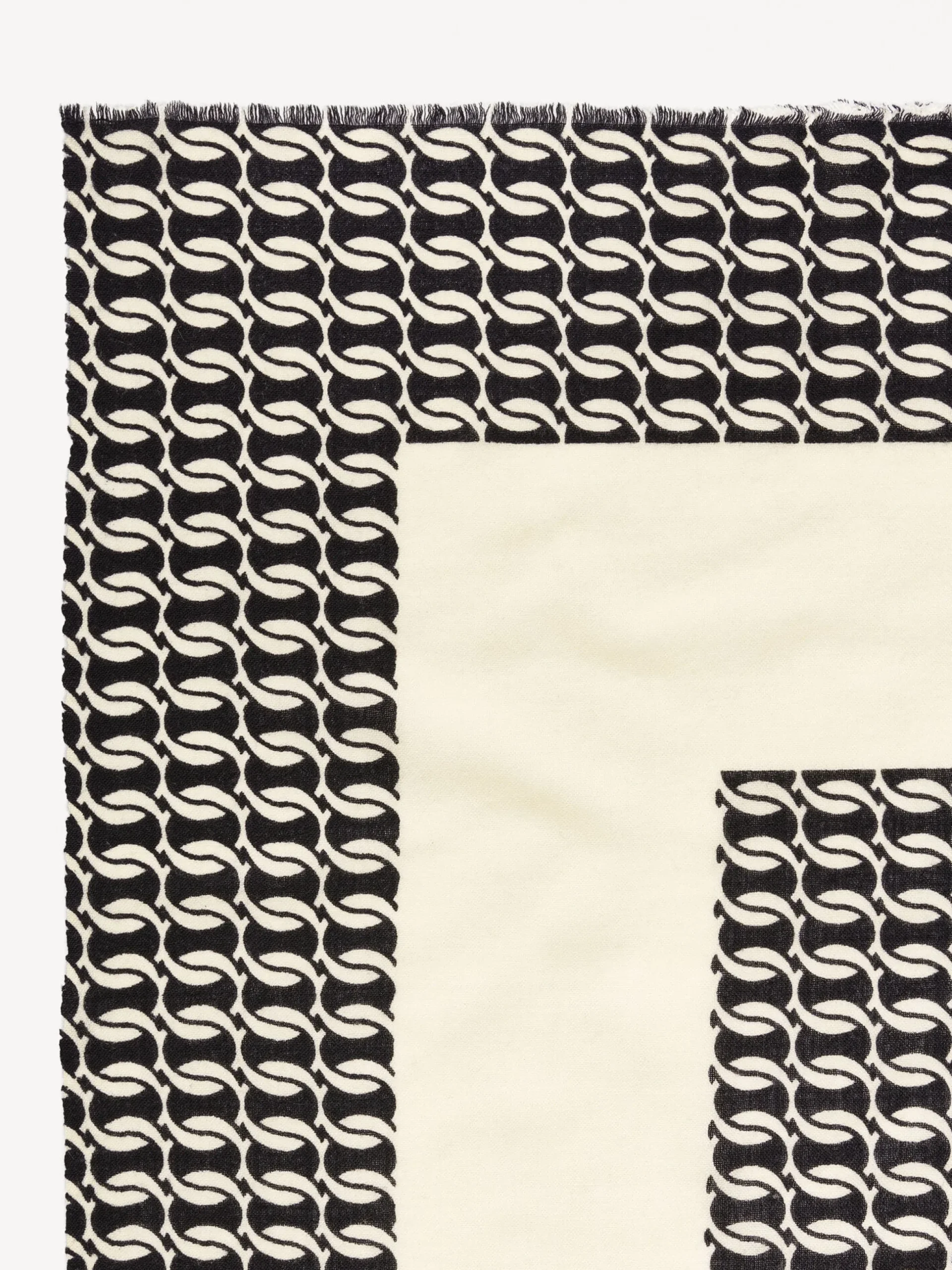 By Malene Birger Monja scarf woven from featherlight wool. Defined by a monogram print and frayed hems, the style lends a bohemian note to your look. Drape it around your neck, wrist, or attach it to a leather bag.