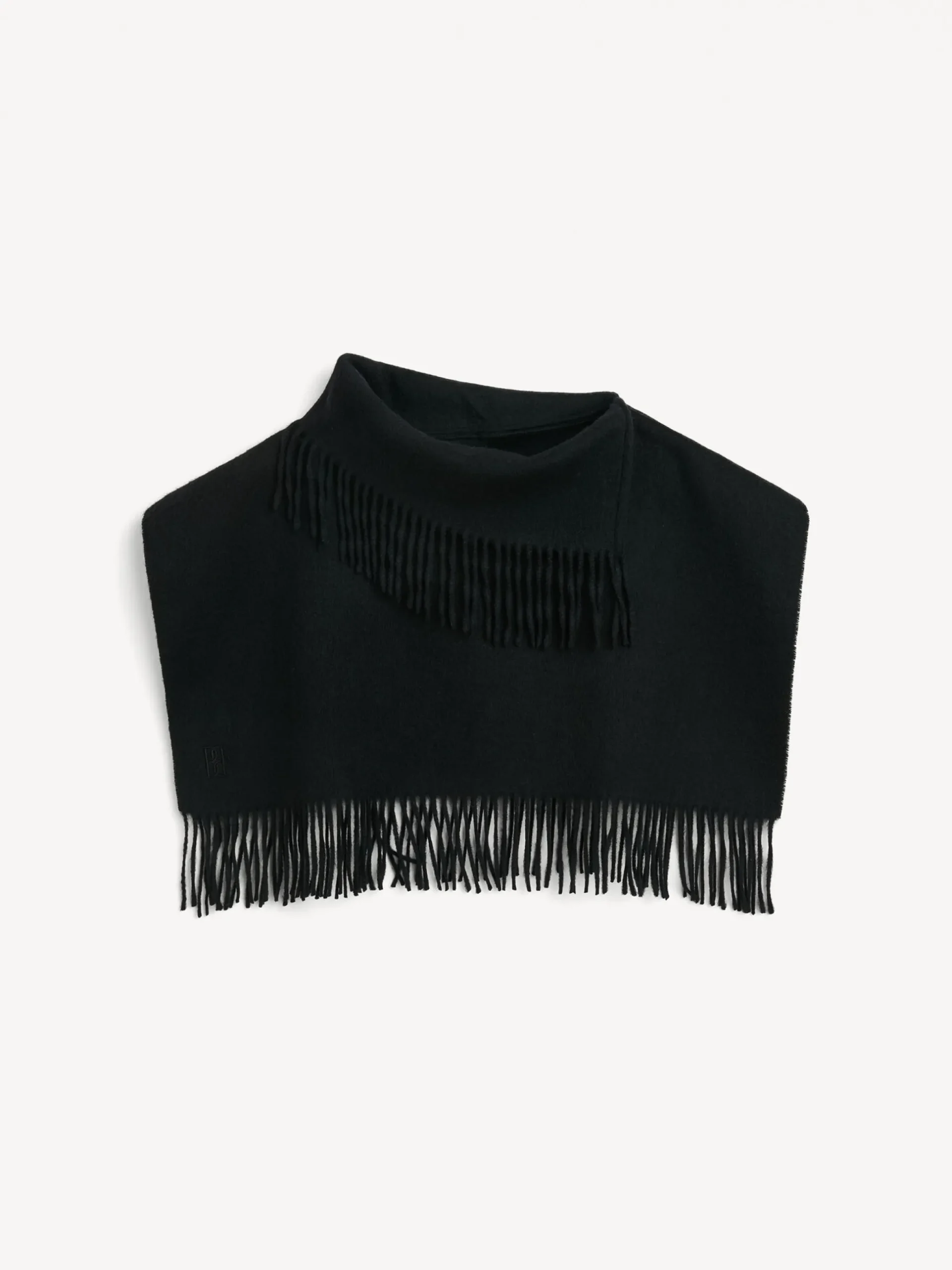 The Turtla bib is an effortless way to elevate an otherwise minimal look with its fringed trim and wide shoulders. This fall, forgo a scarf and reach instead for this statement piece.
