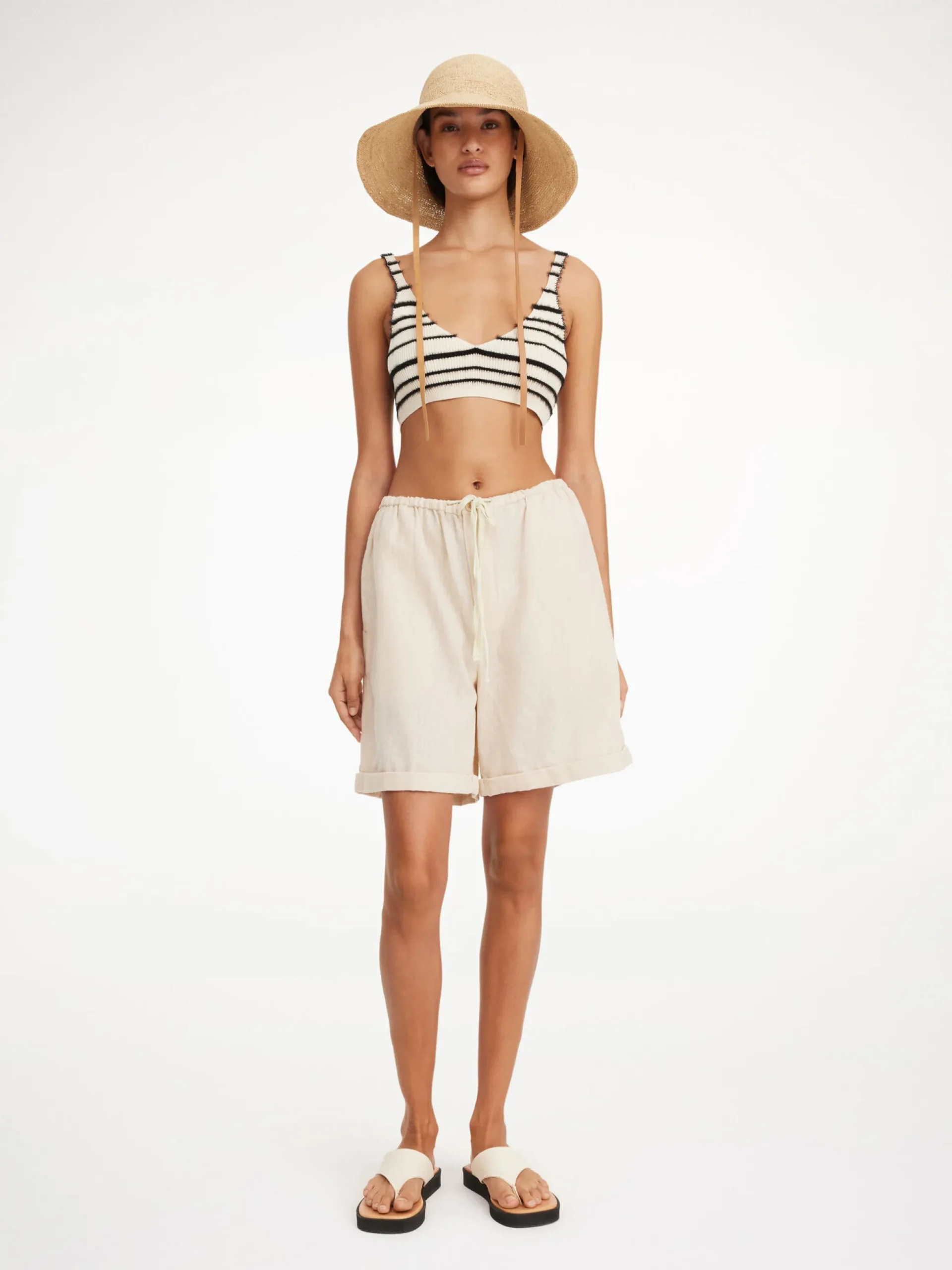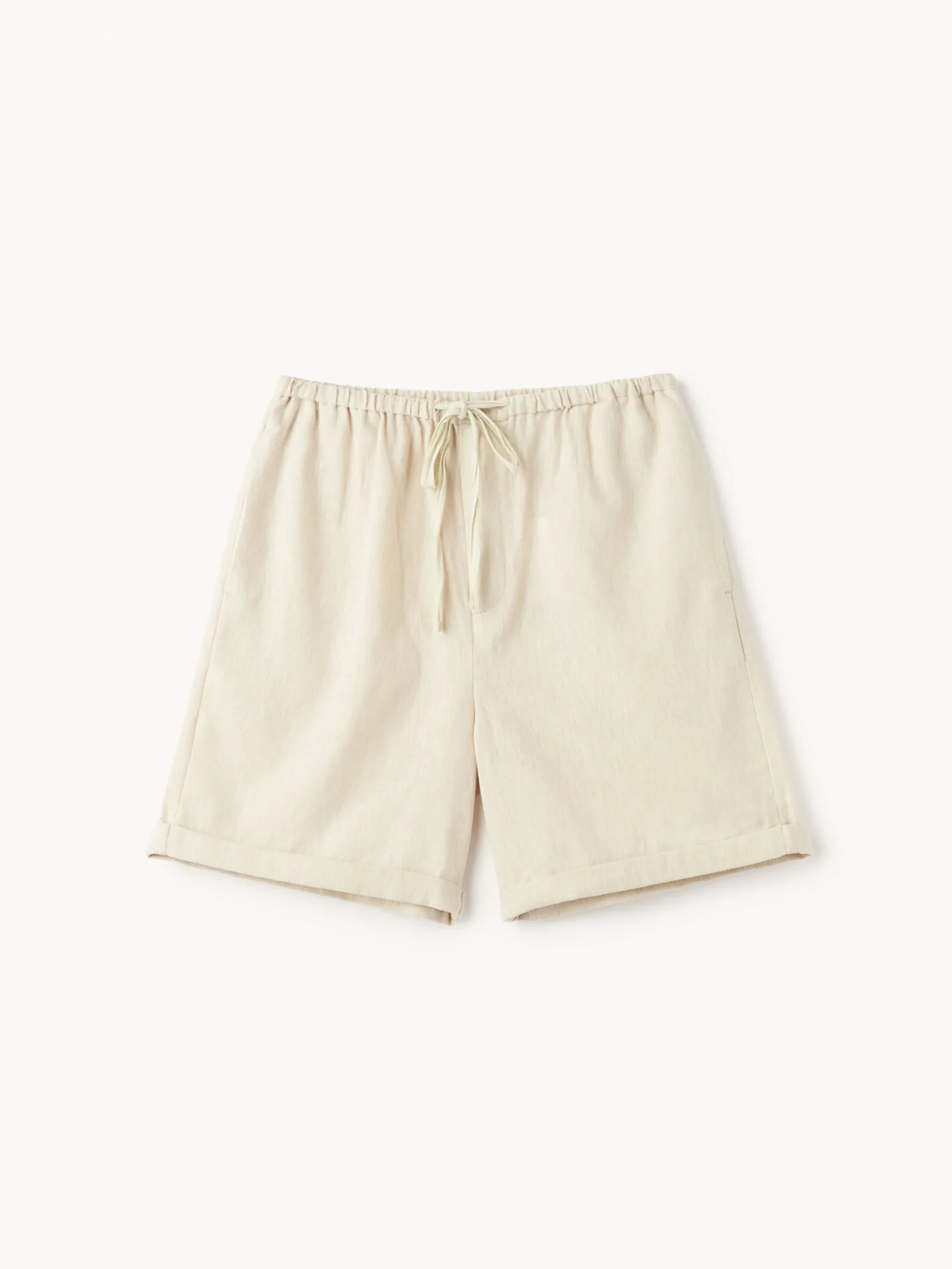 No spring edit is complete without a pair of linen shorts, such as the Josea design. They feature a high-rise waistband that can be adjusted with drawstrings, wide legs, and folded hems.