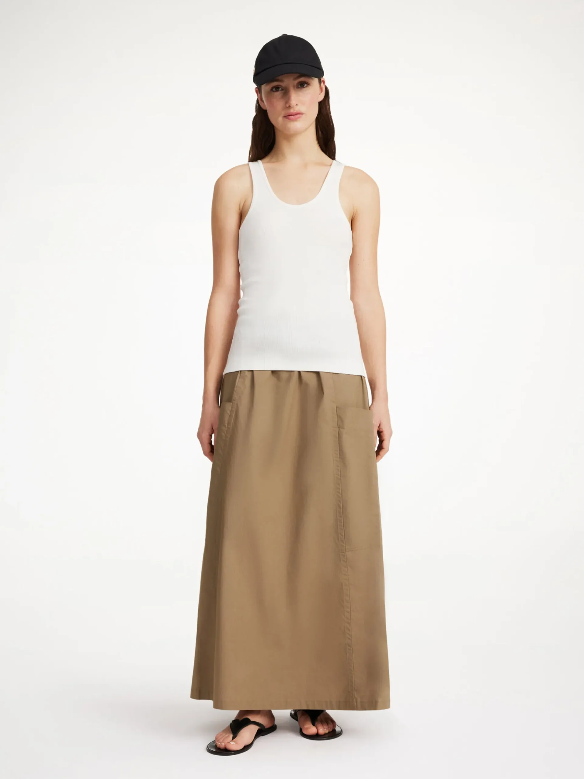 The minimalist shape and striped fabrication make the Catterina maxi skirt ideal for your transitional edit. The organic cotton design features an A-line silhouette with oversized pockets on the side and a snug elastic waistband.