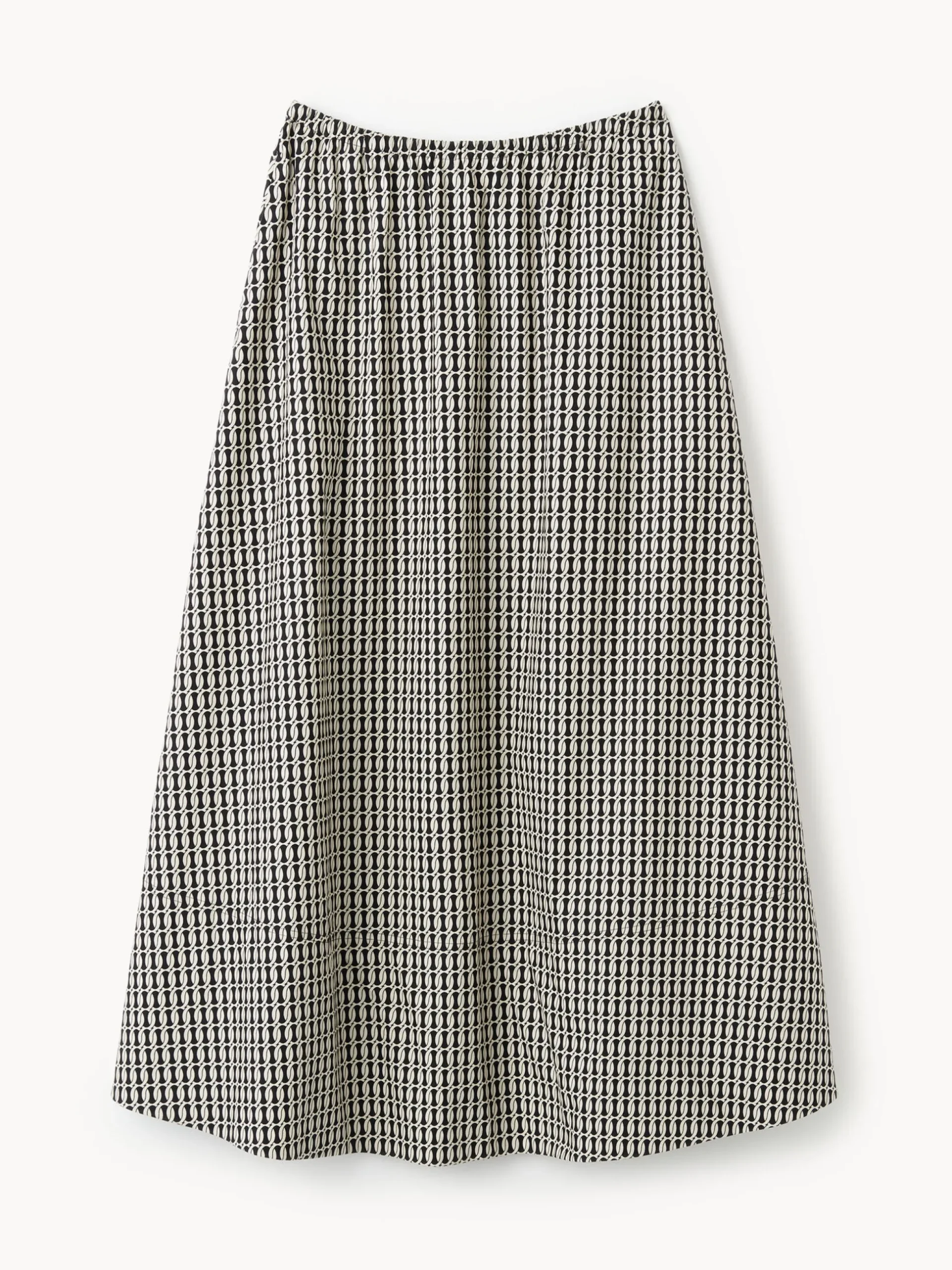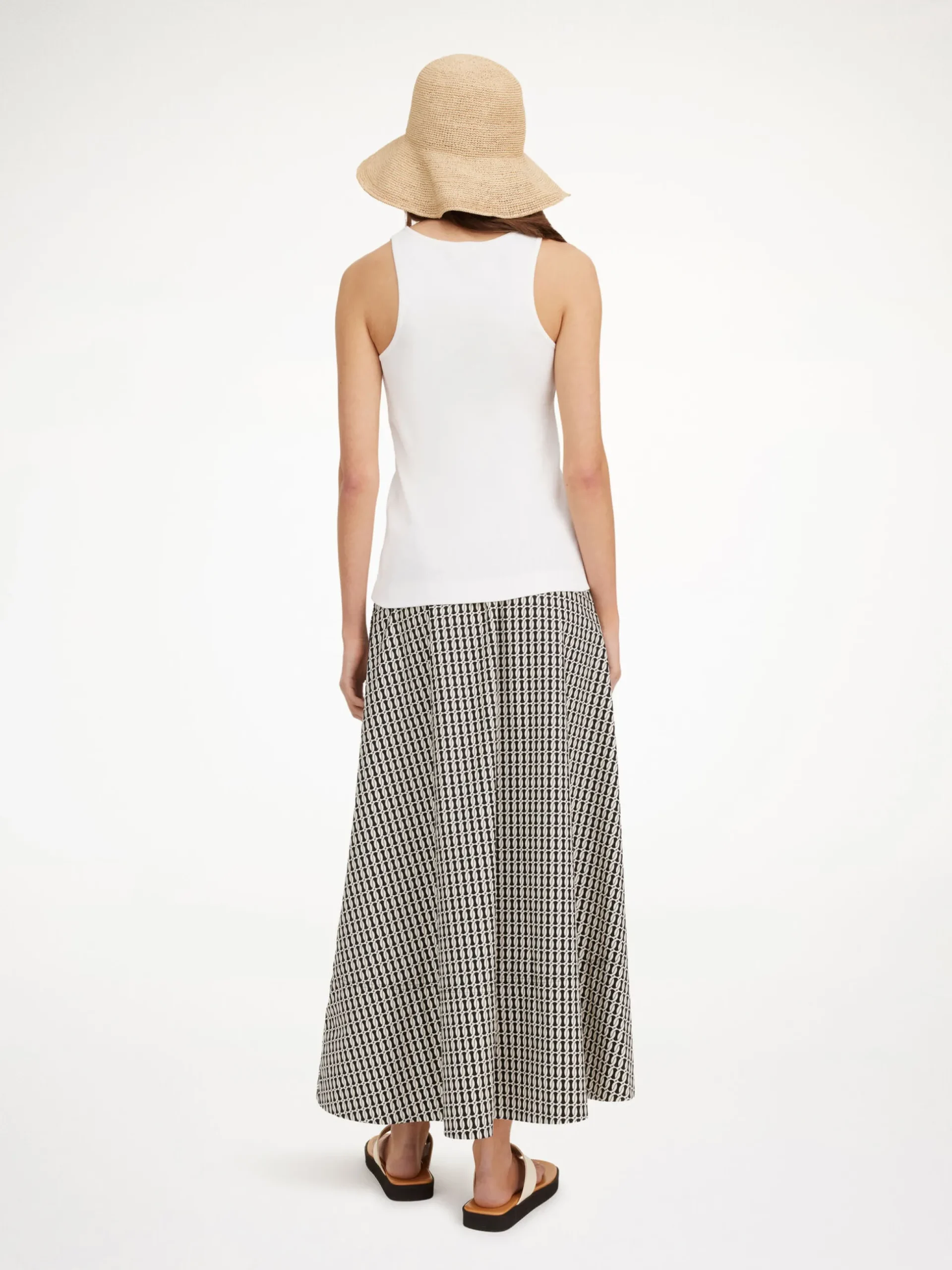 The Pheobes maxi skirt is an essential in your spring edit. Imprinted with our monogram, the organic cotton design has an elastic band that sits high on the waist and a loose silhouette.