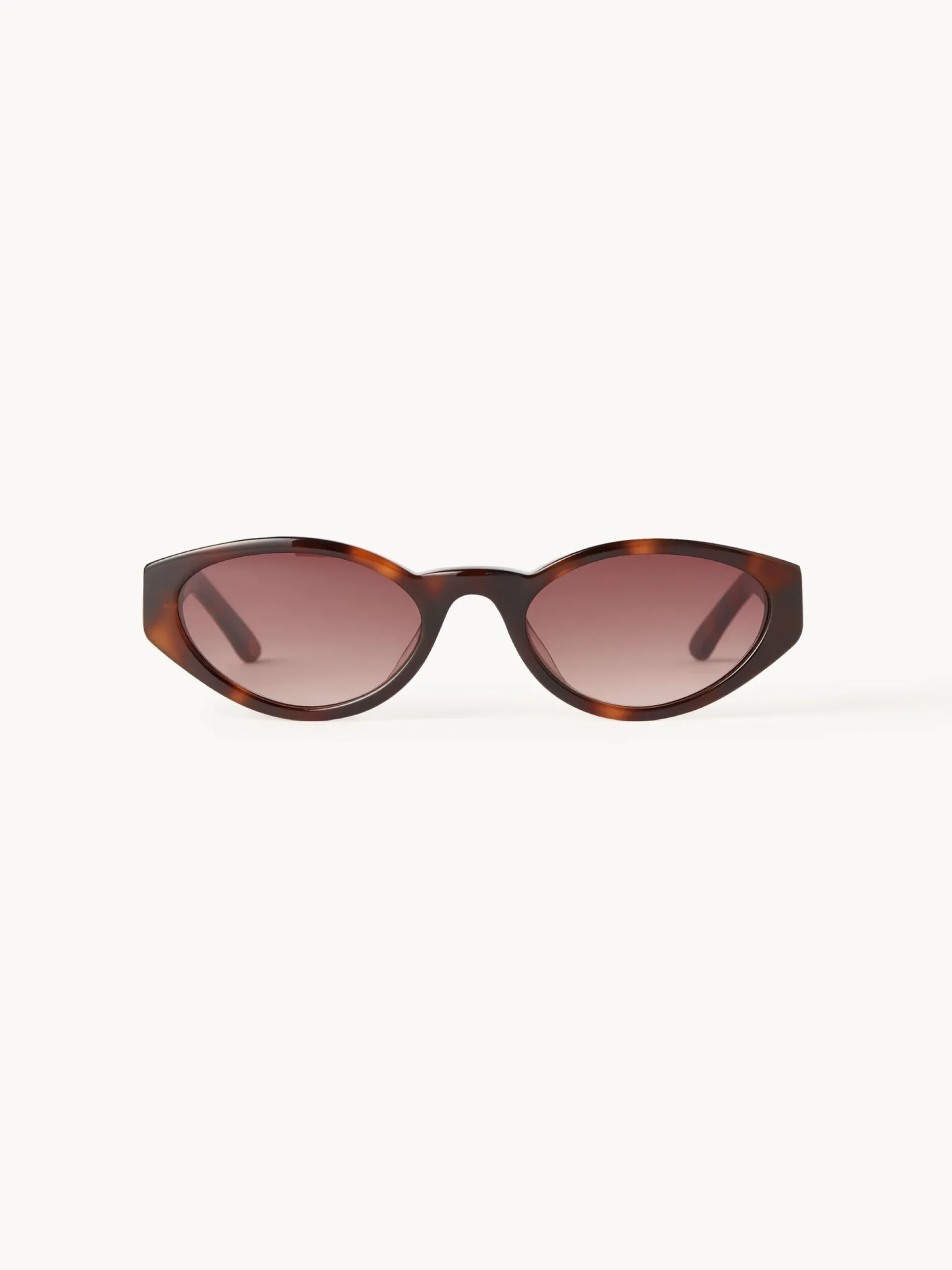 By Malene Birger Myla sunglasses made from shiny acetate. They feature a slender oval frame with broad arms and dark lenses for UV protection. Make them the finishing touch to your summer looks.