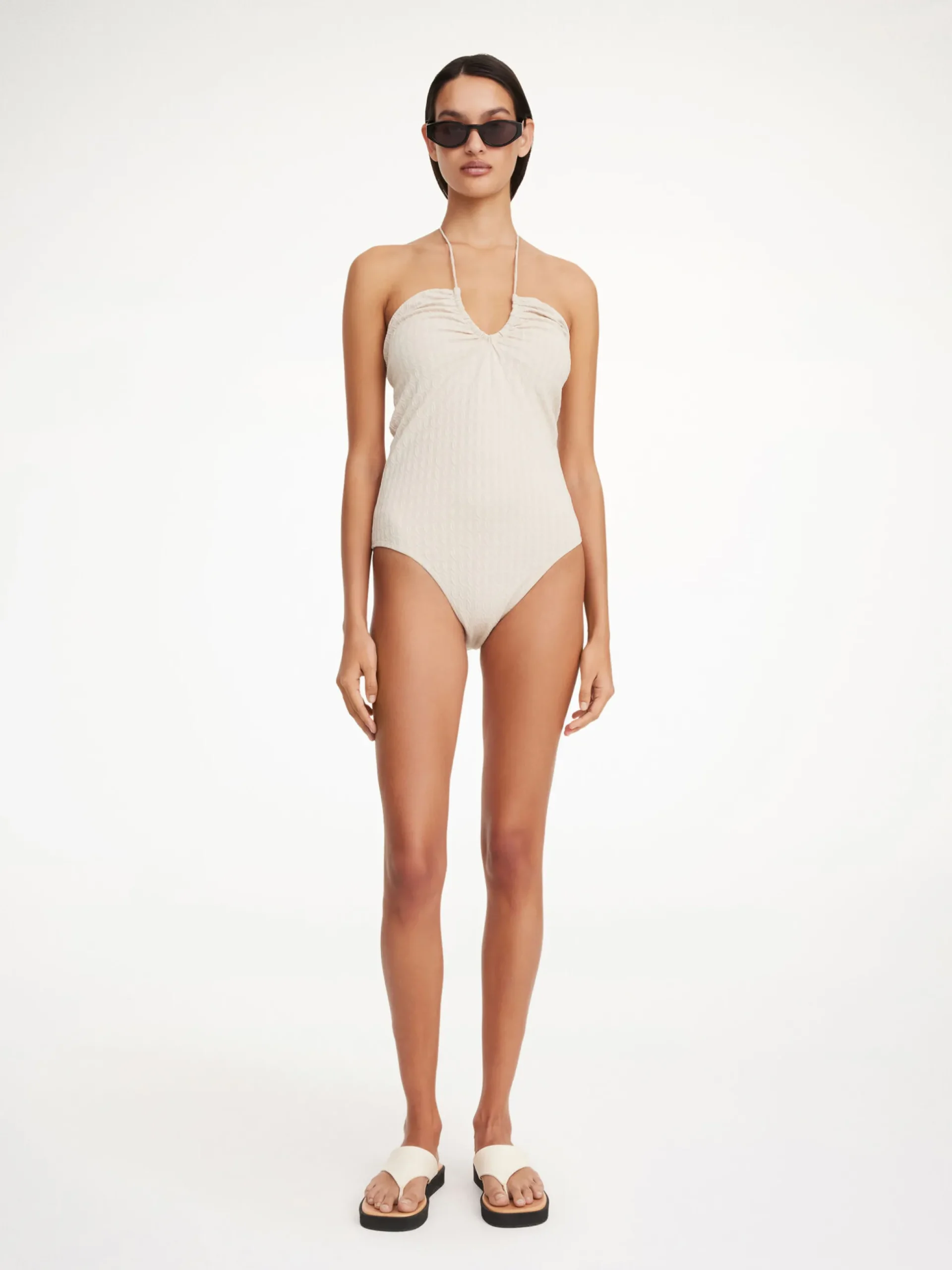 The Giabra swimsuit is an essential for any warm-weather edit. Decorated with our monogram, the one-piece design has an adjustable strap and a tight fit that ensure comfortable wearing. Transform from beach to the after-hours by pairing with jeans