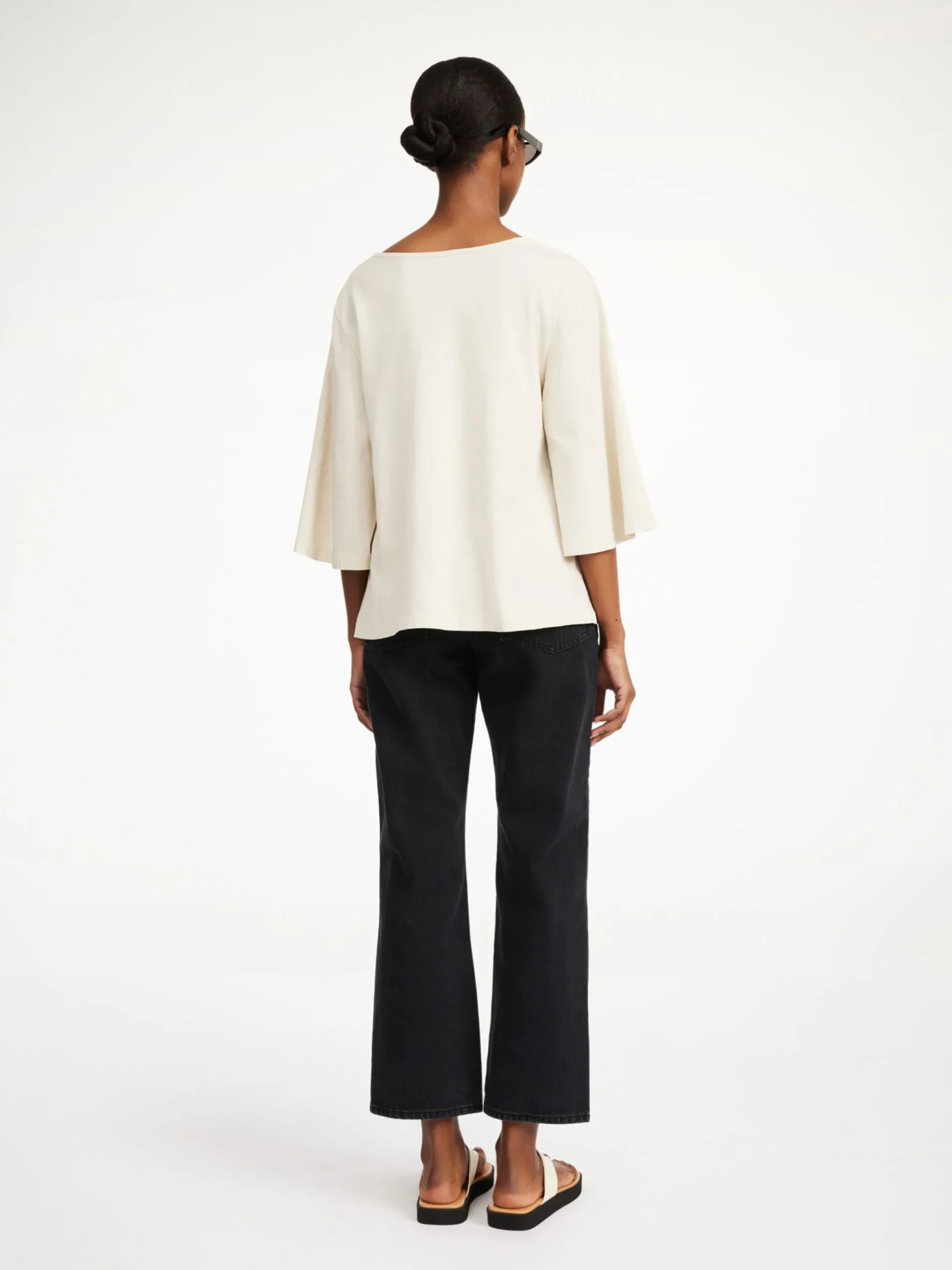 Soft to the touch and falling in a smooth drape, the Bryar top is a wardrobe staple you will wear for seasons to come. Crafted in organic cotton, it features a broad boat neckline and wide sleeves. Its styling options are endless.